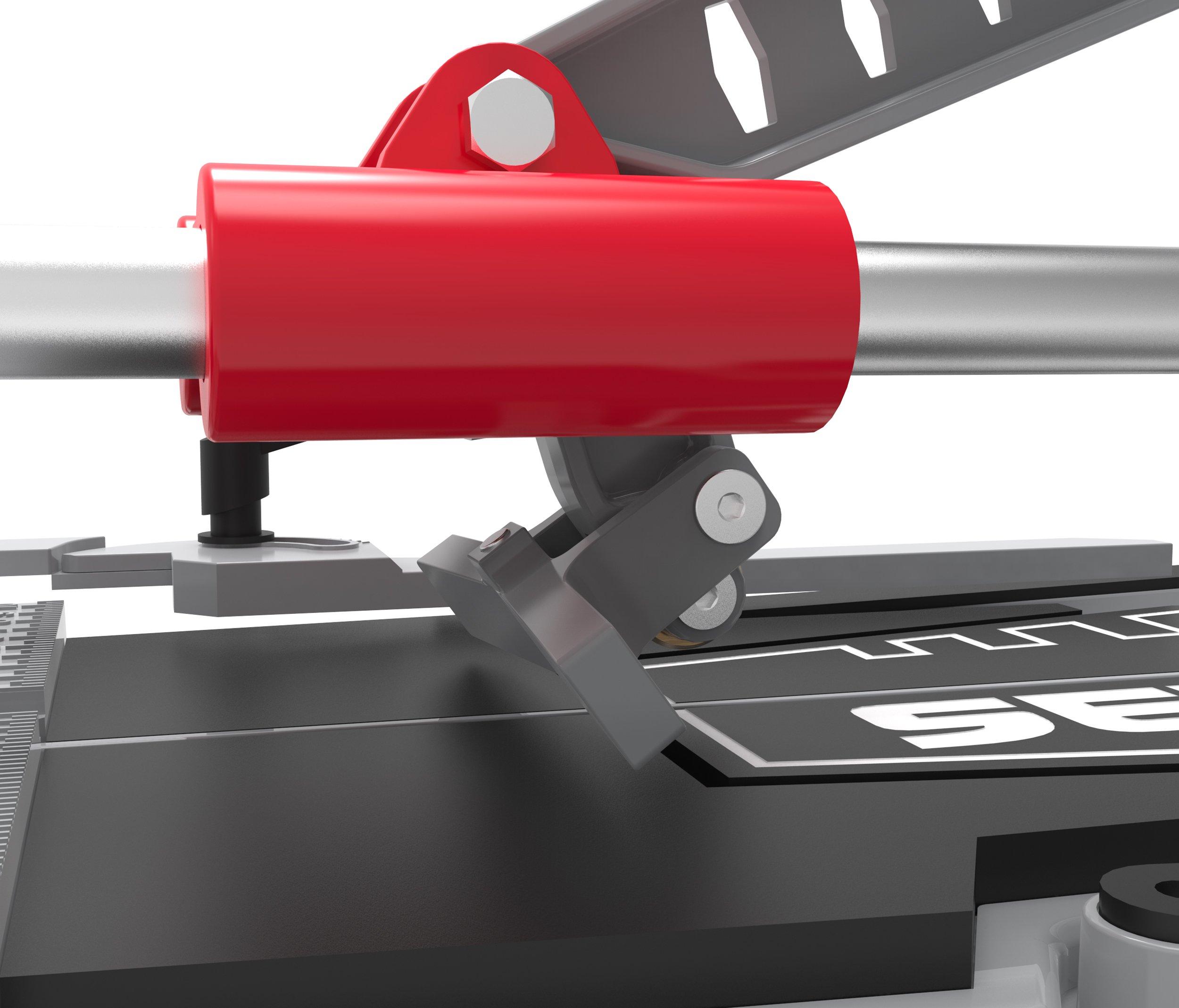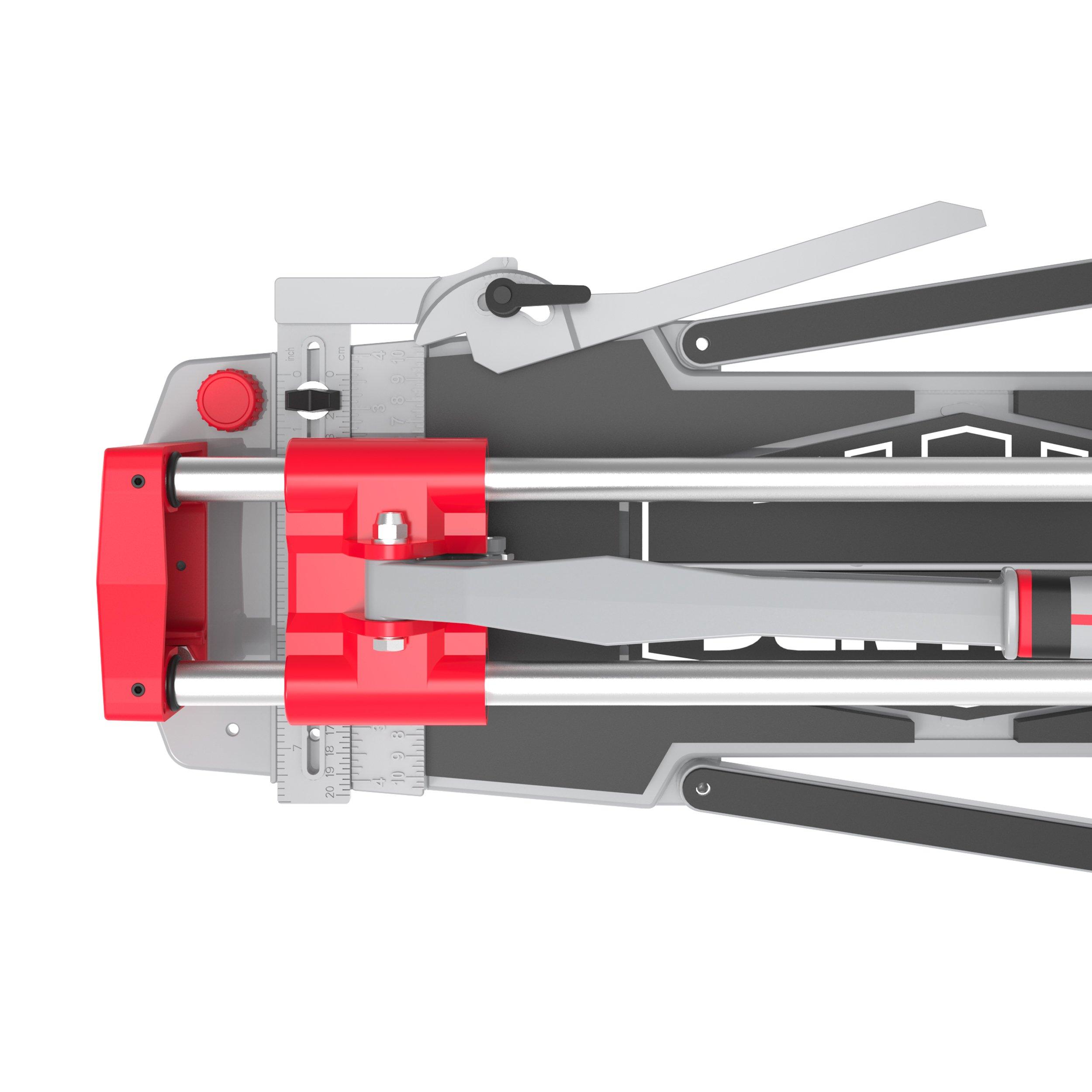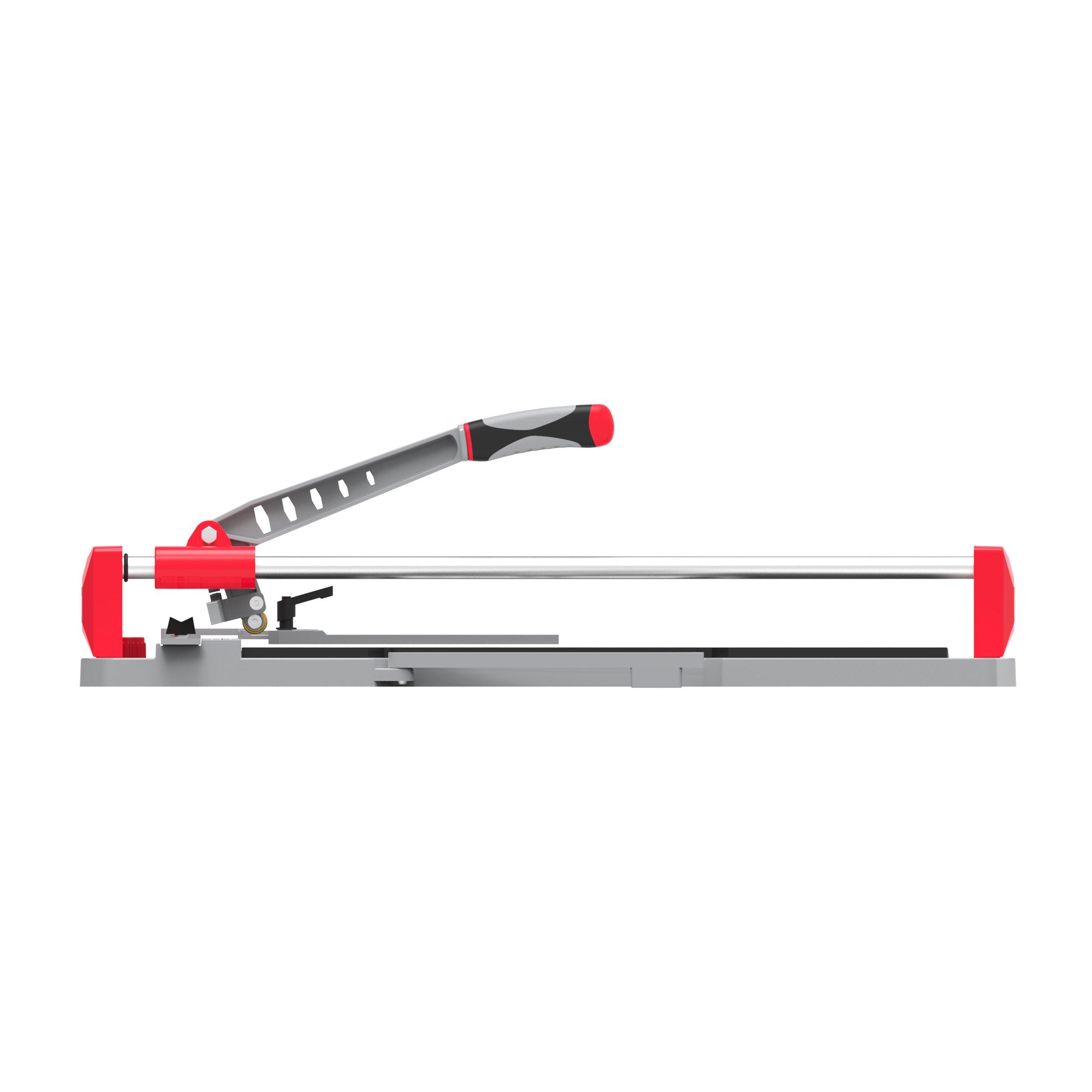1 Year LimitedManual tile cutter ideal for cutting ceramic and porcelain tiles. Die-cast aluminum base with extension bars support large format tile cutting. Angular measuring for accurate cuts on any angle. Ball bearing slides with visible scoring wheel for smoothness and accuracy. Tile breaker flips automatically when lifting the push bar. Max cutting thickness: 9/16" Max rip cut: 24" Max diagonal cut: 18" x 18" Includes one replacement 7/8” (22 mm) scoring wheel Includes carrying case 2 Year warranty Always wear safety and protective gear and refer to manufacturer's instructions