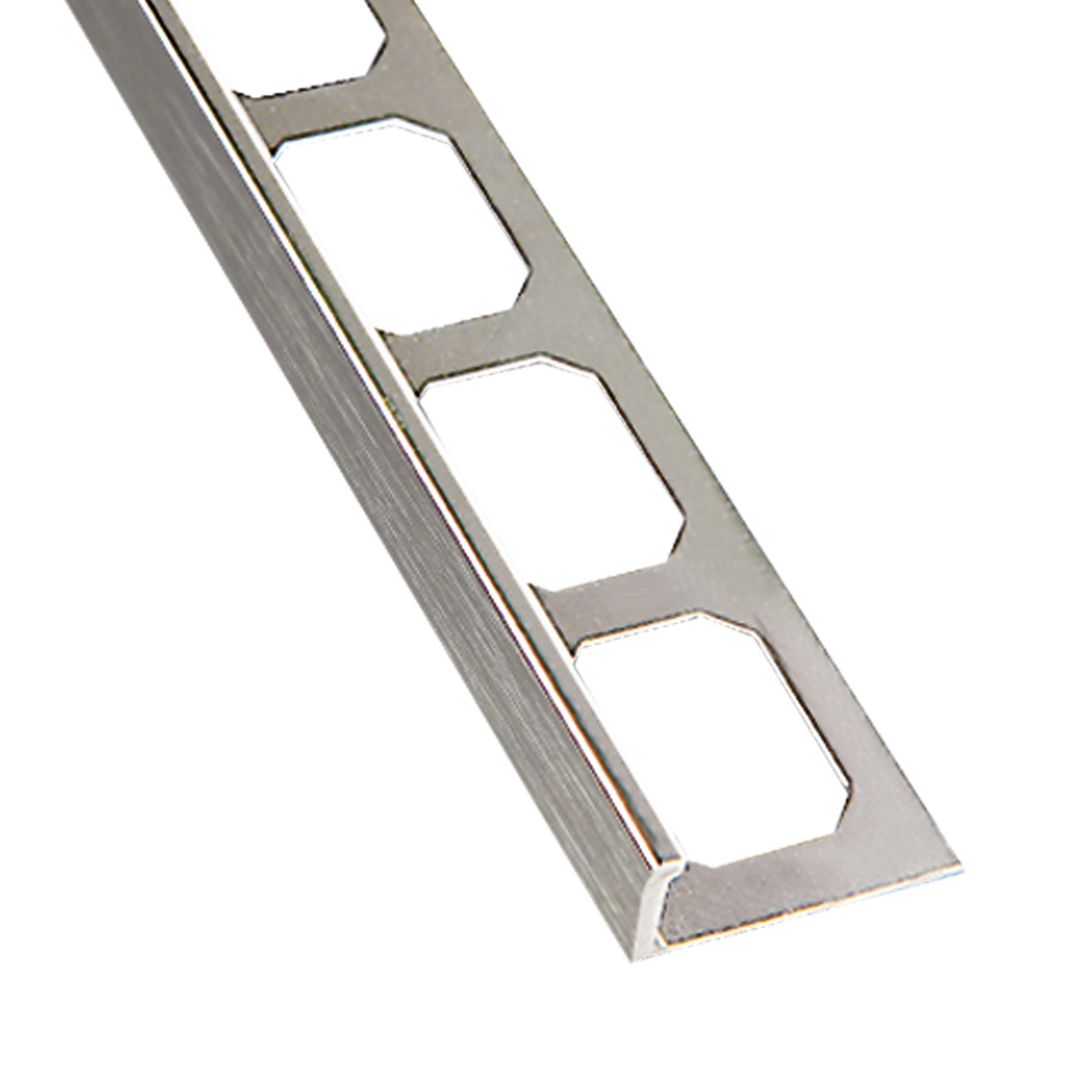 Lifetime SystemLaticrete L-Shape Edge 3/8in. Brushed Nickel Profile delivers reliable edge protection and a clean, polished finish for tile and flooring installations. This trim protects unfinished tile edges from chipping and cracking while creating smooth transitions between materials of the same height. Designed for use on floors, walls, and countertops, it works with tile and a variety of other flooring surfaces. Made from premium milled aluminum and offered in today’s most popular finishes, it’s a durable alternative to stone or tile trims. Bendable profiles with an open mounting leg are available to accommodate curves and radii.