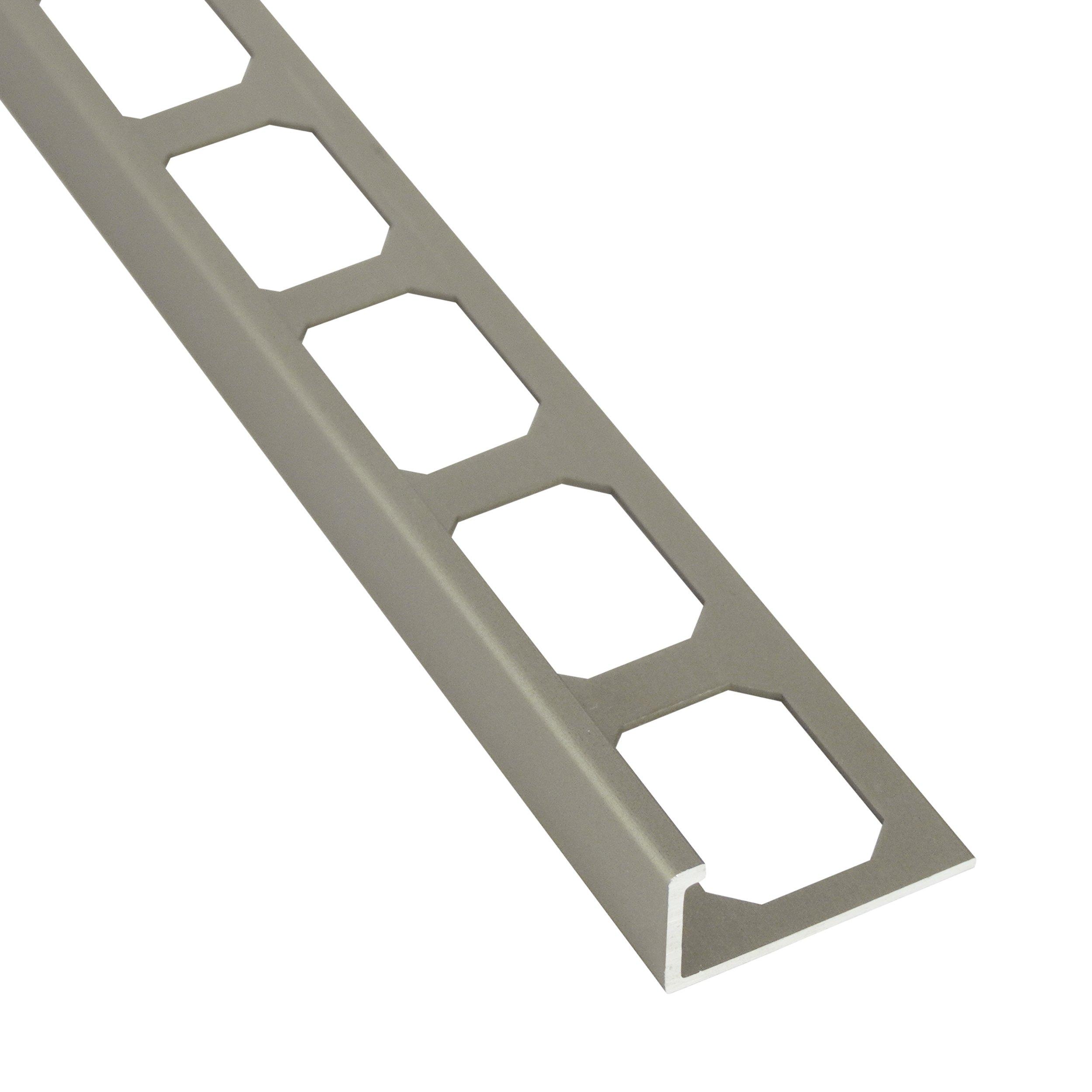 Lifetime SystemLaticrete L-Shape Edge 3/8in. Satin Nickel Profile delivers reliable edge protection and a clean, polished finish for tile and flooring installations. This trim protects unfinished tile edges from chipping and cracking while creating smooth transitions between materials of the same height. Designed for use on floors, walls, and countertops, it works with tile and a variety of other flooring surfaces. Made from premium milled aluminum and offered in today’s most popular finishes, it’s a durable alternative to stone or tile trims. Bendable profiles with an open mounting leg are available to accommodate curves and radii.