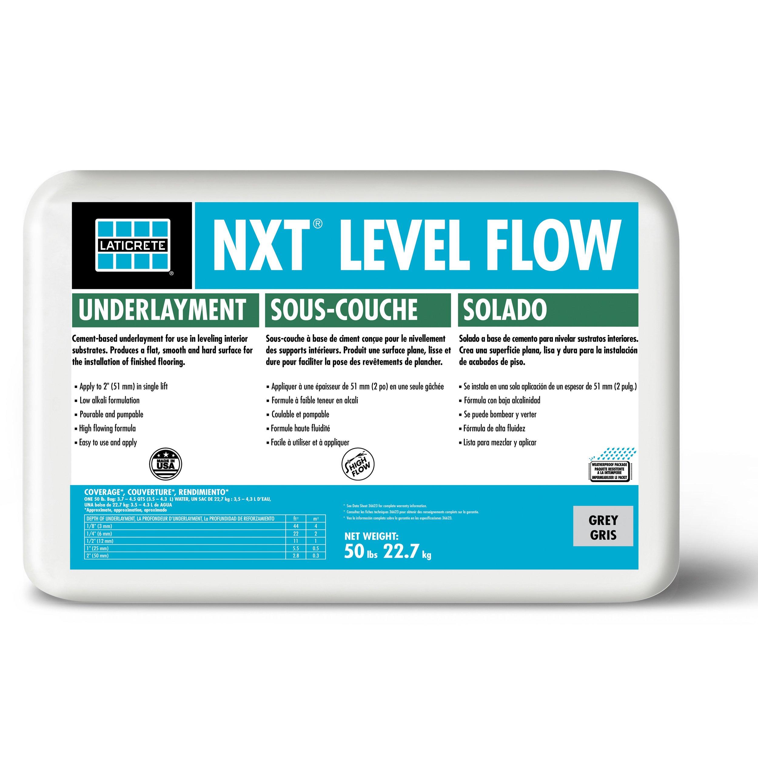 Laticrete NXT Level Flow is a value-engineered, high-performing self-leveling underlayment designed for smoothing interior concrete surfaces. Its high-flow formula offers excellent coverage and is easy to apply by hand or pump. Compatible with moisture levels up to 100% RH, it provides a flat, durable surface ready for most finished flooring in just 24 hours.
