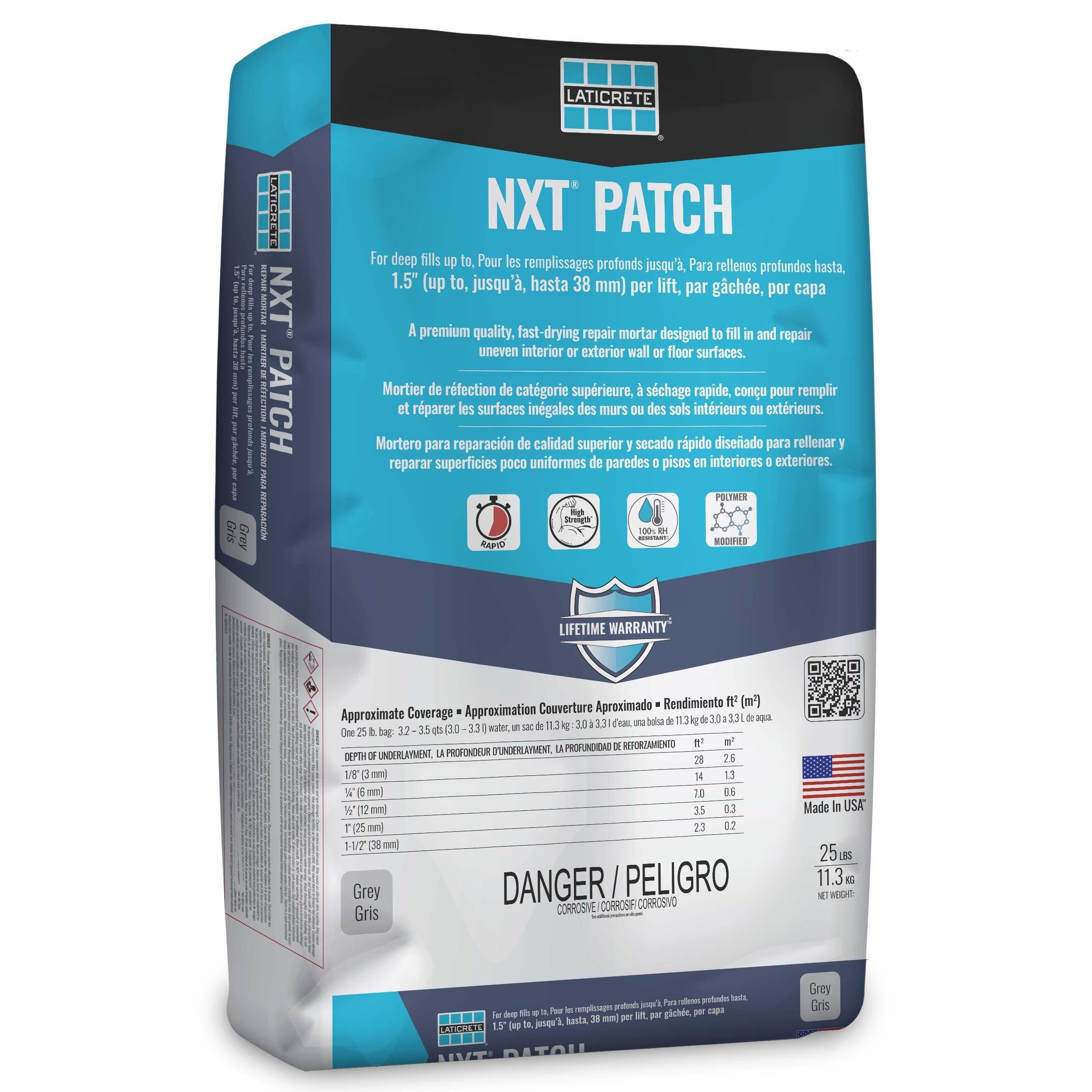 Lifetime SystemLaticrete NXT Patch is a fast-drying underlayment product designed to smooth, repair, and level substrates before floor covering installations. Its quick set time and strong bond make it a go-to choice for both small touch-ups and larger surface prep jobs.