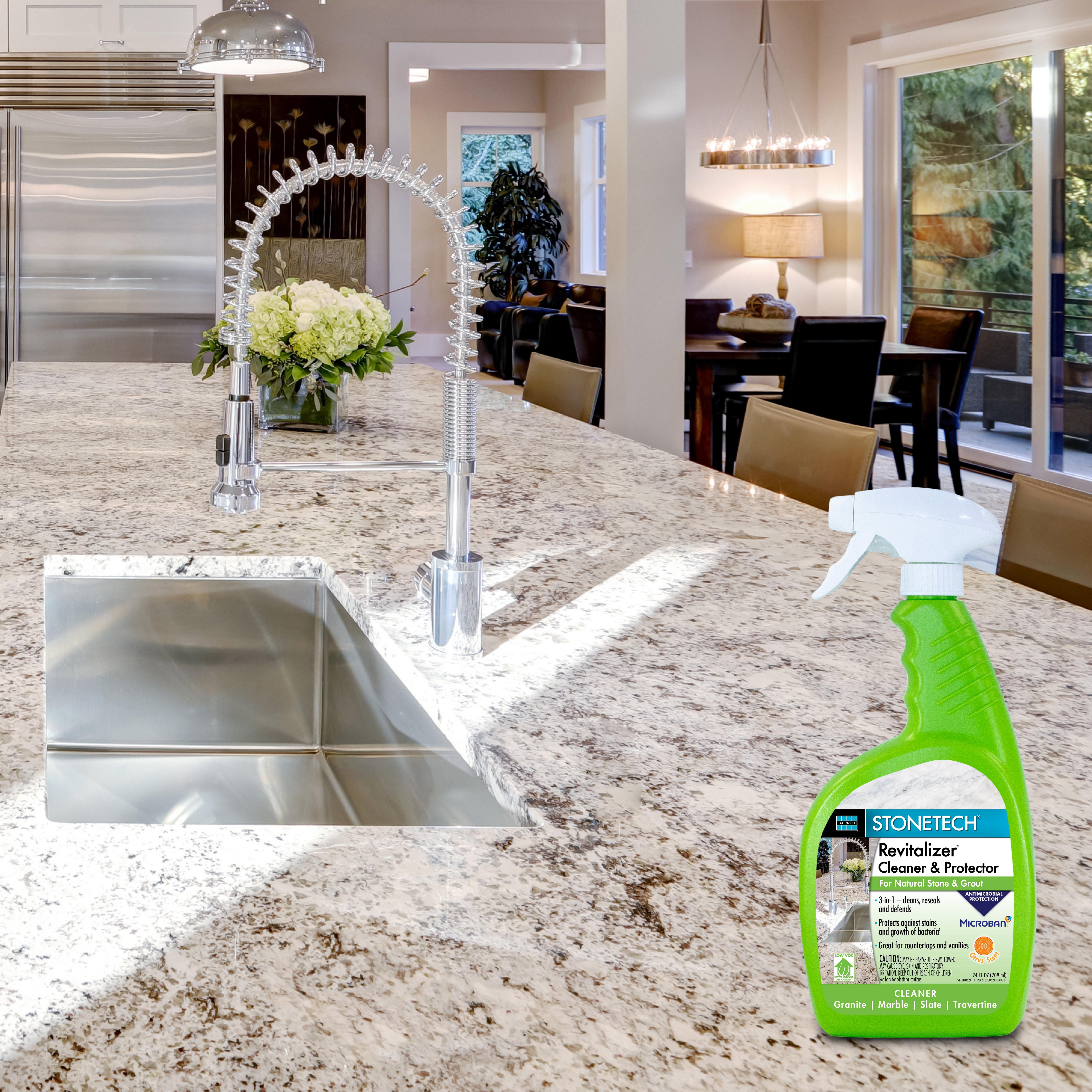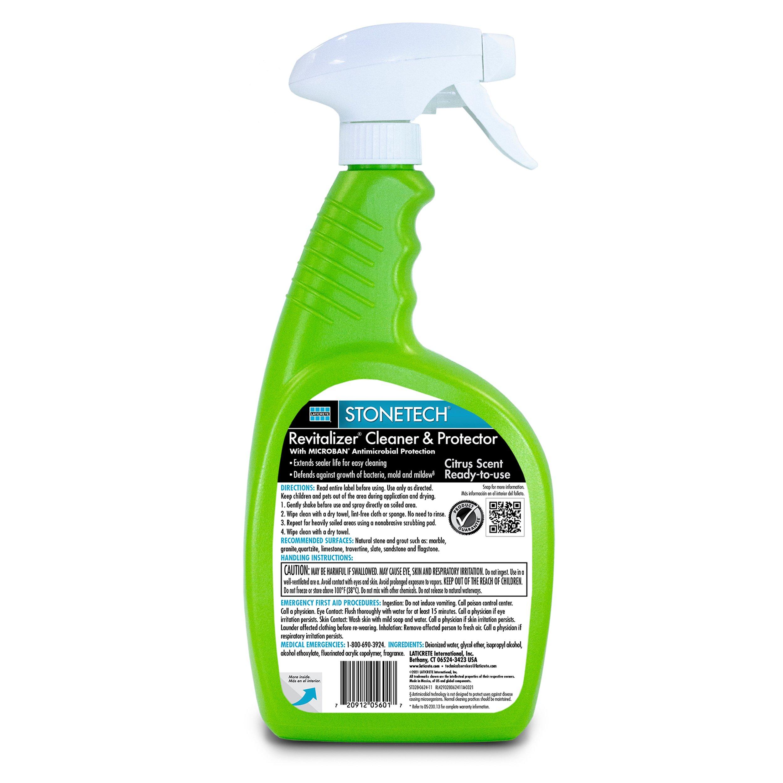 1 Year LimitedLaticrete Stonetech Revitalizer Cleaner and Protector cleans everyday messes on natural stone and grout, all while reinforcing protection. Its built-in sealer extends sealer life to prevent stains and makes surfaces easier to clean. STONETECH Revitalizer Cleaner & Protector keeps natural stone and grout looking as pristine and brilliant as the day it was installed.