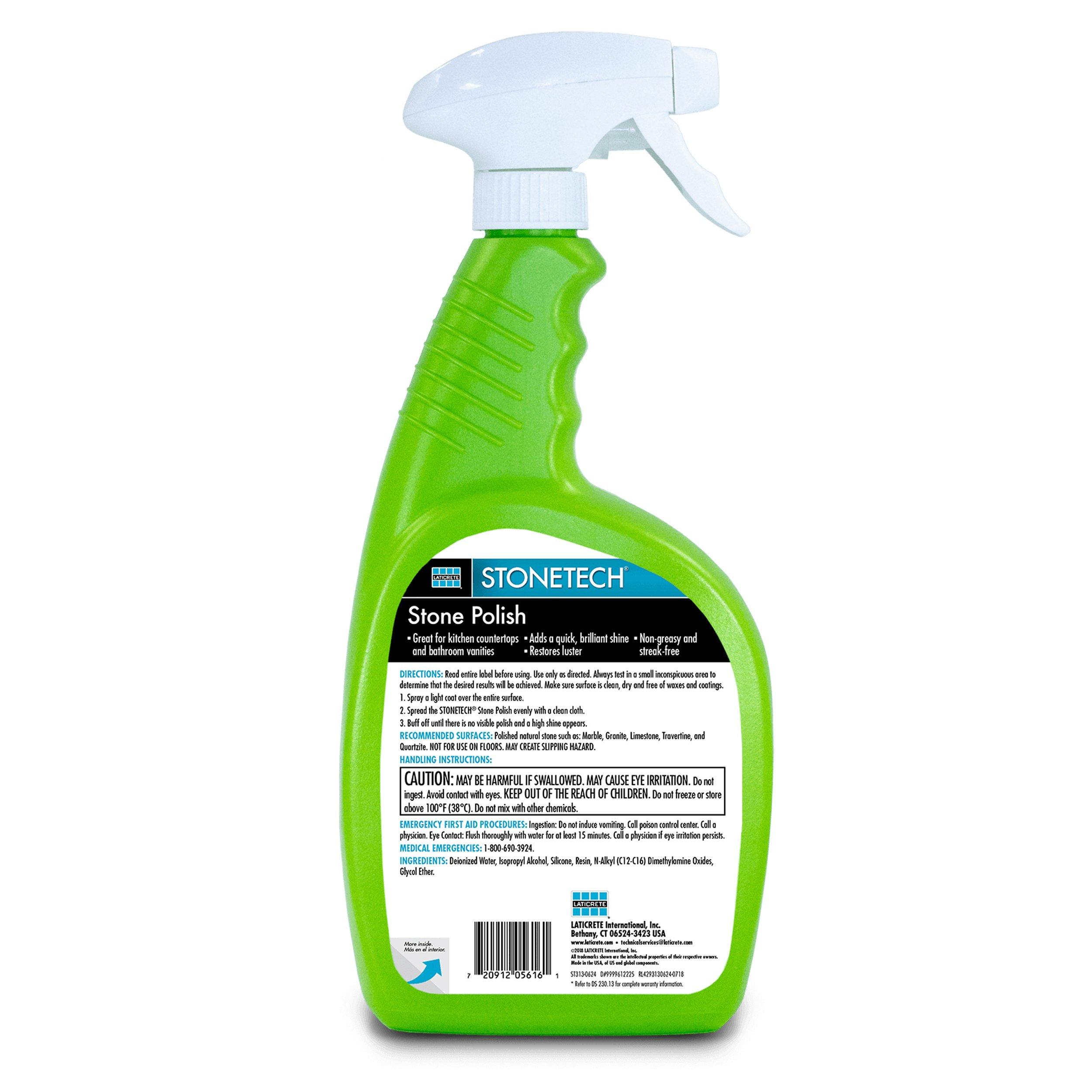 1 Year ResidentialSTONETECH® Polish restores the luster of polished natural stone by adding a non-greasy, streak-free protective shine. This enhancing polish, shines, protects and restores to improve the overall surface appearance. Great for use on polished stone kitchen and bathroom countertops and vanities.