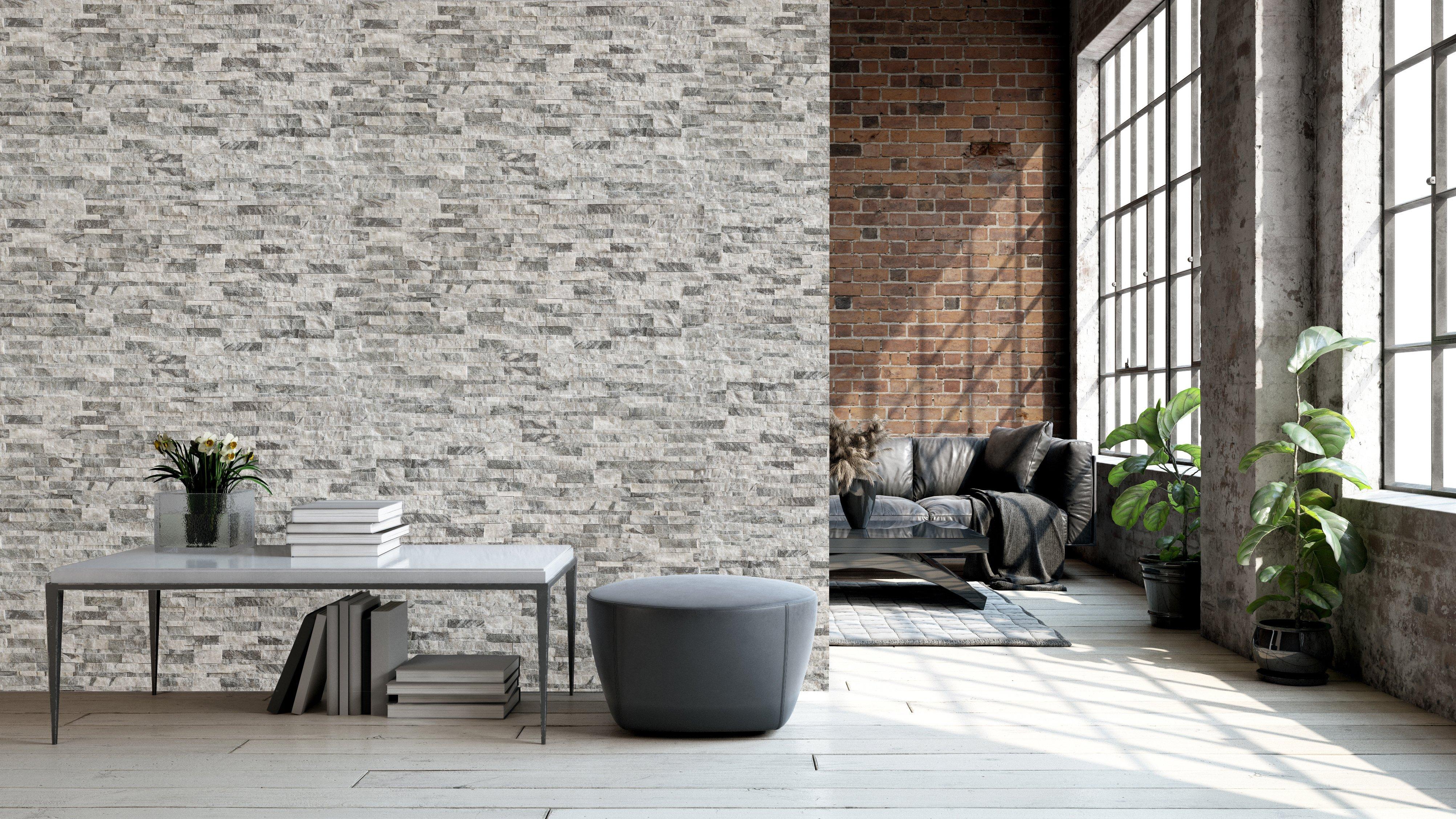 The Arctic Mist Splitface Marble Ledger Panel is versatile for any space with its natural look, making it a stylish addition.