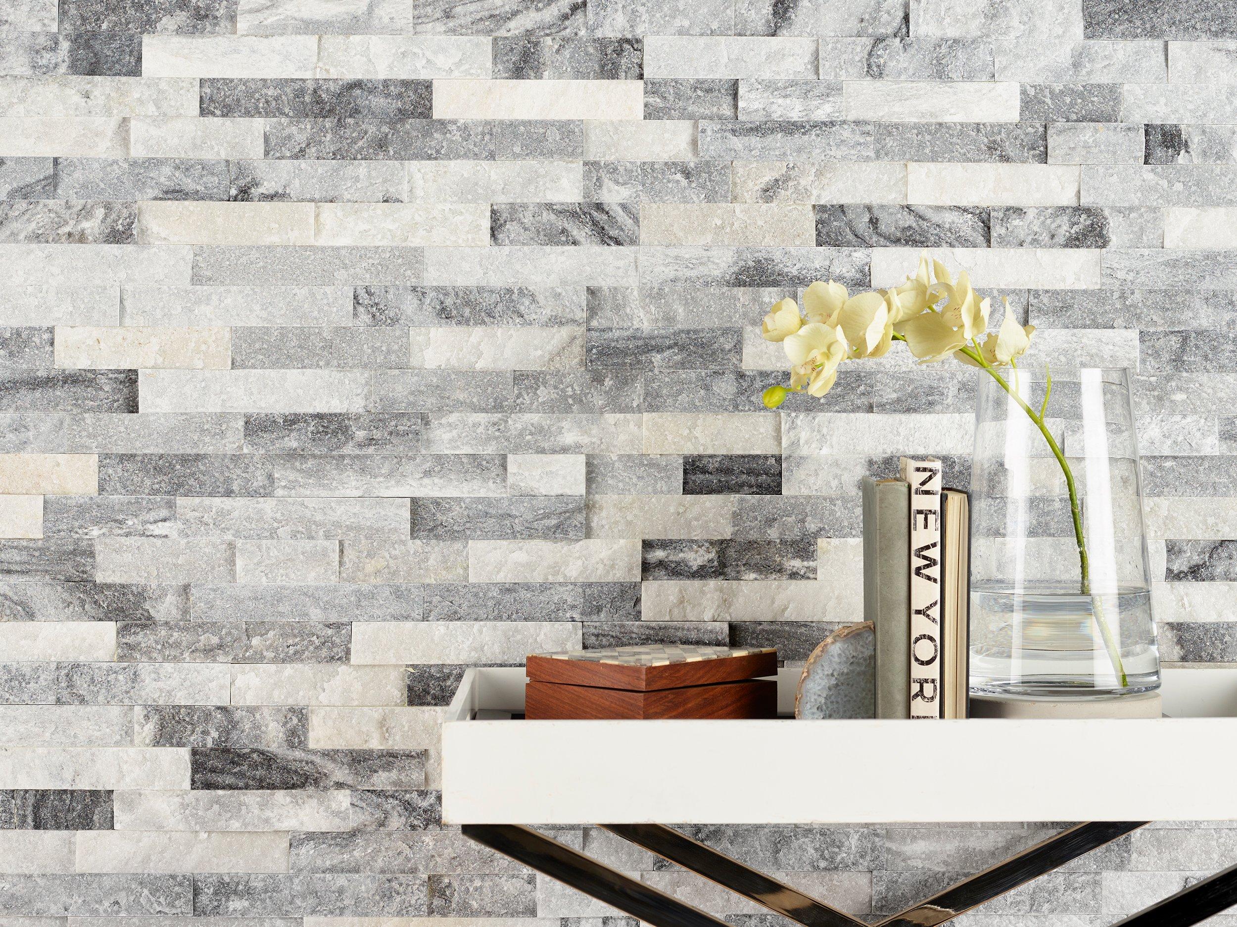 Natural stone like this beautiful Harbor Gray Splitface Quartzite Panel can create a high-value look in any living space. The 6 x 24 quartzite ledger features gray hues with a textured finish. Install it on a wall to create a focal point, or use it to elevate the look of your design.