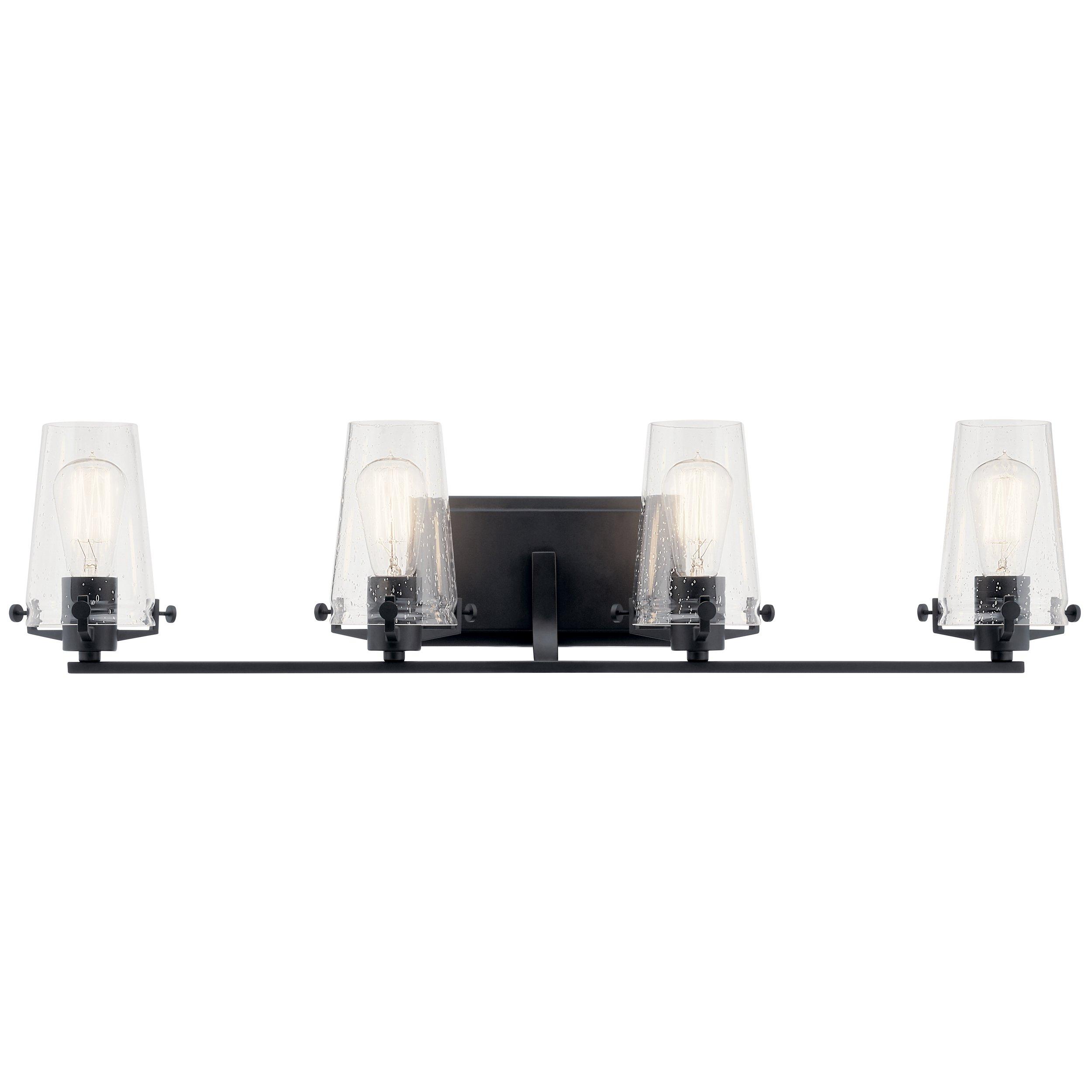 This 33.75in. Alton Black Quad Sconce in black will add a uniformed look to any bathroom. We offer a wide variety of stylish accessories for your bathroom including corner shelves, towel bars, soap dishes and more. With so many materials and styles to choose from, you'll find what your home needs.