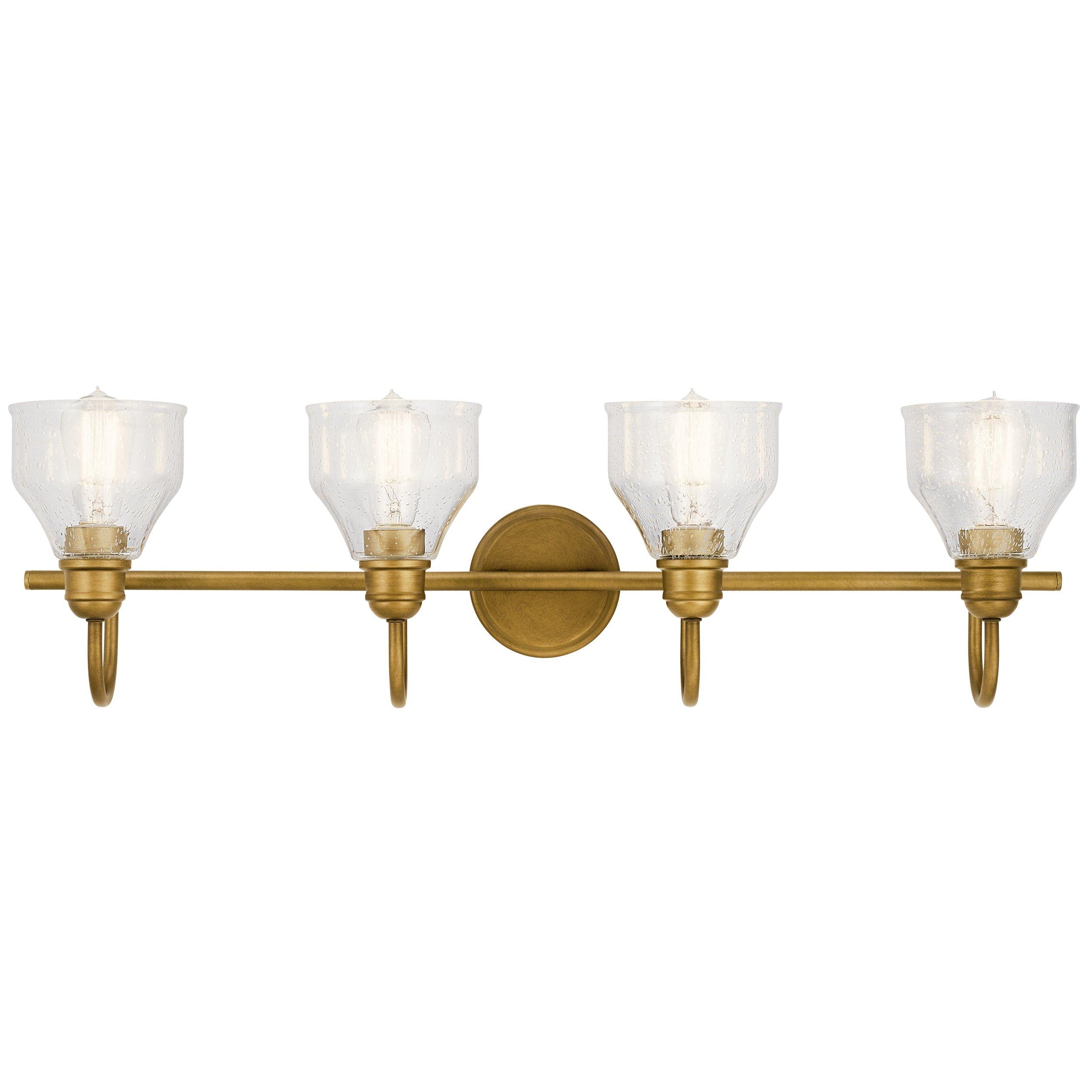 Add a unique design touch with this 33.25in. Avery Natural Brass Quad Sconce in gold/ yellow. We offer a wide variety of stylish accessories for your bathroom including corner shelves, towel bars, soap dishes and more. With so many materials and styles to choose from, you'll find what your home needs.
