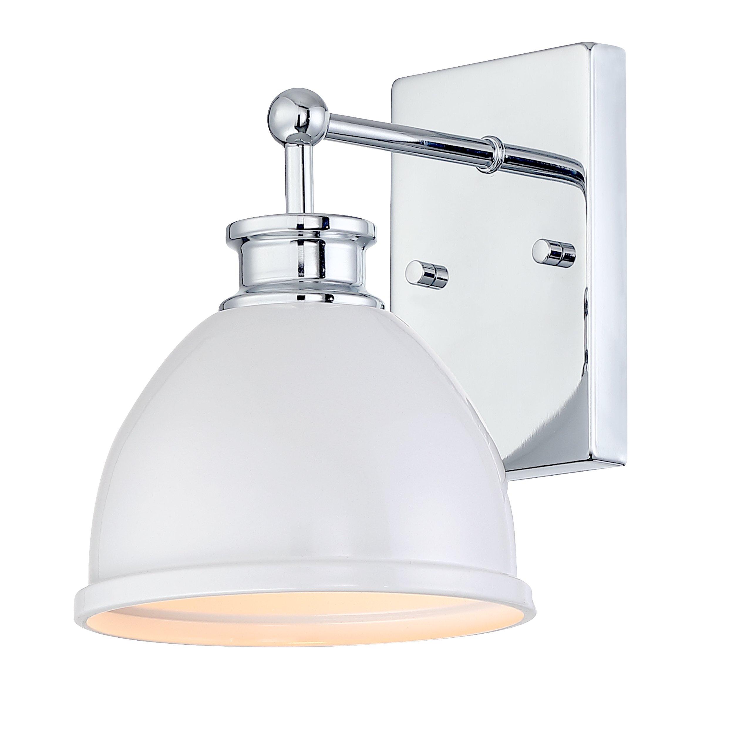 The Cooper Chrome and White Single Sconce by Studio Design Collection is the perfect addition to any bathroom or powder room.