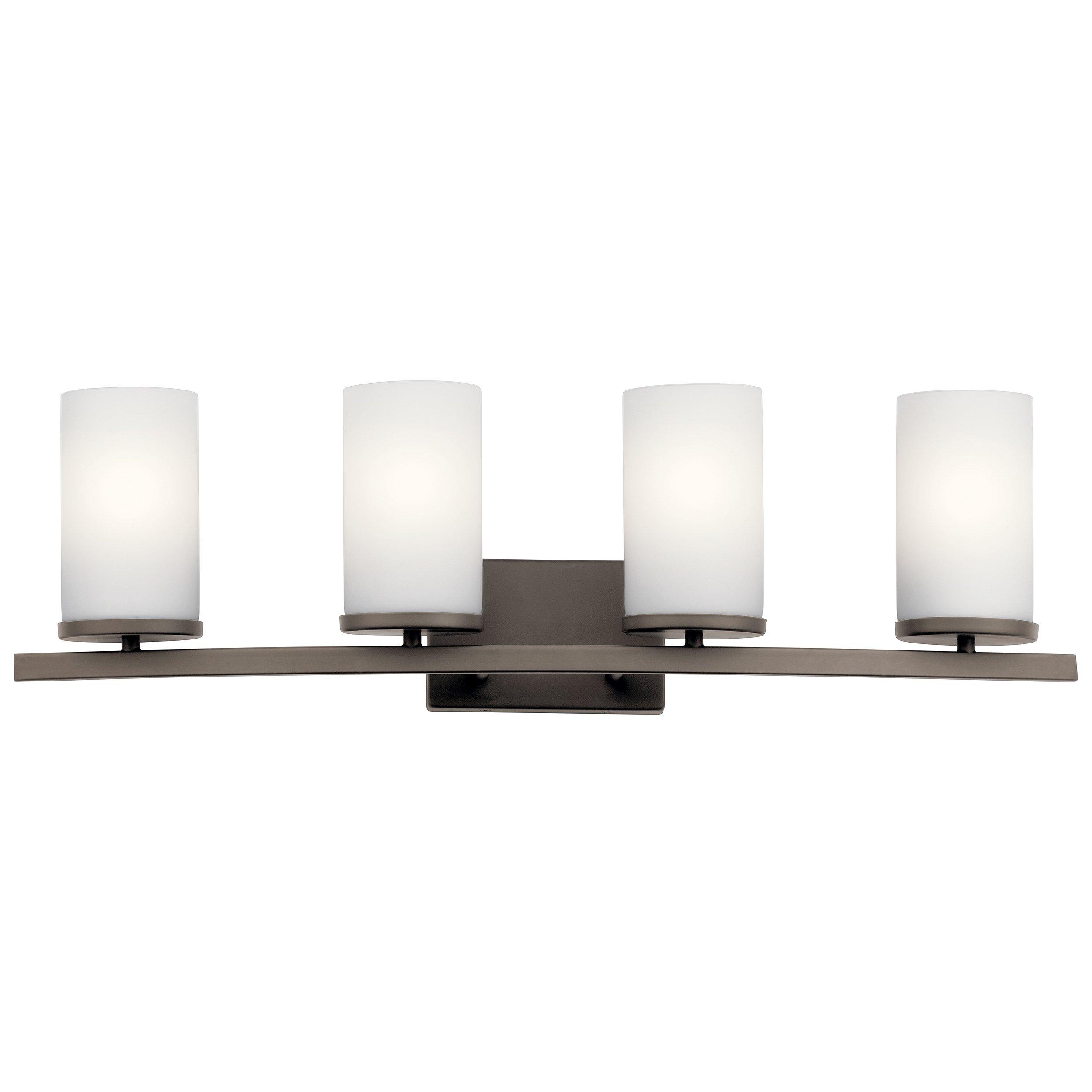 This 31in. Crosby Old Bronze Quad Sconce in brown will add a uniformed look to any bathroom. We offer a wide variety of stylish accessories for your bathroom including corner shelves, towel bars, soap dishes and more. With so many materials and styles to choose from, you'll find what your home needs.