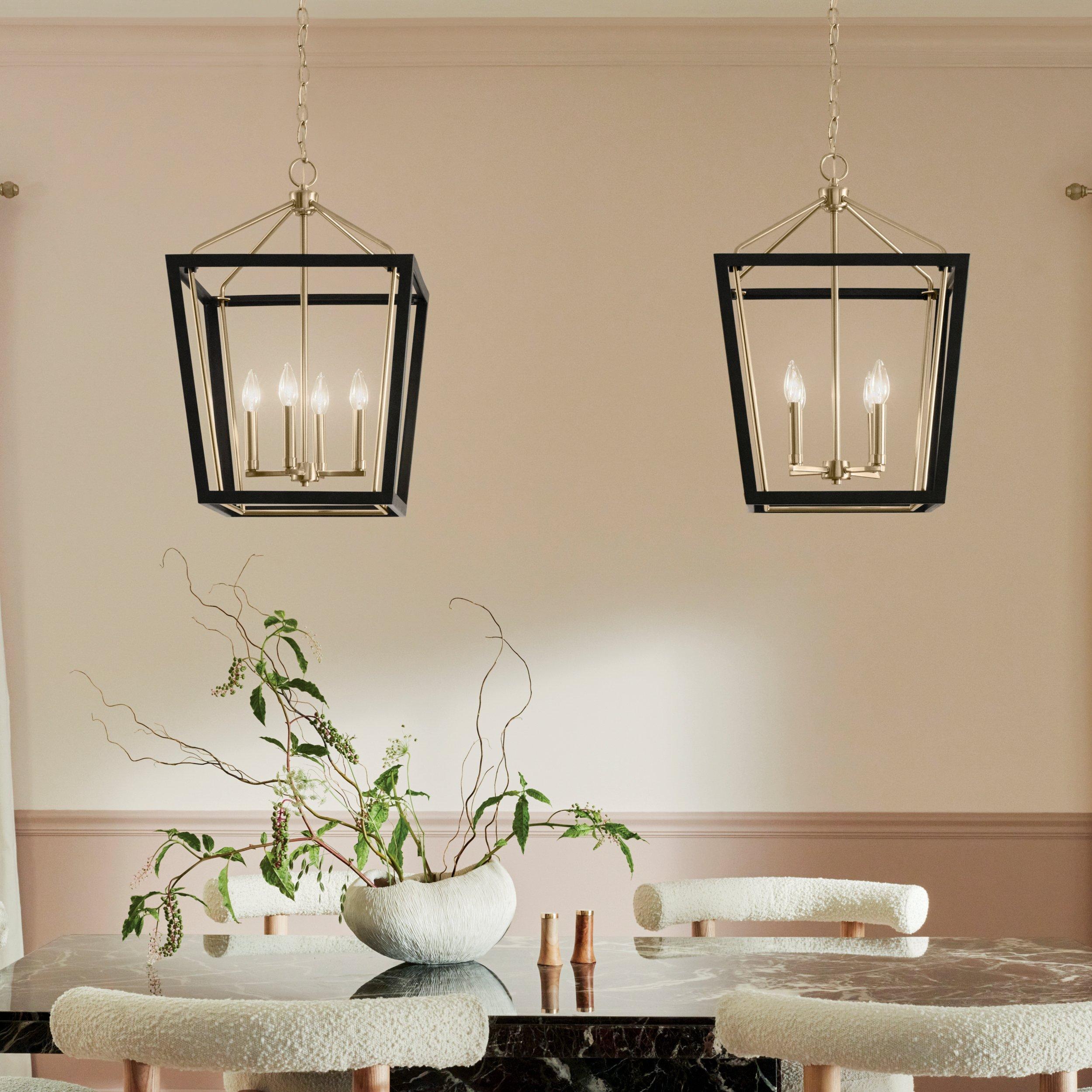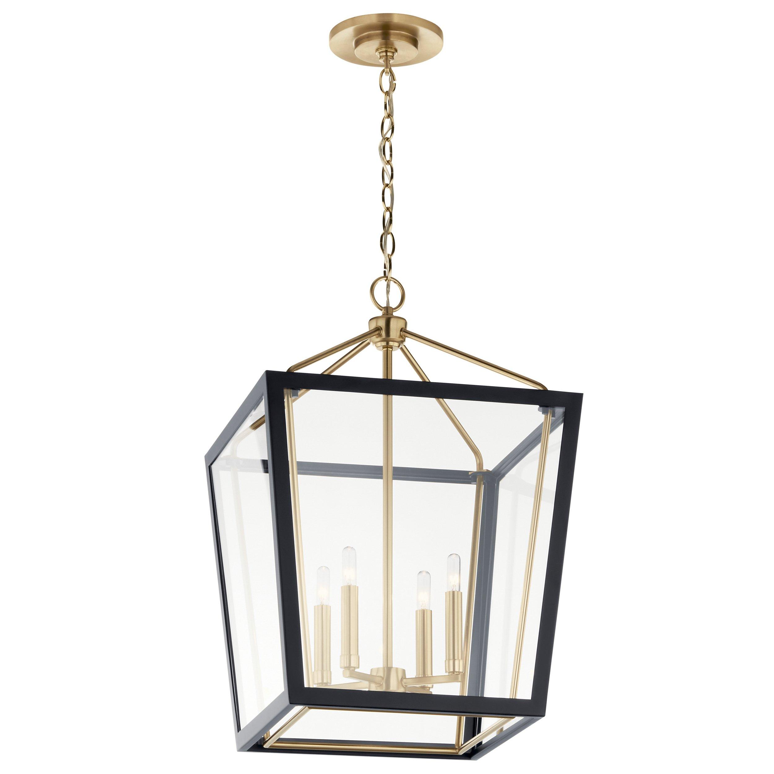 1 Year LimitedThe Delvin Foyer Pendant's removable clear glass panes allow you to customize your look from formal to casual. Its dual finish ensures seamless coordination. Instantly add elevated style and sophistication to any space with its layered, architectural design. The cage is finished in a refined, elegant black and complemented by detailing in champagne bronze, a warm and muted brushed gold. Keep the clear glass for a more formal, traditional style or remove it for a casual, contemporary look.