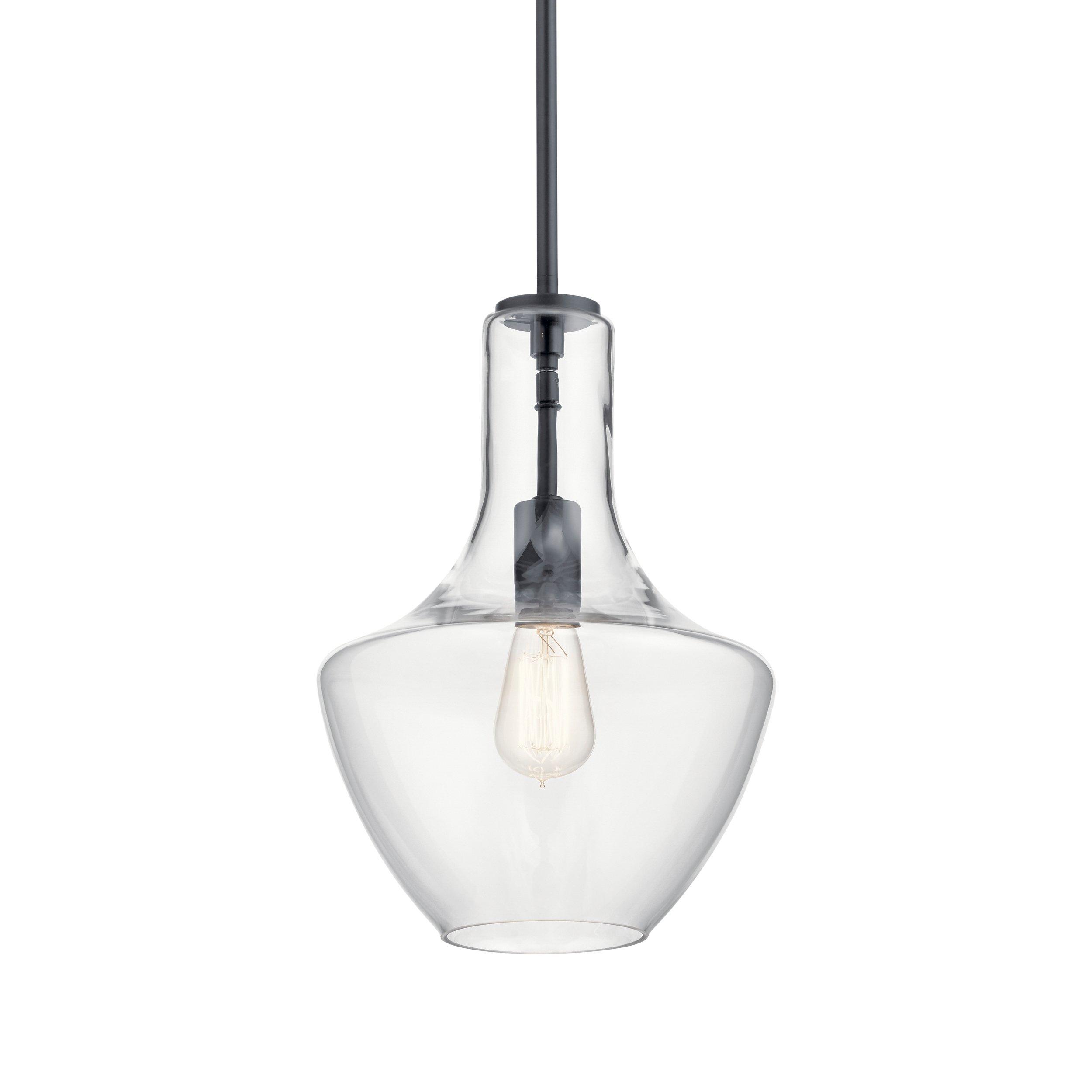 The Everly 1-Light Pendant features a modern style with minimal detailing, effortlessly elevating the ambiance of soft modern environments. This elegant pendant showcases a soft, curvilinear form and a contemporary clear glass silhouette that provides ambient lighting to the entire room.