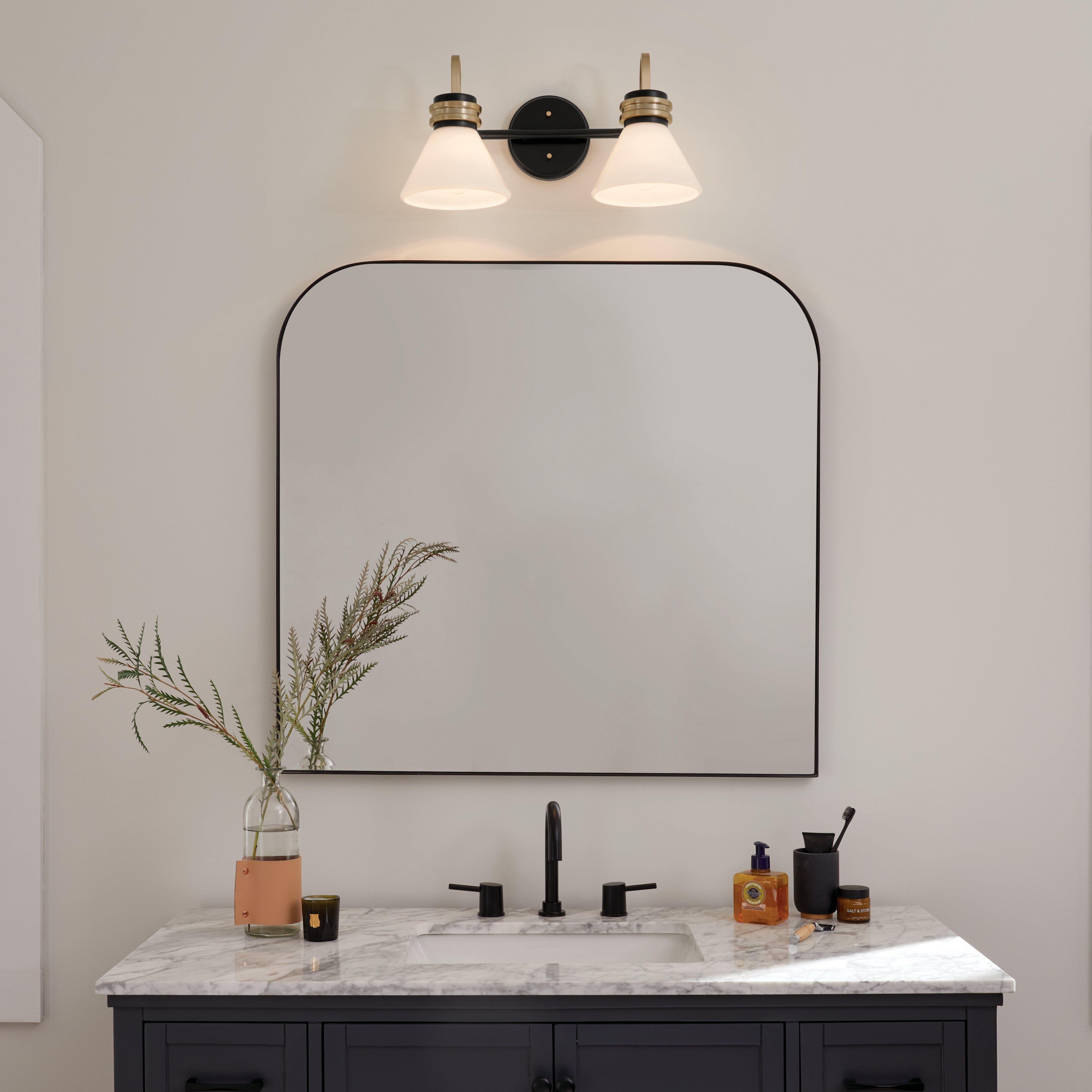 Lifetime LimitedThe Farum Matte Black Double Vanity Light by Kichler is the perfect addition to any bathroom or powder room.