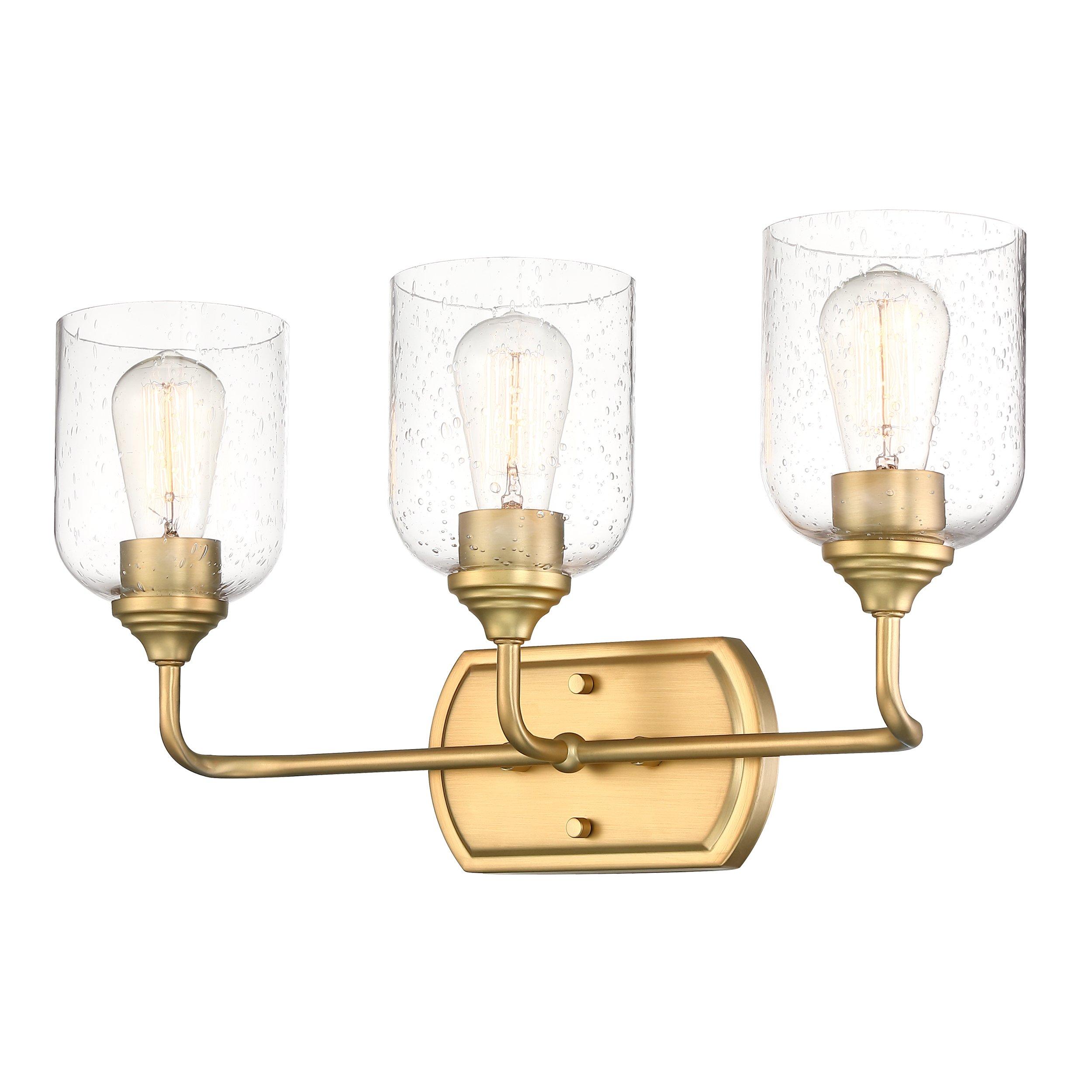 The Jade Brushed Gold Triple Vanity Light by Studio Design Collection is the perfect addition to any bathroom or powder room.