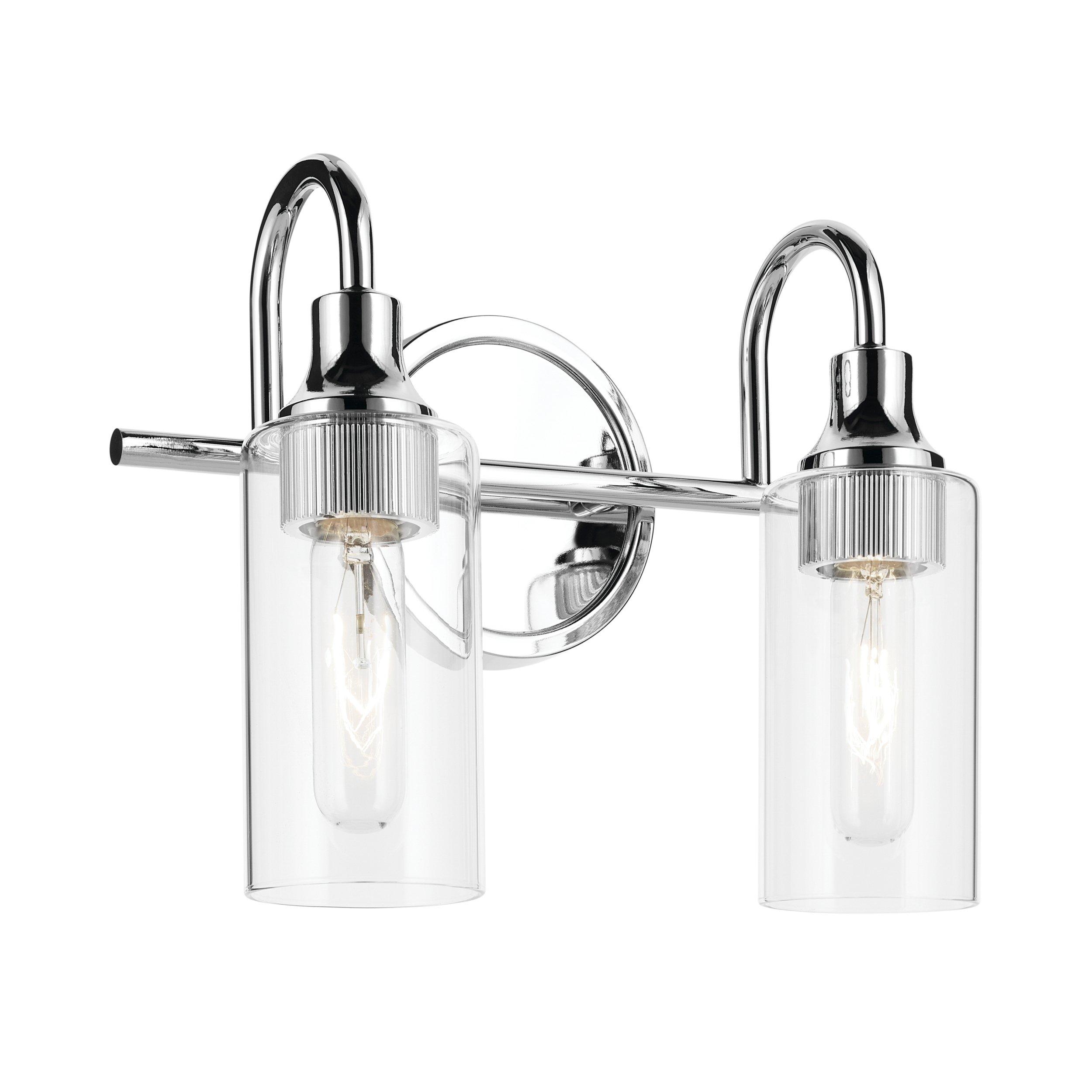 Inspired by European modernism, the Kavi Collection showcases sleek curves and refined fluted socket detailing. The Kavi 2-light vanity light is exceptionally versatile, featuring elegant, sleek curves and intricate socket detailing that enhance any bath space. Its clear glass provides ample lighting throughout the room, while its European flair perfectly complements soft modern environments.
