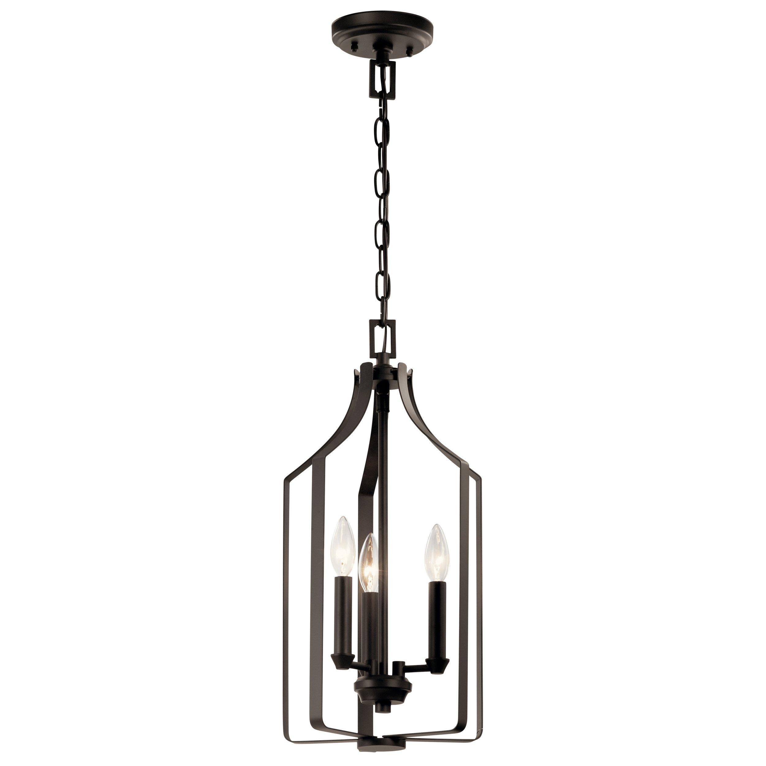 1 Year LimitedThe Morrigan 3-Light Foyer Pendant in Brushed Bronze finish accentuates the elegance of candelabras with a modern twist, featuring clean lines, an open cage structure, and curved design details. Its traditional-inspired style with contemporary elements complements various decors seamlessly. This pendant measures 10 inches in width and has a body height of 21 inches, with a maximum hanging height of 95 inches. It accommodates three E12 bulbs up to 60W each. This fixture delivers beautiful ambient lighting throughout the room, making it a stunning addition to your living space.