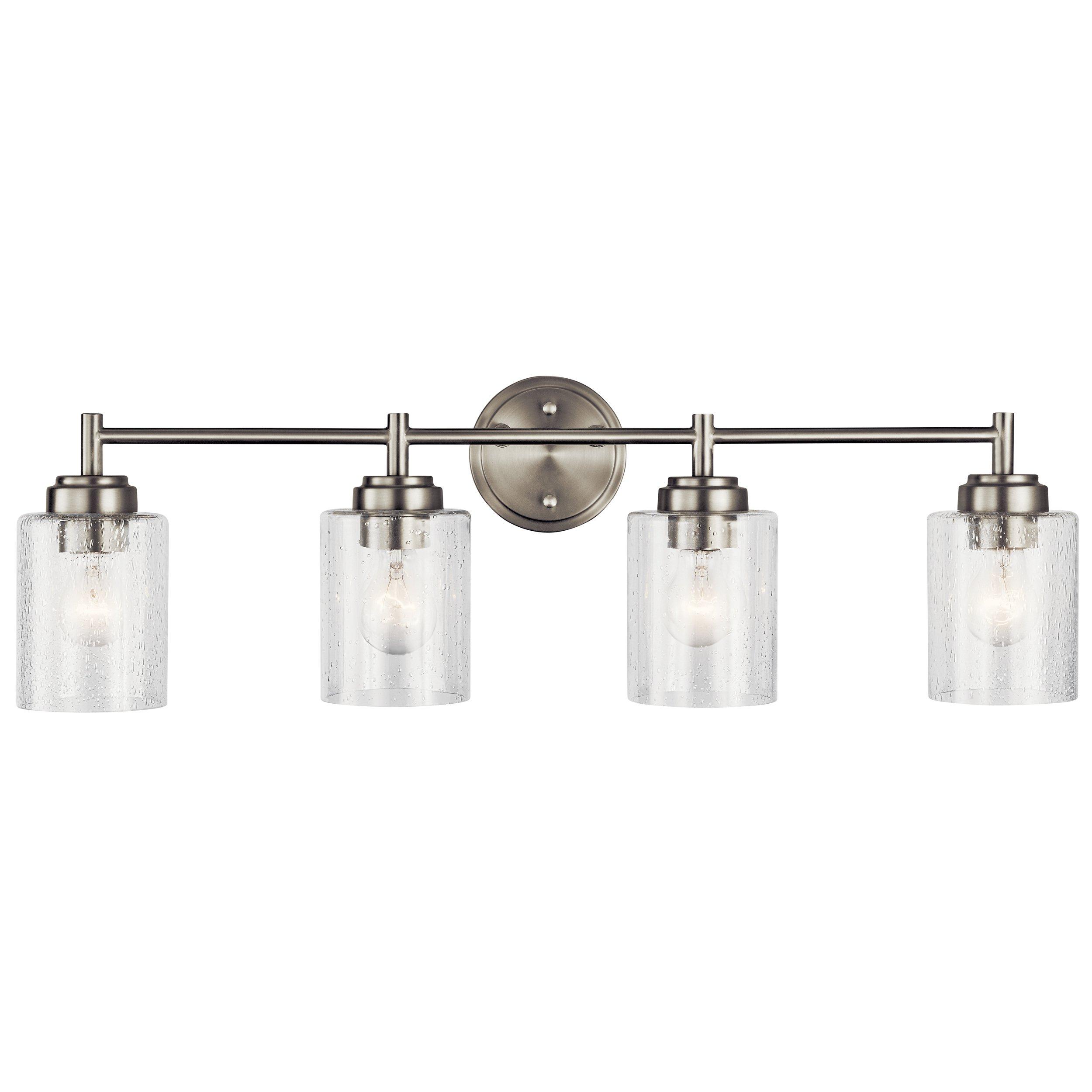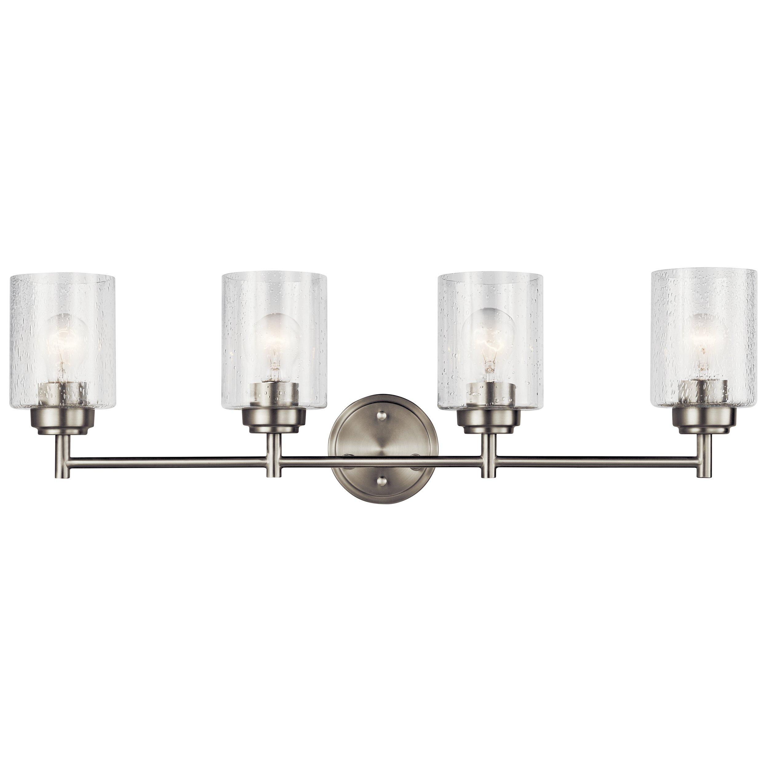 Accent your bathroom with this 30in. Winslow Brushed Nickel Quad Sconce in silver. We offer a wide variety of stylish accessories for your bathroom including corner shelves, towel bars, soap dishes and more. With so many materials and styles to choose from, you'll find what your home needs.