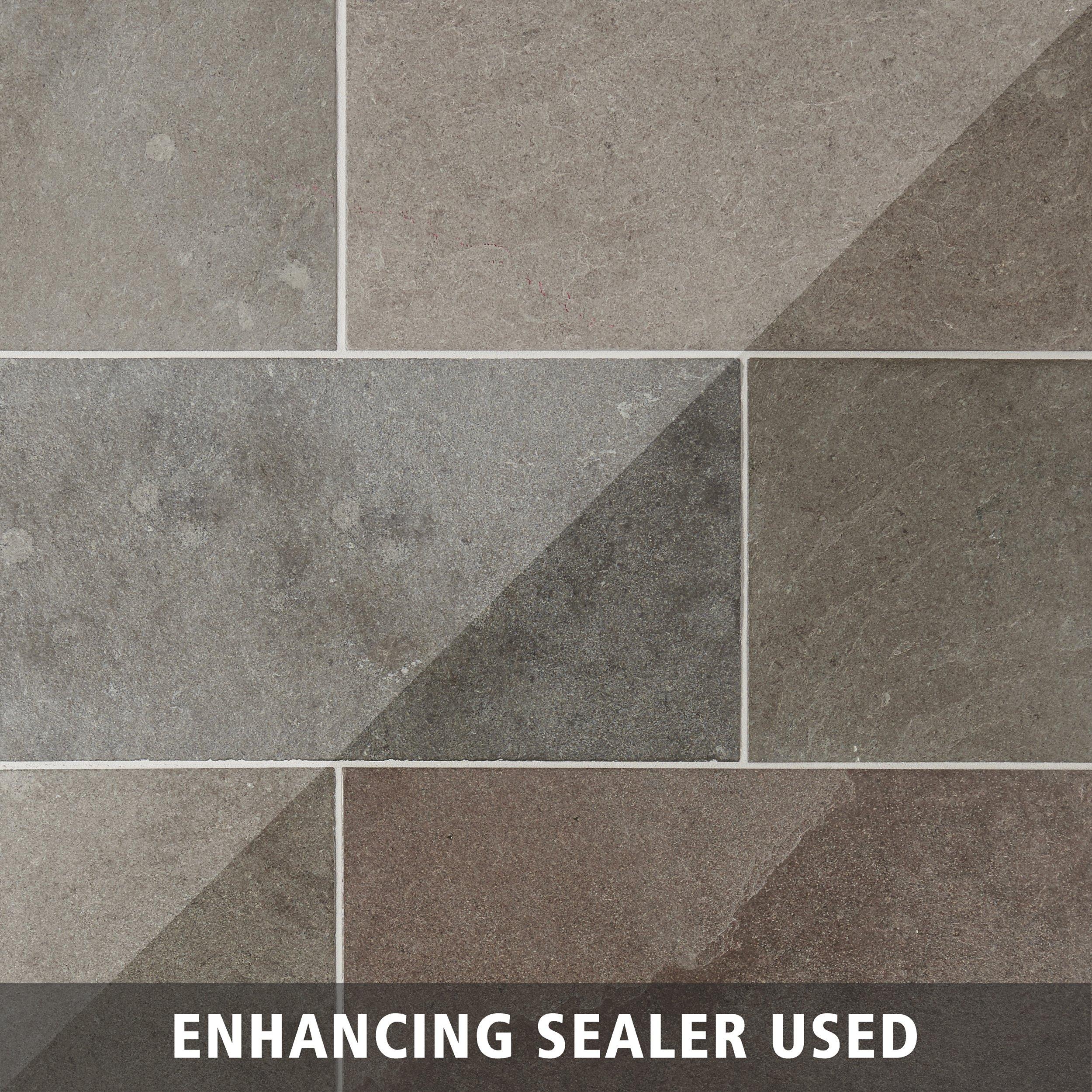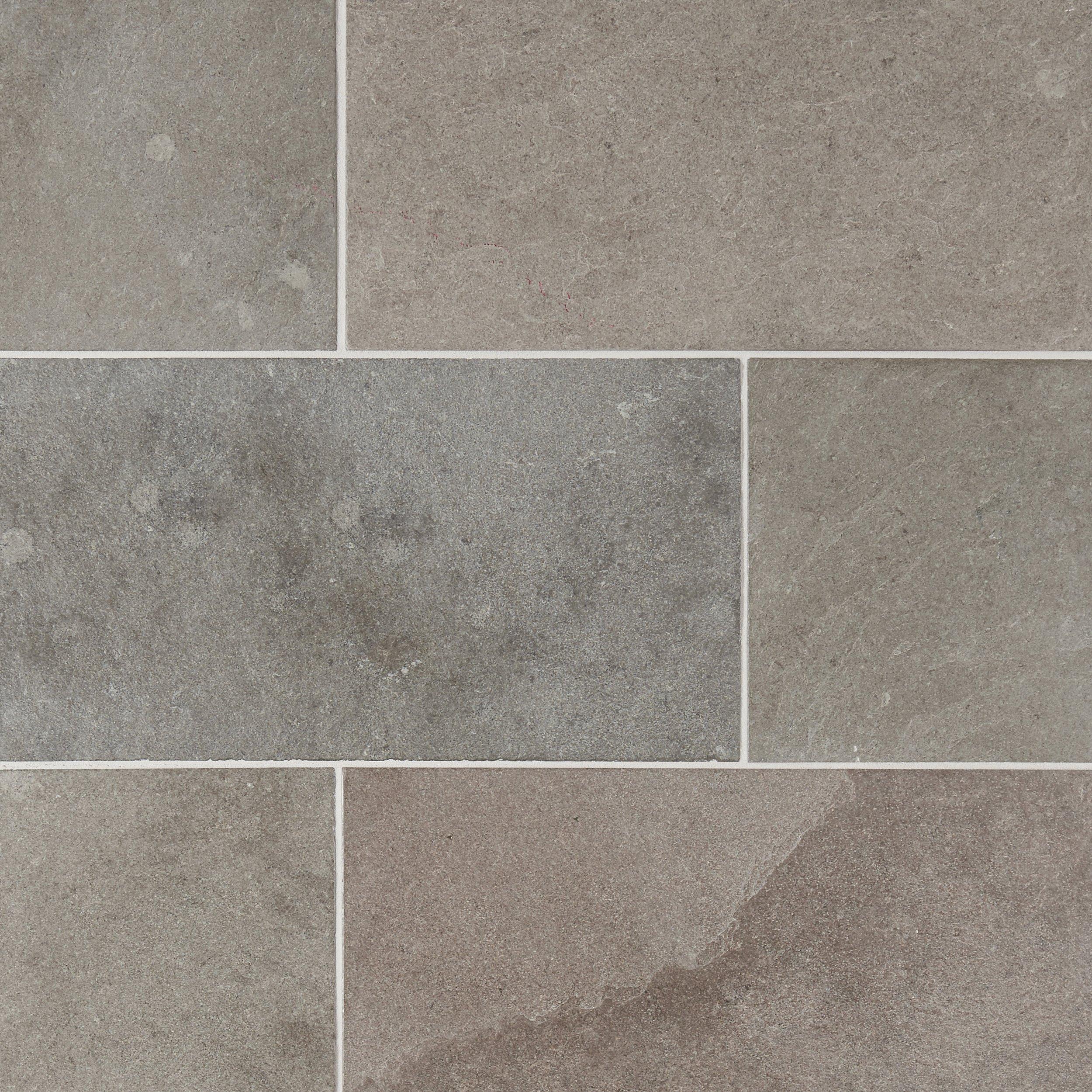 This Ashford Gray Brushed Limestone Tile is 12 x 24 and is gray.