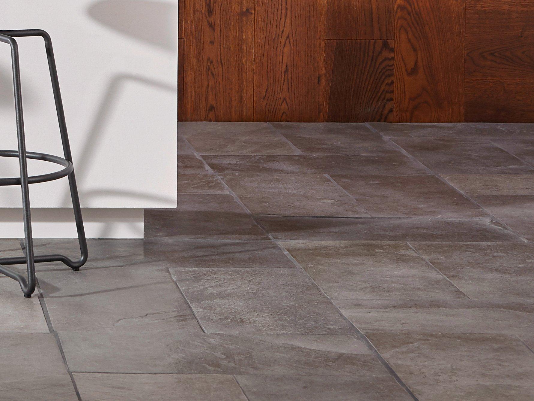Natural stone's ageless beauty is highlighted with brushed finish tiles, giving the surface of the tile a textured look.