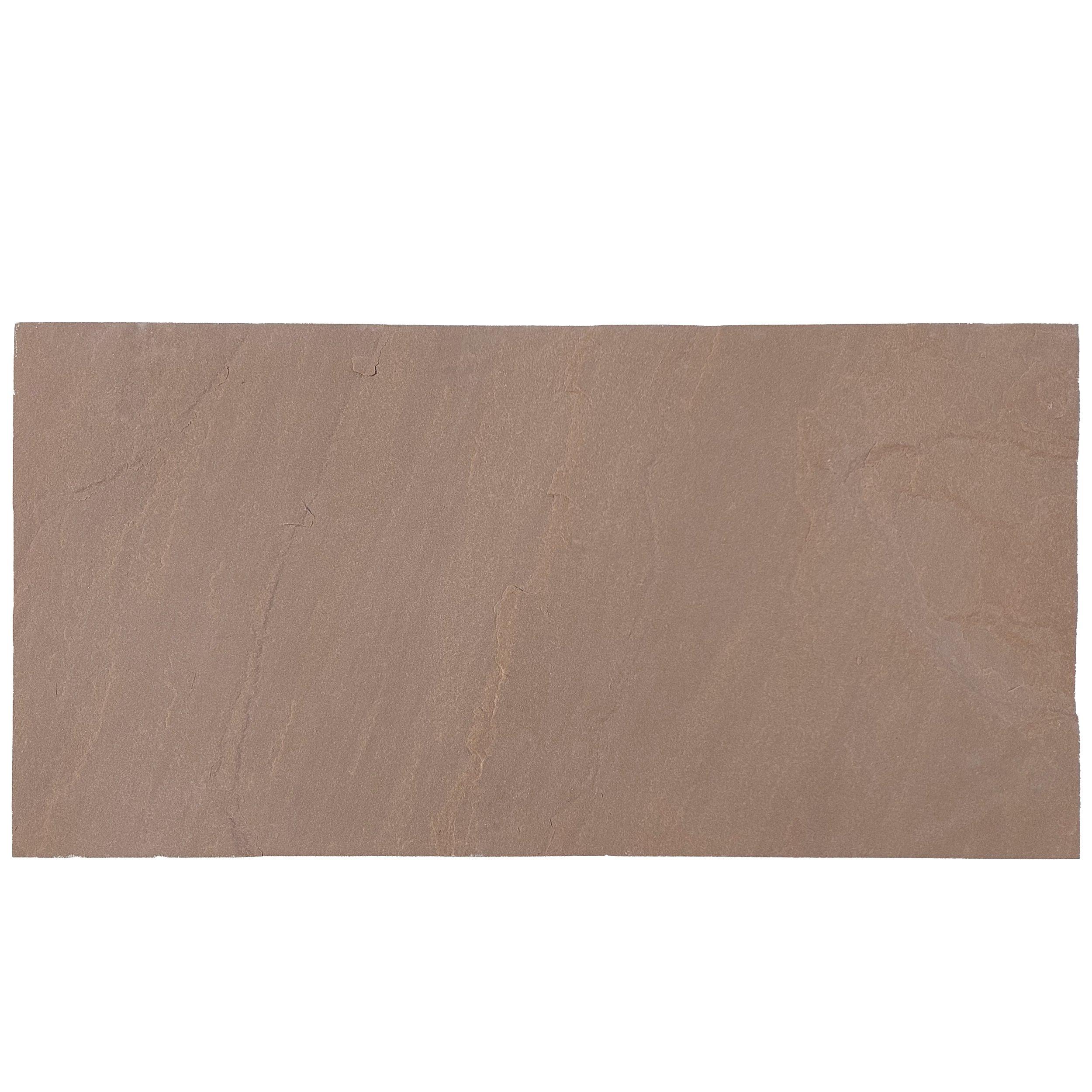 This Copper Bluff Sandstone 2cm. Paver is 12 x 24 and is brown.