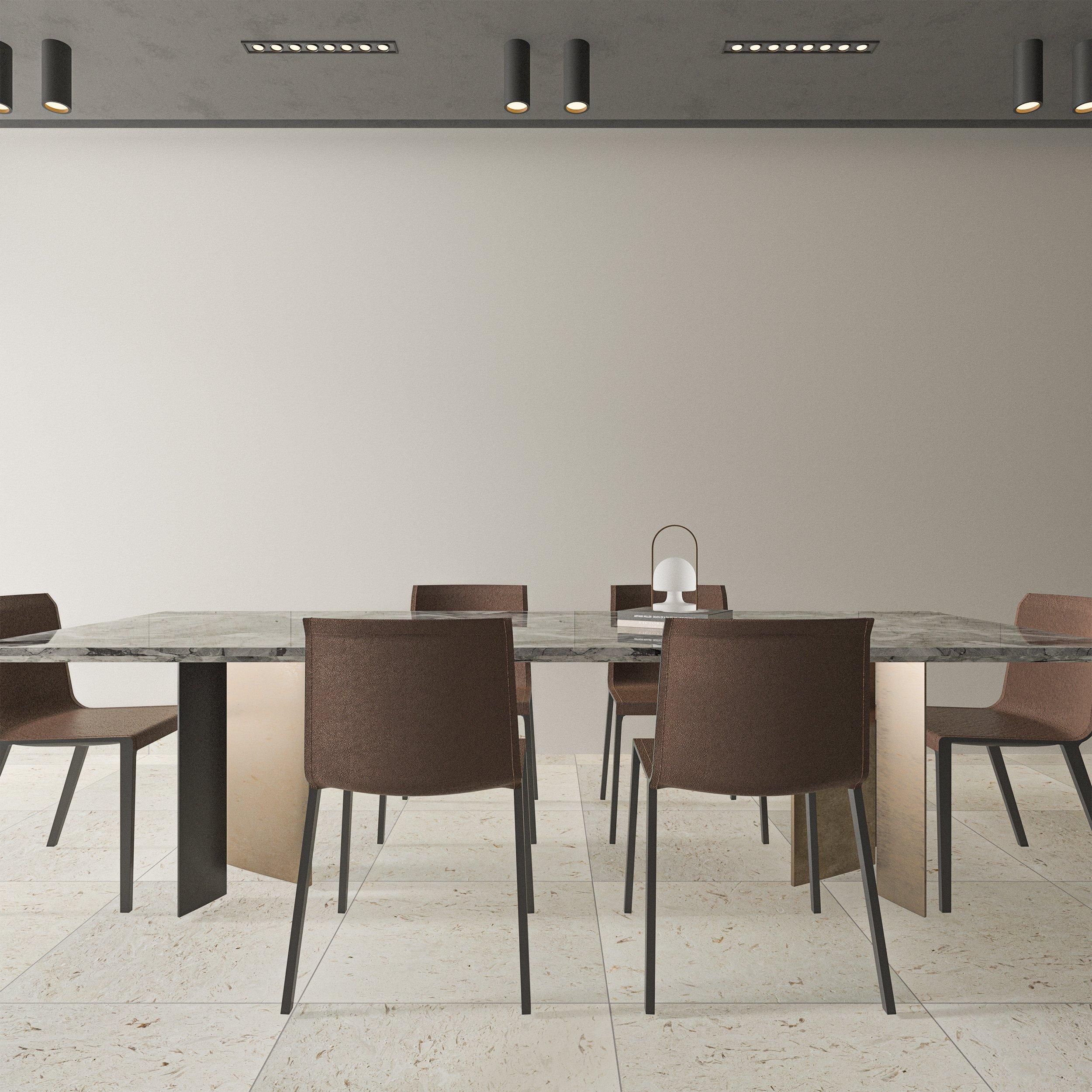 Natural stone's ageless beauty is highlighted with brushed finish tiles, giving the surface of the tile a textured look.