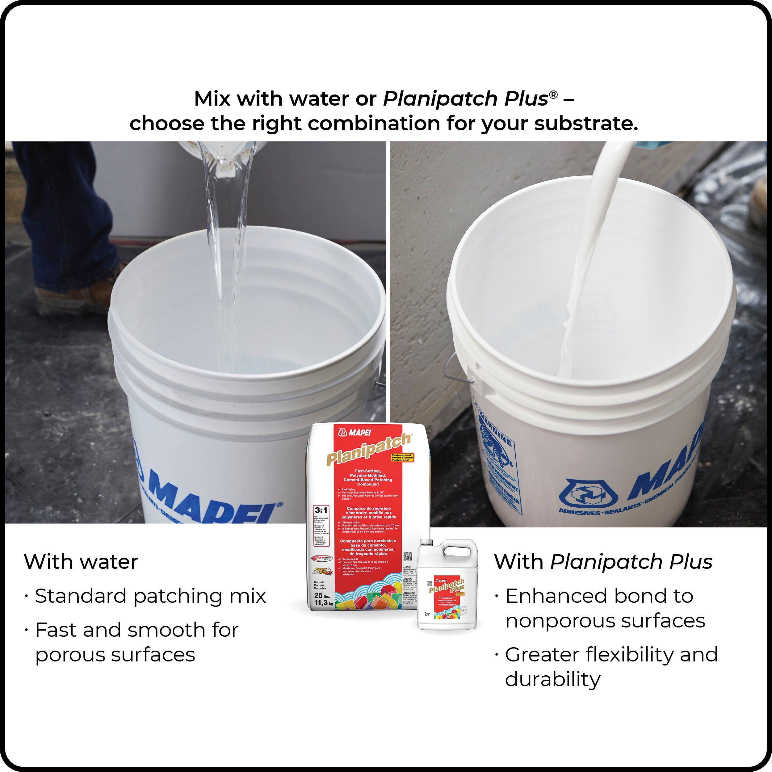 1 Year ResidentialMapei Planipatch Gray Patching Compound is an ultra fast-drying, polymer-modified, cement-based patching compound that delivers high compressive strength and smooth results. When combined with Planipatch Plus®, it creates a versatile system for embossing leveling or filling voids over properly prepared vinyl, VCT, and terrazzo before installing floor coverings.