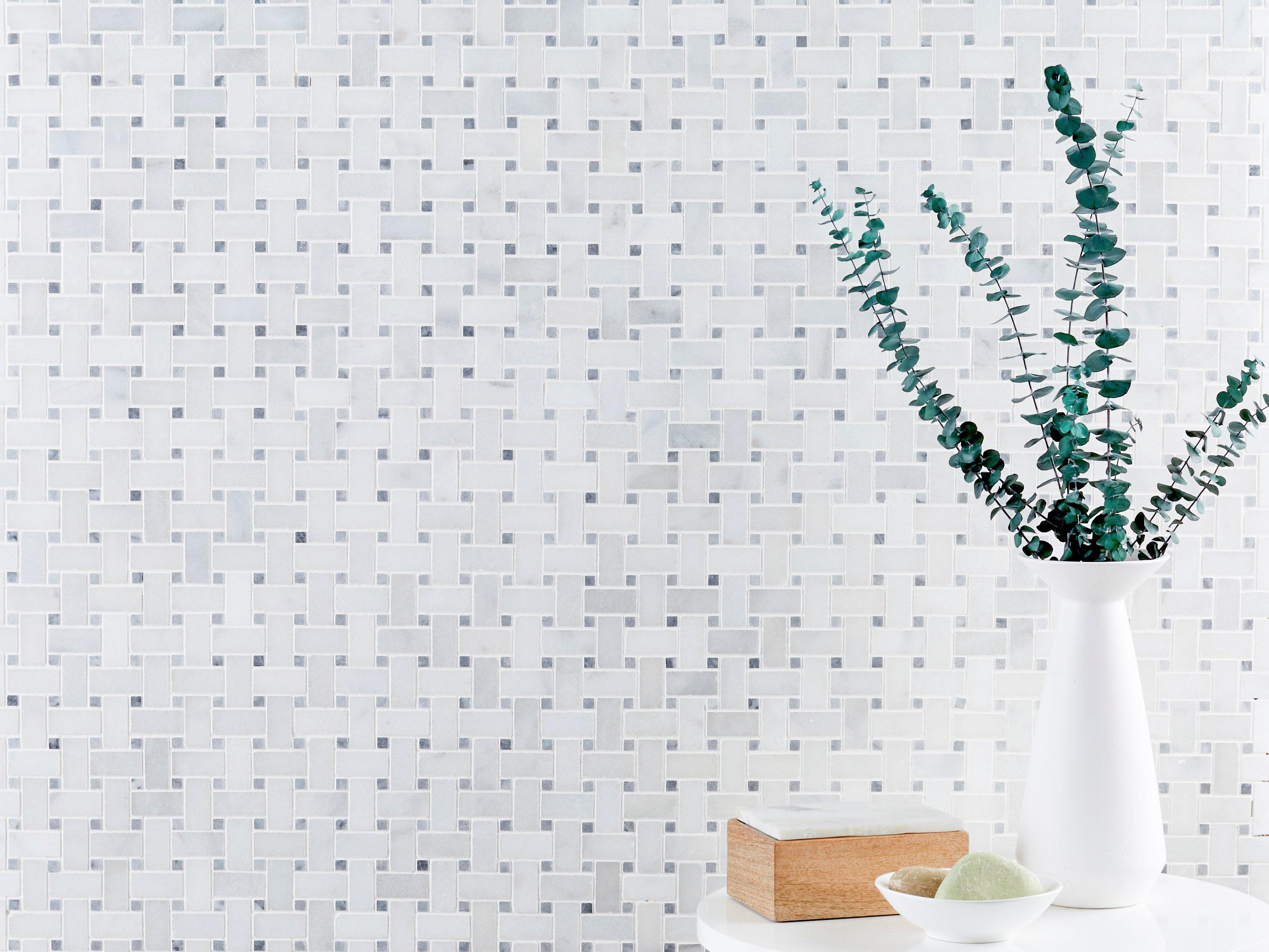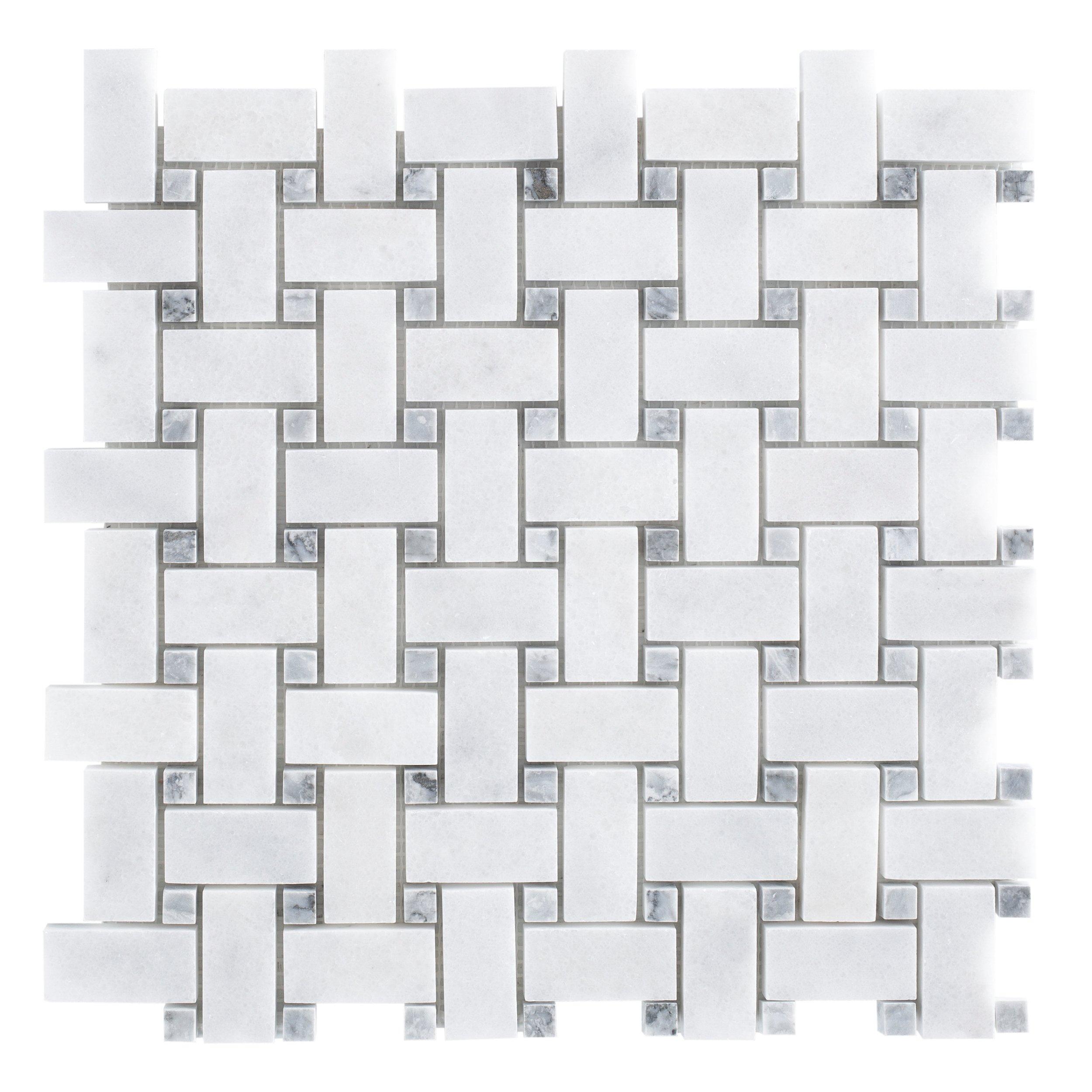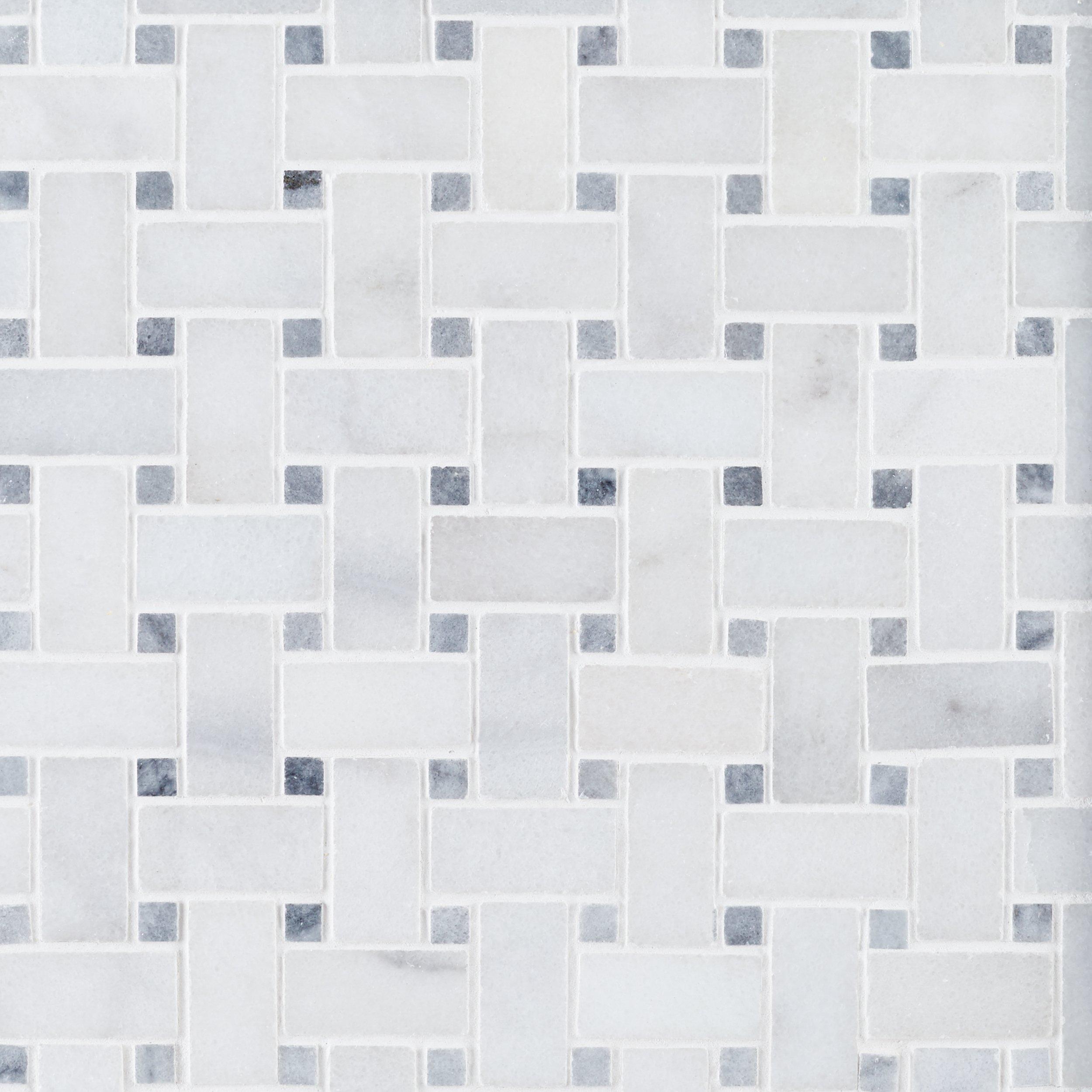 Create a timeless statement with this gorgeous Carrara Chateau Basket Weave Polished Marble Mosaic. It is easy to clean and makes it an addition to the room that’s both practical and attractive. This 12 x 12 decorative tile comes in white and has a polished or high gloss finish, giving a refined elegance to interior spaces and providing endless design possibilities.