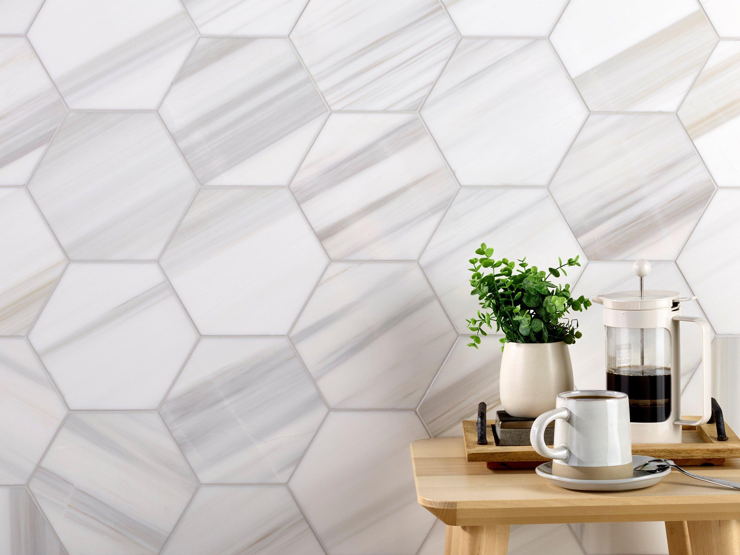 Hexagon & octagon-shaped marble create unique eye-catching designs.