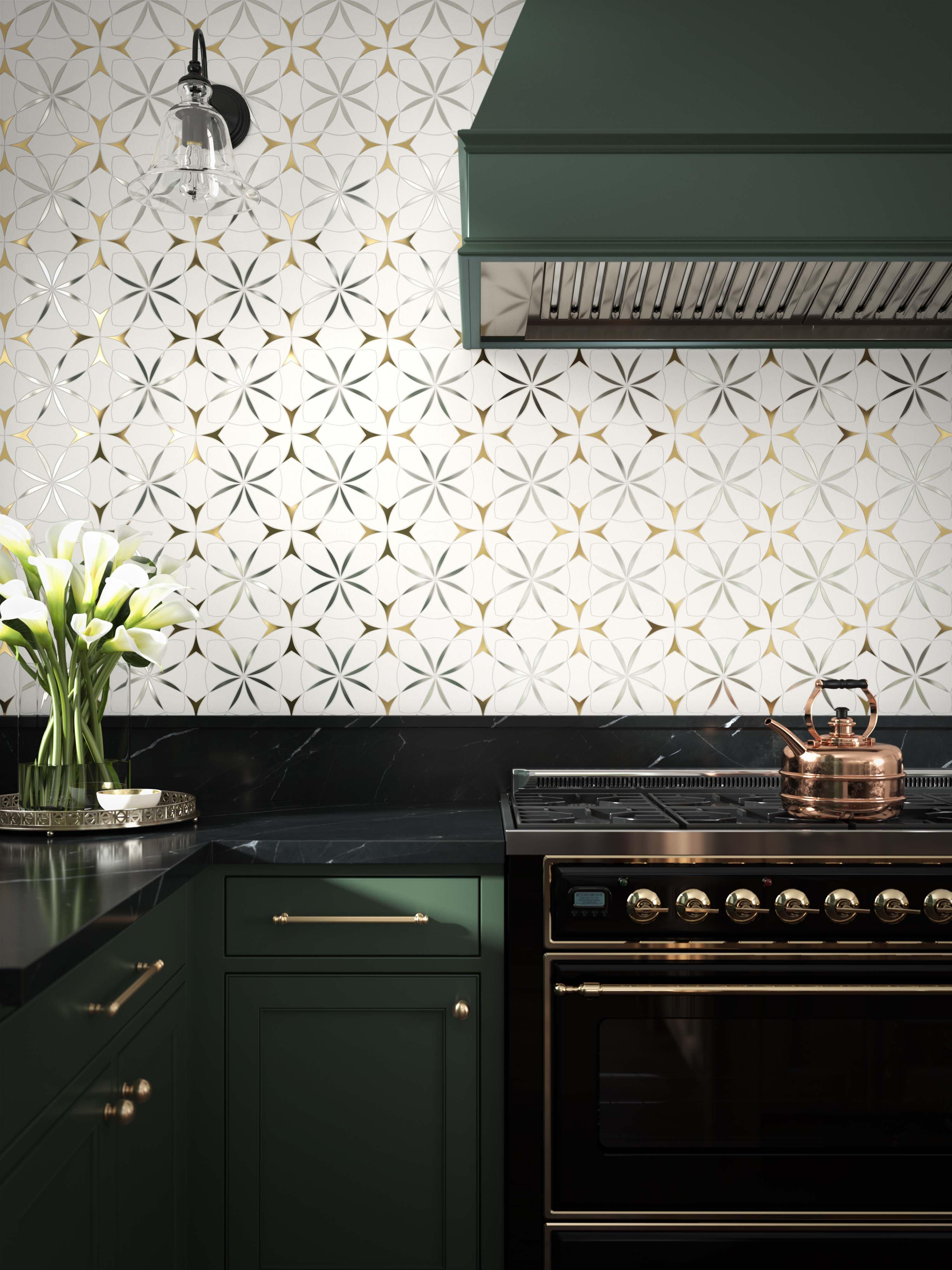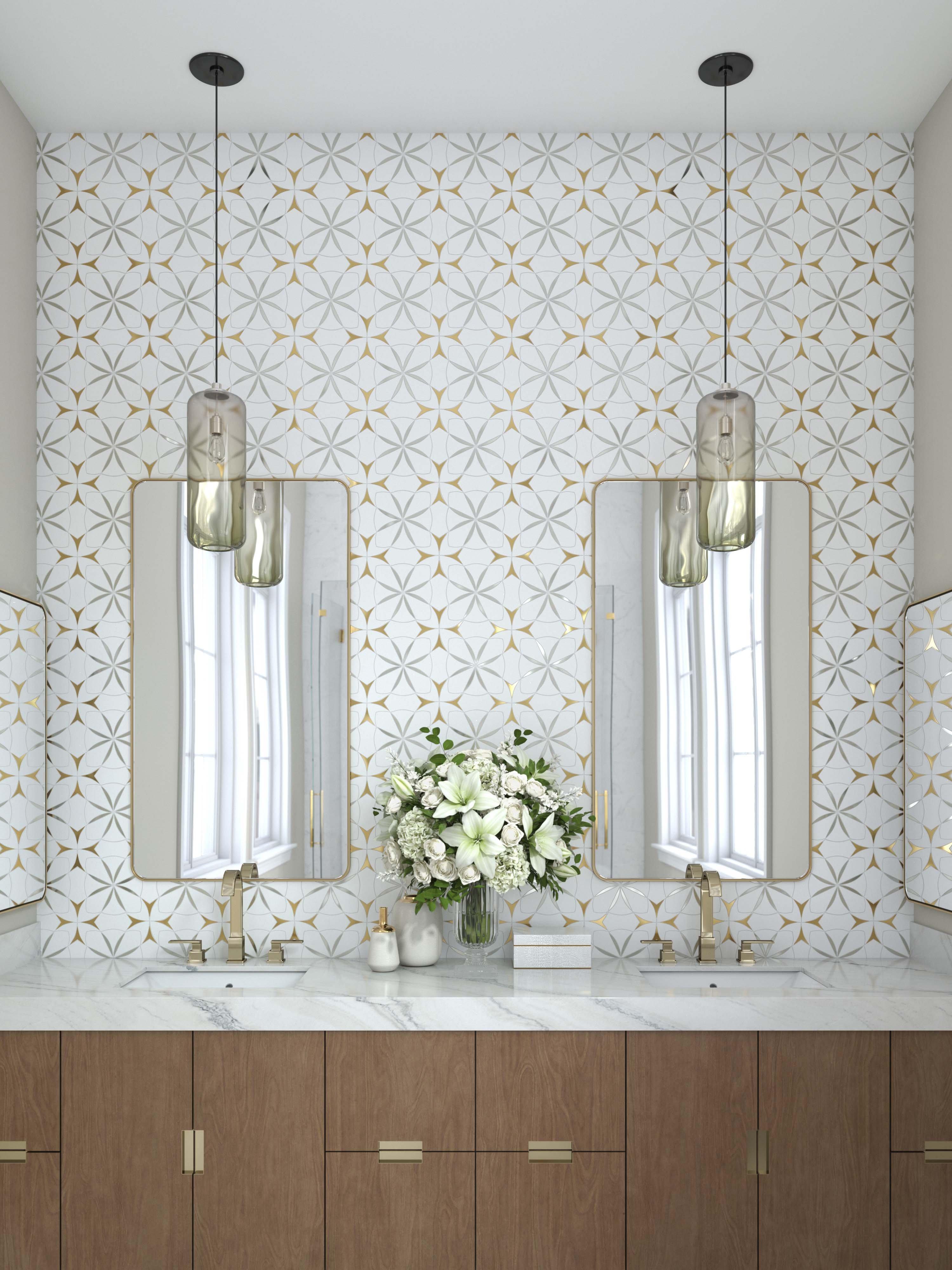 The opulent silhouette of this waterjet mosaic is sure to bring a dose of modern luxury to your home.