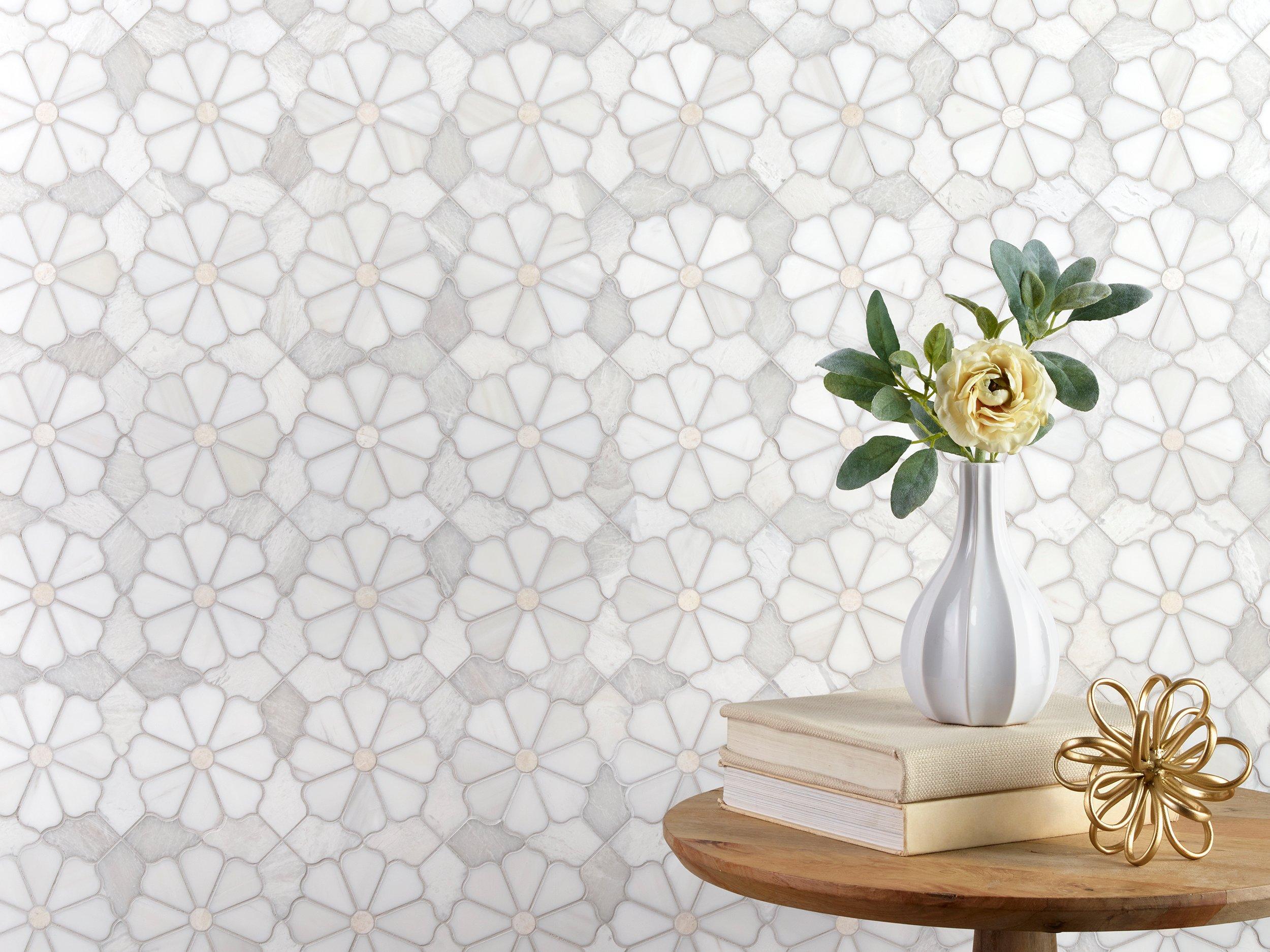 The Poppy Dolomite Iceberg Polished Marble Waterjet Mosaic in beige is as timeless as it is versatile. Its durability and easy maintenance make it a practical and attractive addition to almost any room, and you’ll have an effortlessly elegant aesthetic.