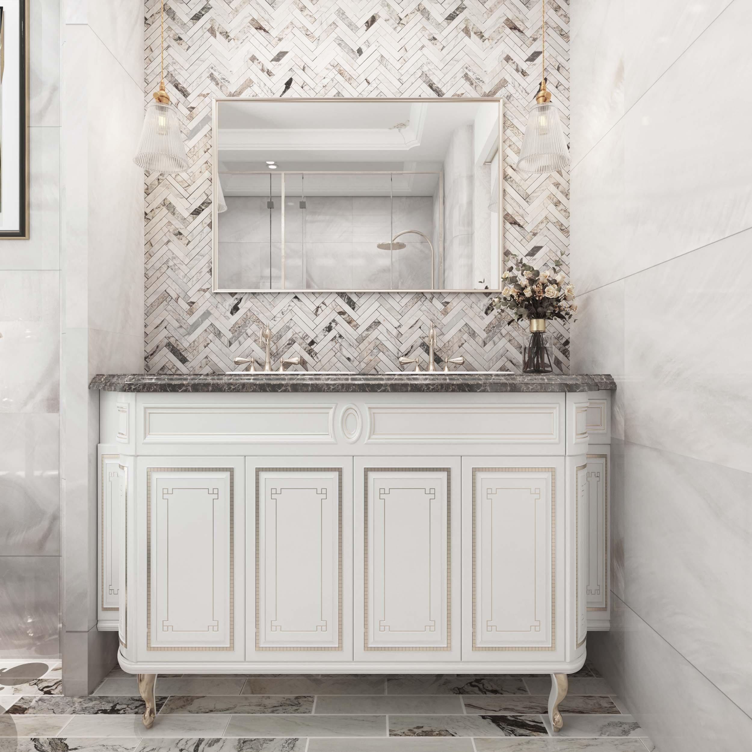 The Sorrento Herringbone Polished Marble Mosaic in white is as timeless as it is versatile. Its durability and easy maintenance make it a practical and attractive addition to almost any room, and you’ll have an effortlessly elegant aesthetic.