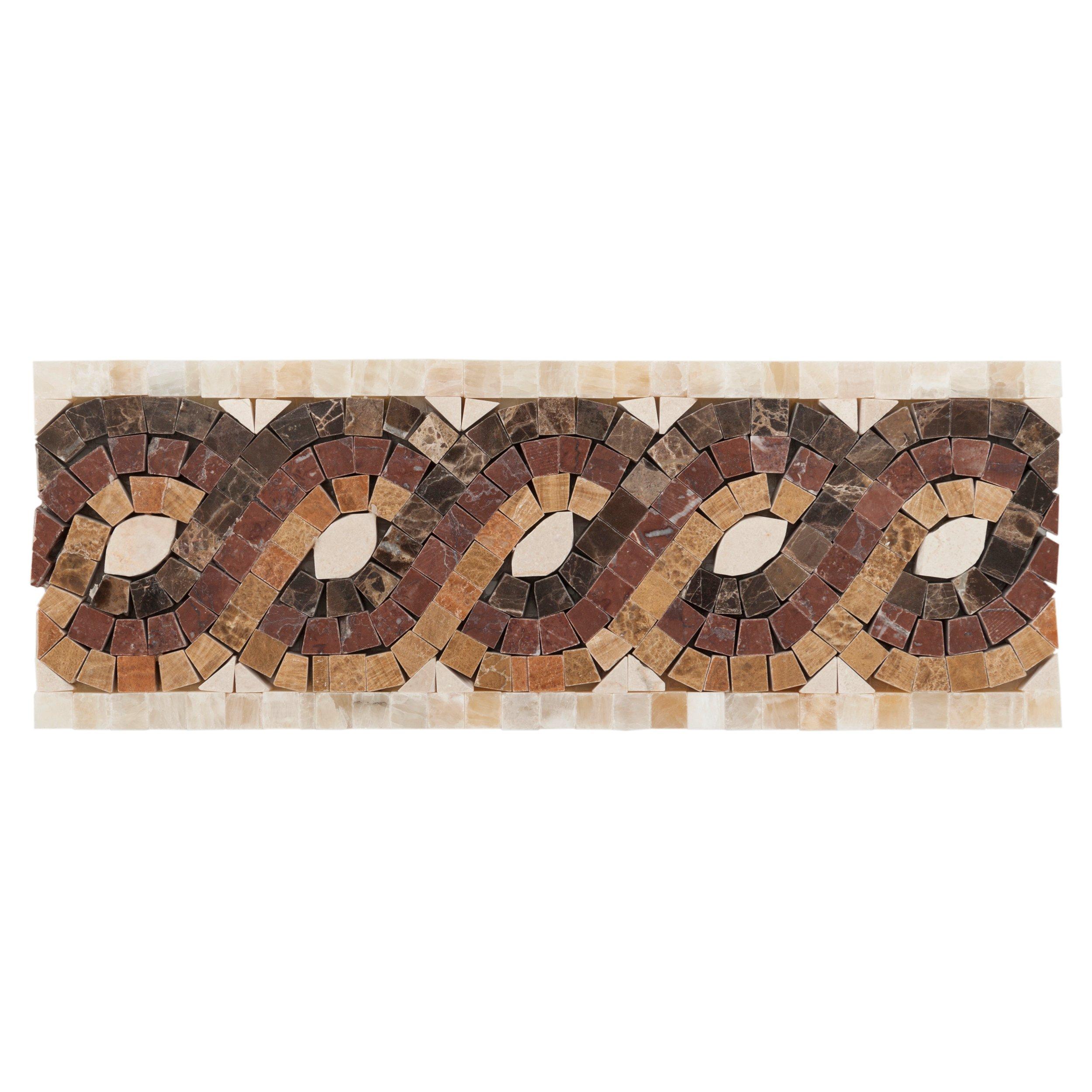 This 12 x 12 Alpan Marble Border in brown reflects light and adds depth, and has a polished finish.