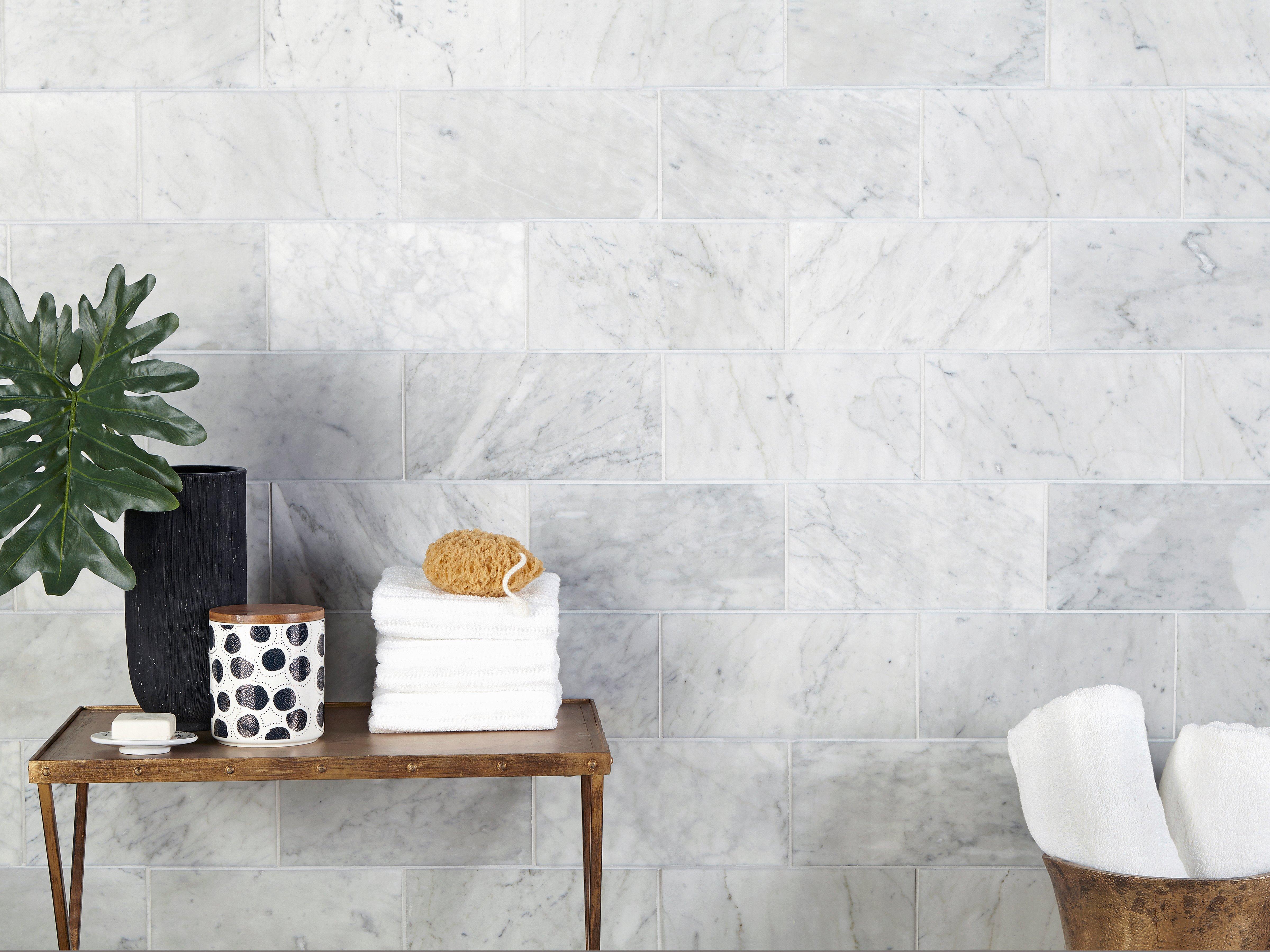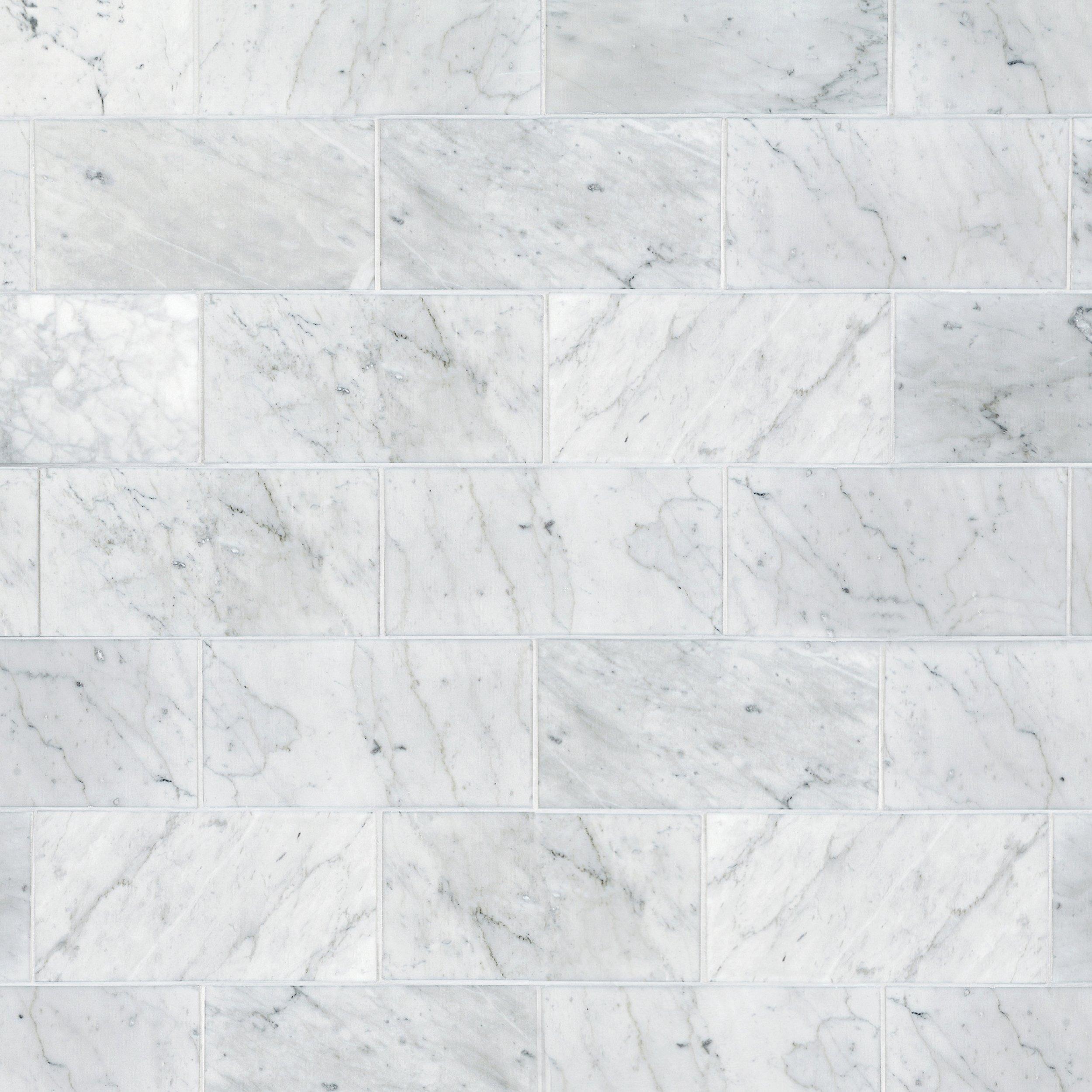 Carrara marble is either rich white or pale gray. Each tile has unparalleled veining that lends elegance and an excellent backdrop to any room.