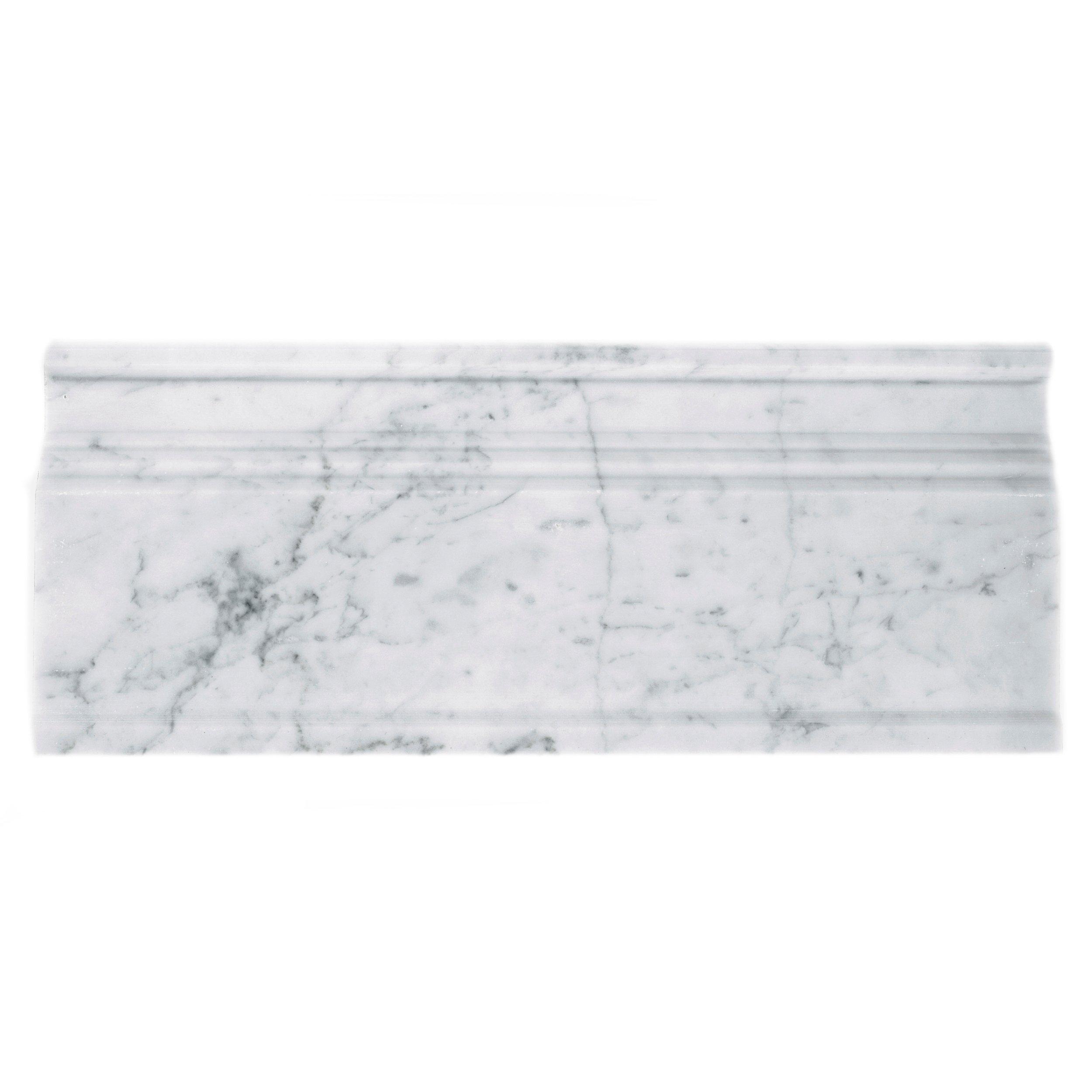 Add style to your home with this 5 x 12 Bianco Carrara Marble Base Molding in white color with a polished finish.