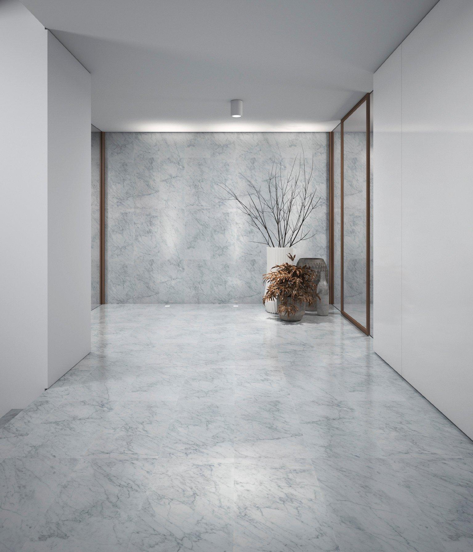 Put this Bianco Carrara Polished Marble Tile in one room or several. Not only is it extremely durable in high-traffic areas, it’s also versatile an d can be used to refine many styles. Chances are that no one will have that same floor or wall as you if you choose this tile.