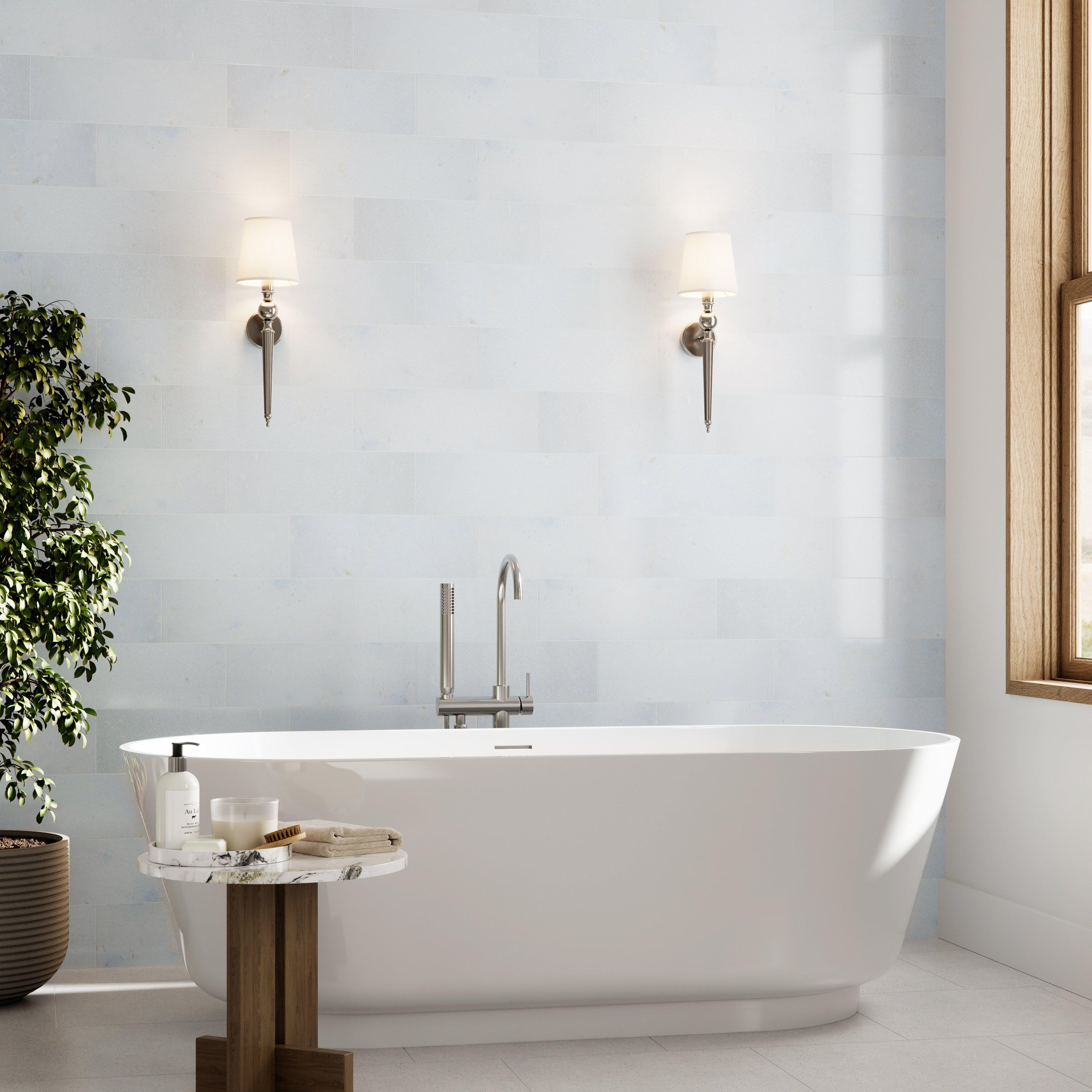 Blue Celeste Polished Marble Tile by Viviano Marmo offers a stunning, polished finish that brings elegance to any space. Ideal for both residential and light commercial use, this versatile tile can transform your kitchen or bathroom into a luxurious retreat. Part of marbles beauty is the intrinsic variation due to veining and movement present in each unique piece. Checking the material and blending the tiles to taste prior to installation is highly recommended.