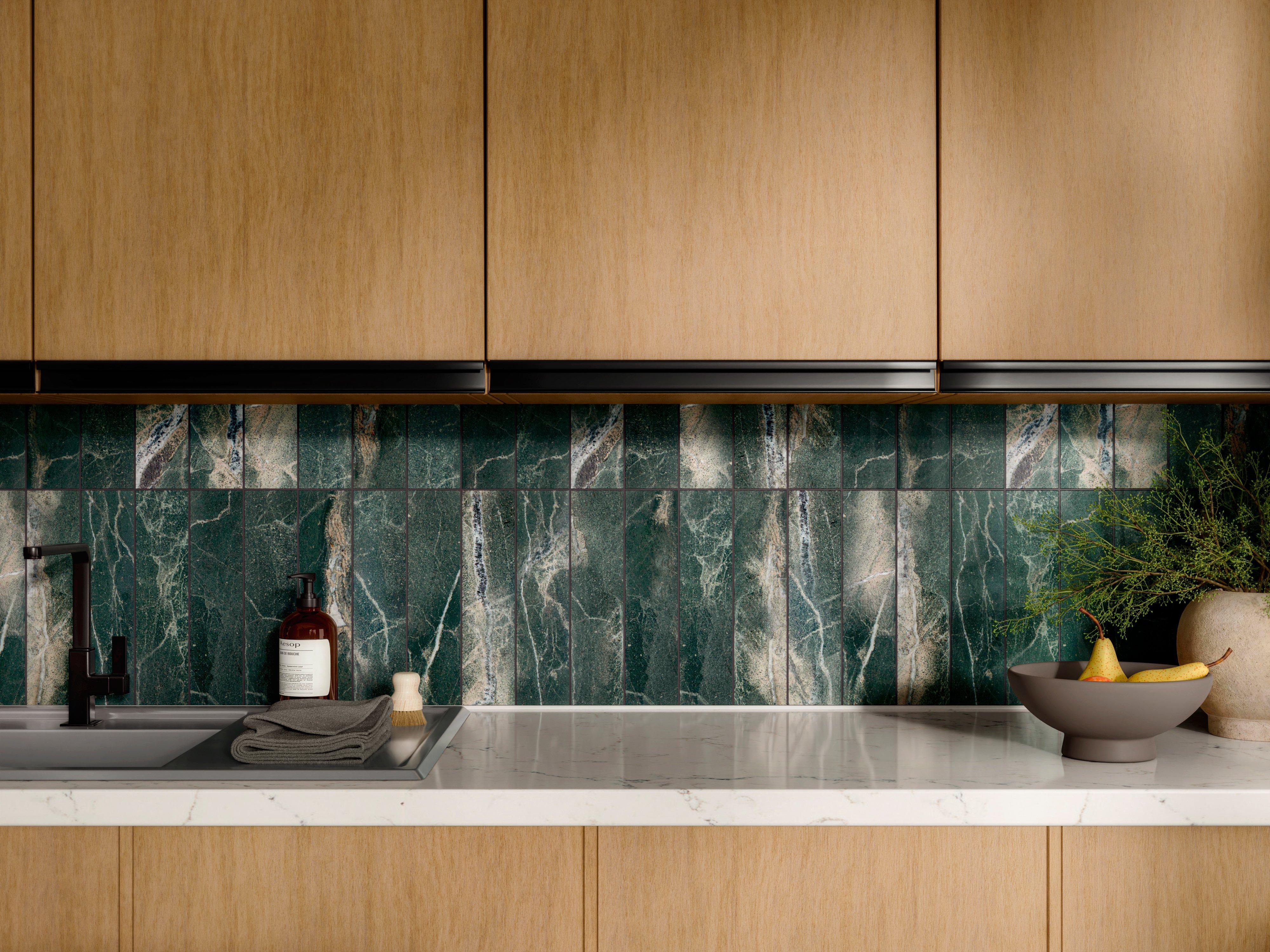 The Botanic Green Polished Marble Tile in green is as timeless as it is versatile. Its durability and easy maintenance make it a practical and attractive addition to almost any room, and you’ll have an effortlessly elegant aesthetic.