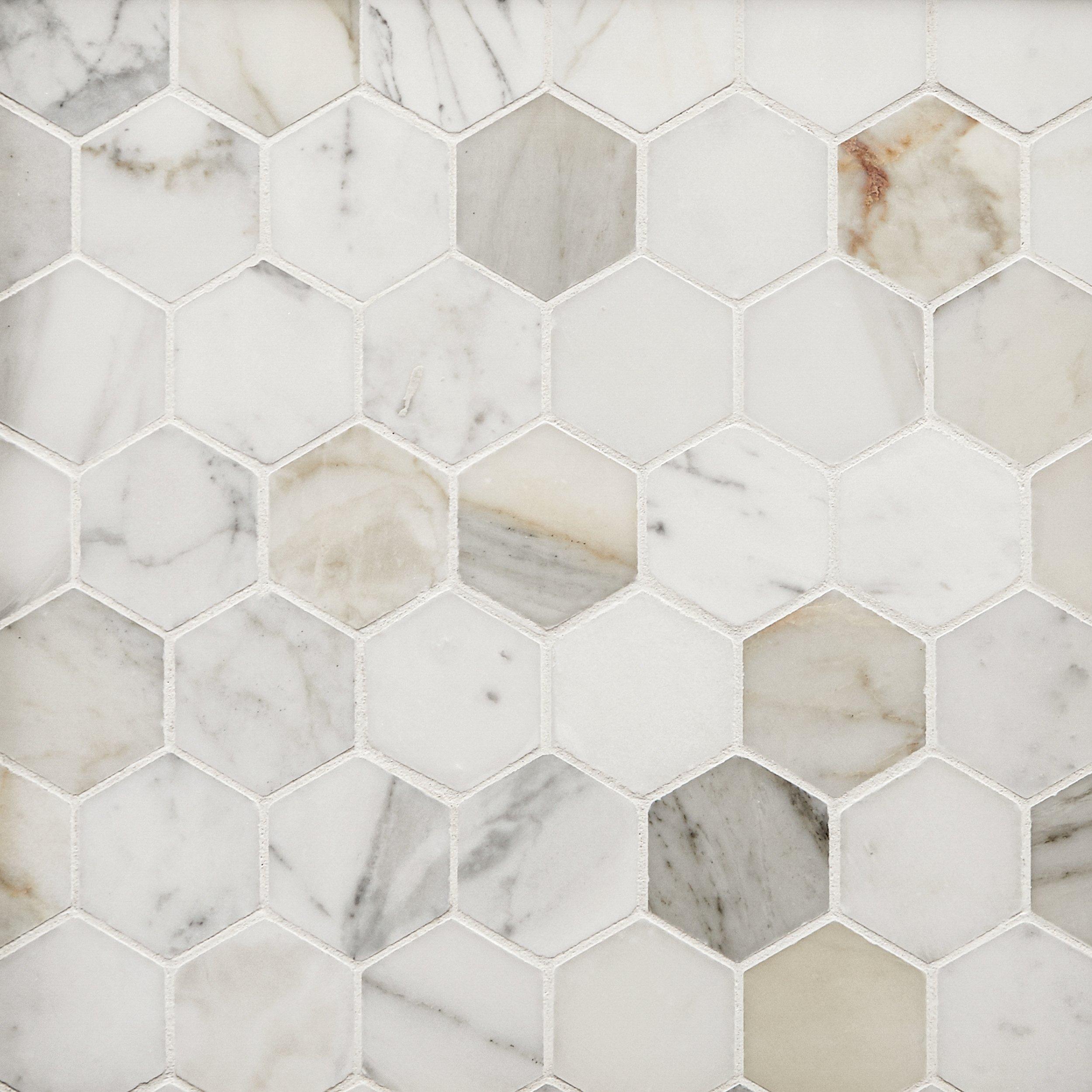 Create a timeless statement with this gorgeous Calacatta Hexagon Marble Mosaic. It is easy to clean and makes it an addition to the room that’s both practical and attractive. This 12 x 12 decorative tile comes in white and has a polished or high gloss finish, giving a refined elegance to interior spaces and providing endless design possibilities.