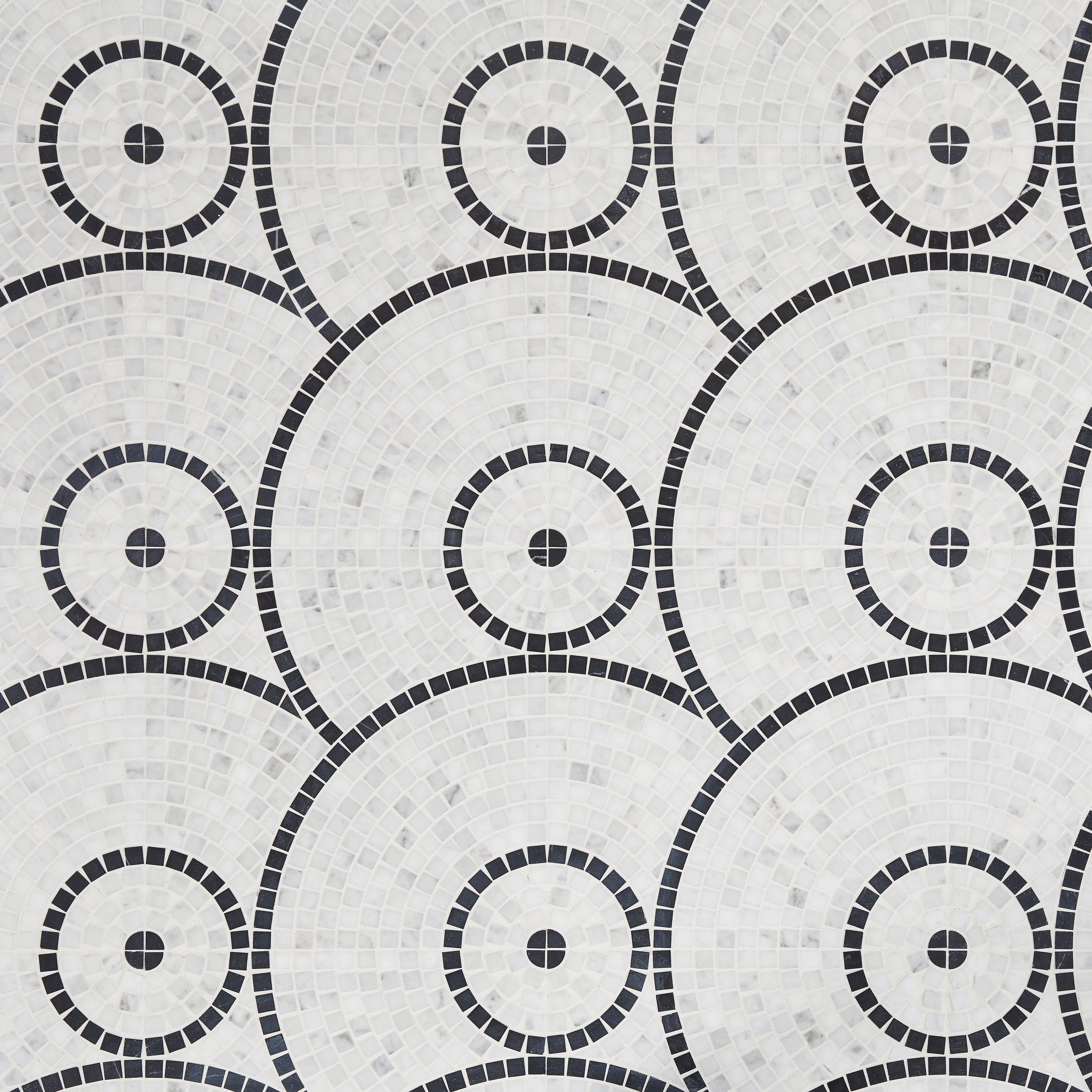 Liven up any room with this Circulo Bianco Carrara Nero II Polished Marble Mosaic. This 13 x 13 decorative tile comes in multi color and has a polished finish. With stunning veining that comes from the natural wonders of this earth, marble can make a gorgeous fashion statement throughout your home.