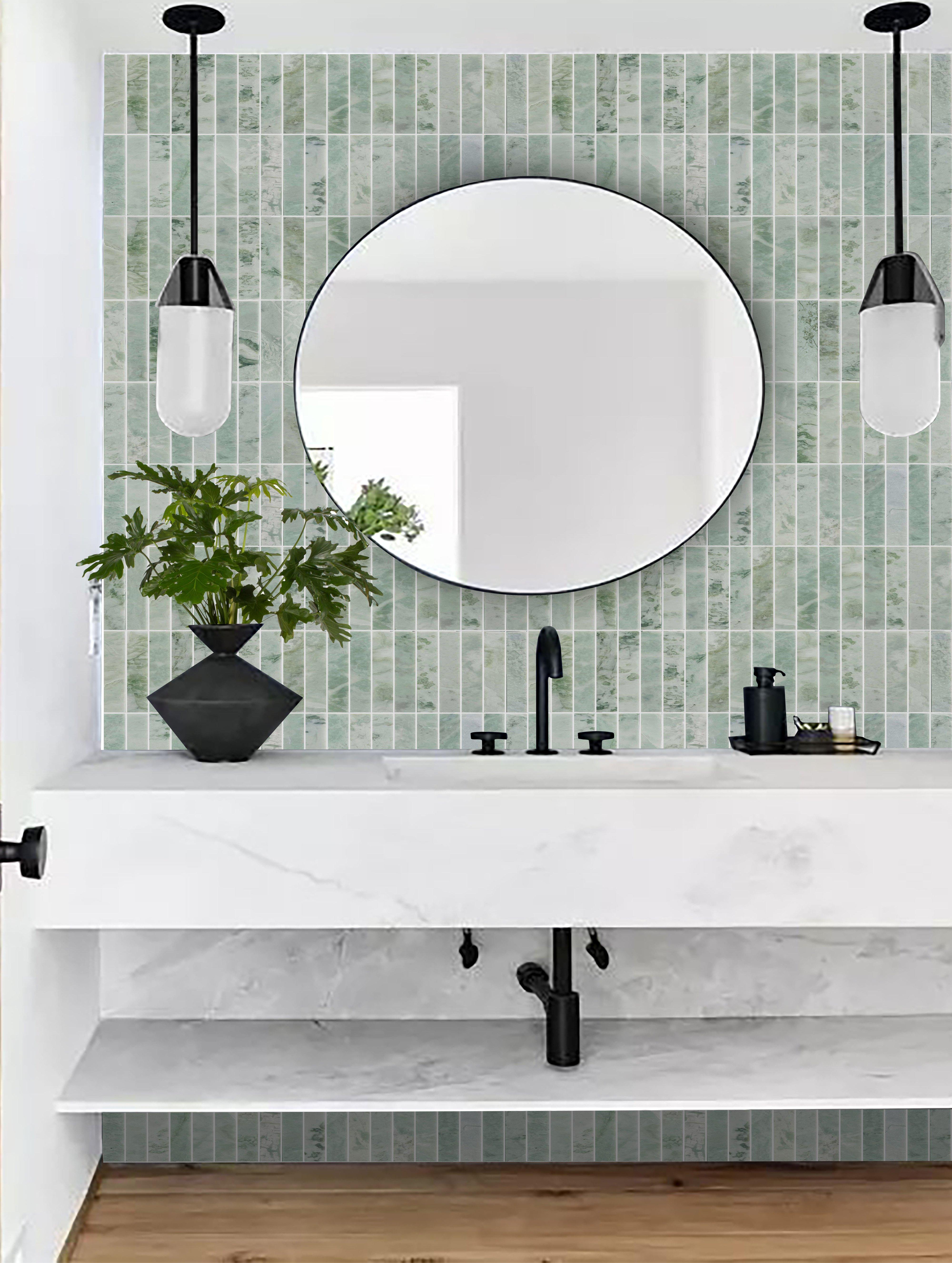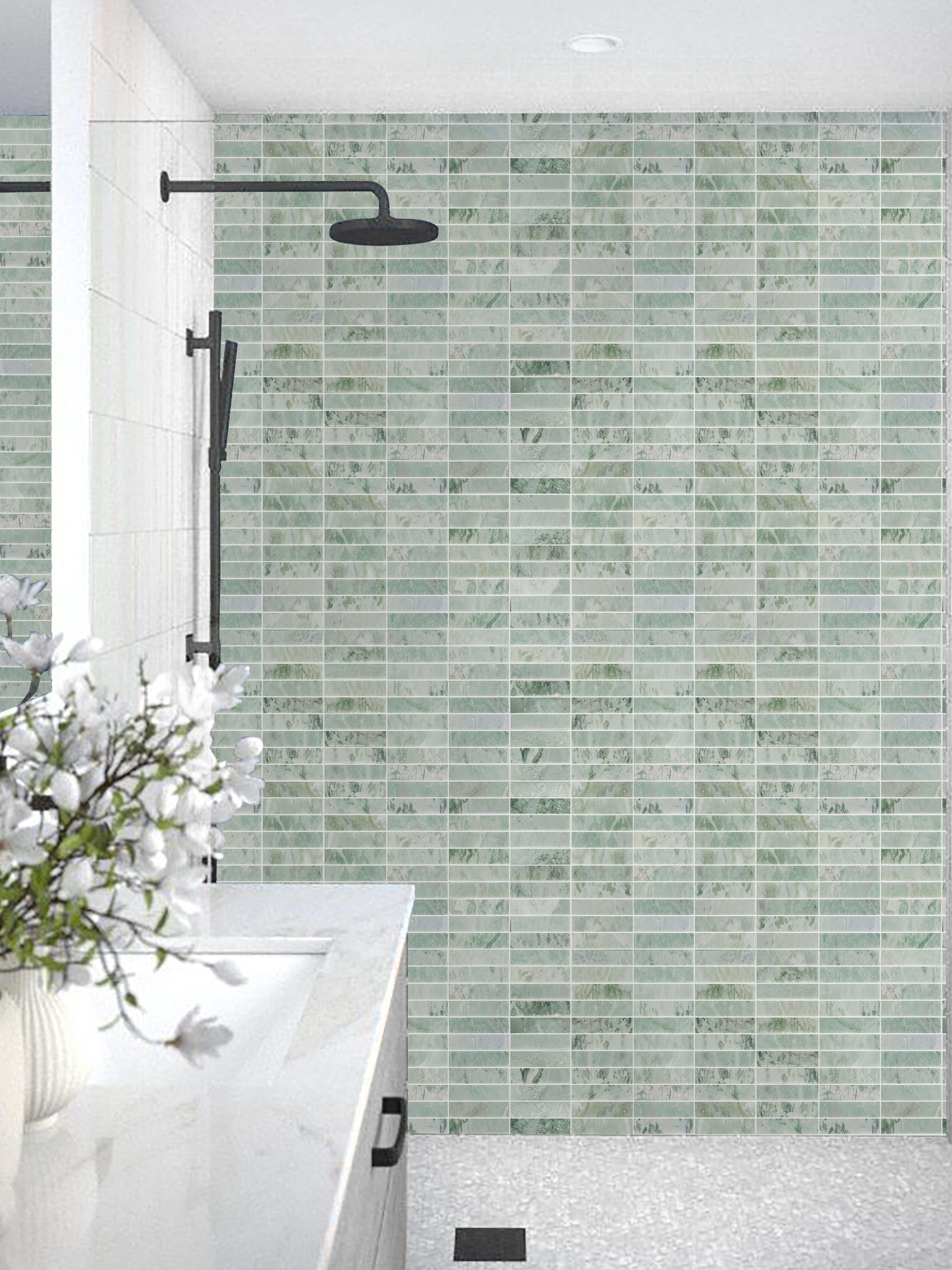 The Emerald Shores II Honed Marble Tile in green is as timeless as it is versatile. Its durability and easy maintenance make it a practical and attractive addition to almost any room, and you’ll have an effortlessly elegant aesthetic.