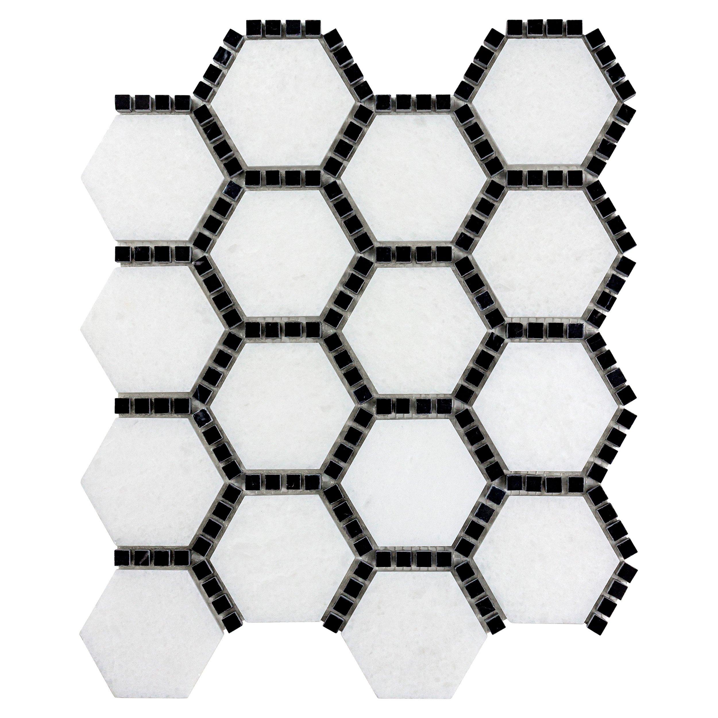 Liven up any room with this Gossamer White and Black Marble Hexagon Mosaic. This 10 x 14 decorative tile comes in white and has a multi finish finish. With stunning veining that comes from the natural wonders of this earth, marble can make a gorgeous fashion statement throughout your home.