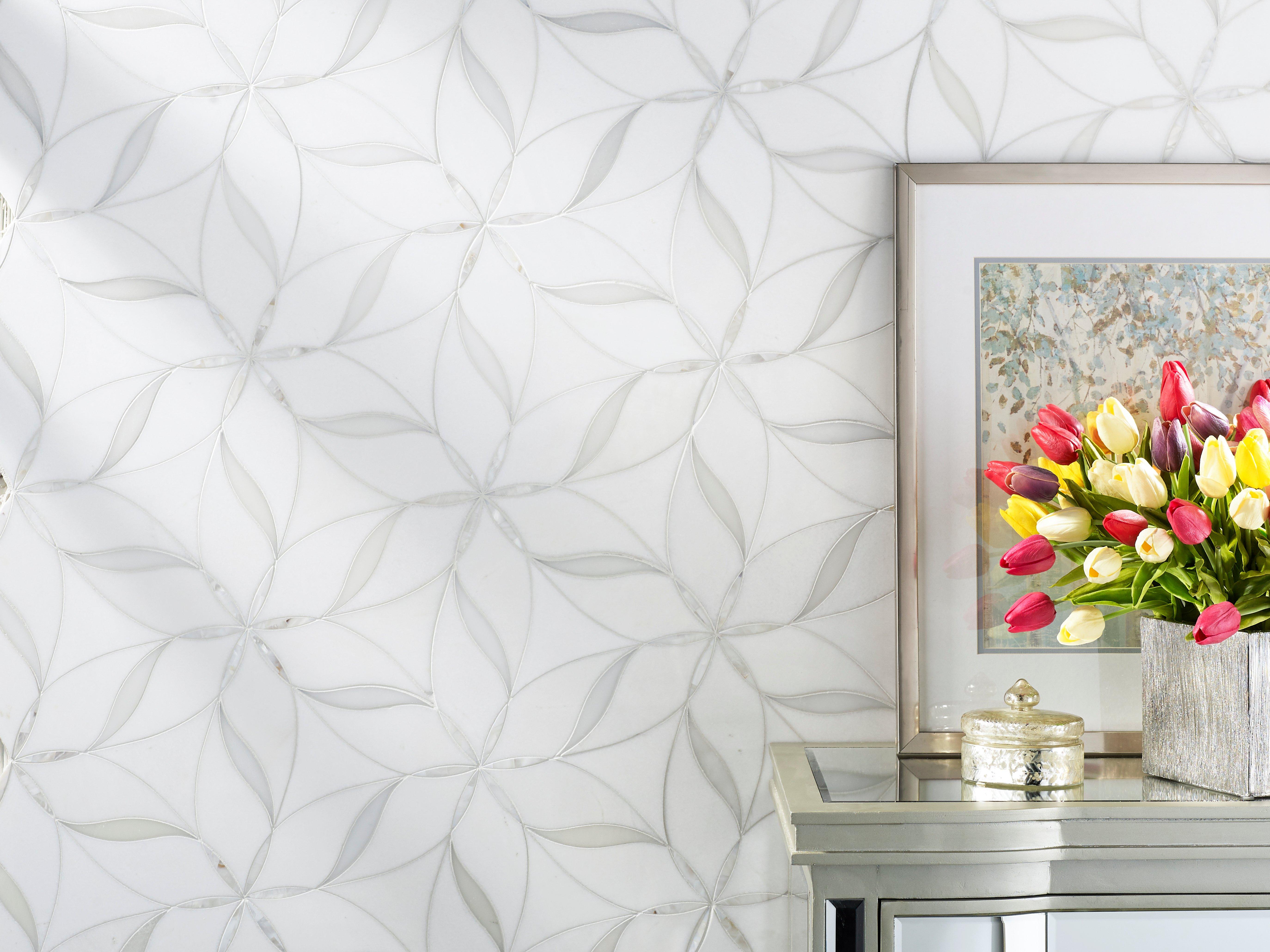 The opulent silhouette of this waterjet mosaic is sure to bring a dose of modern luxury to your home.