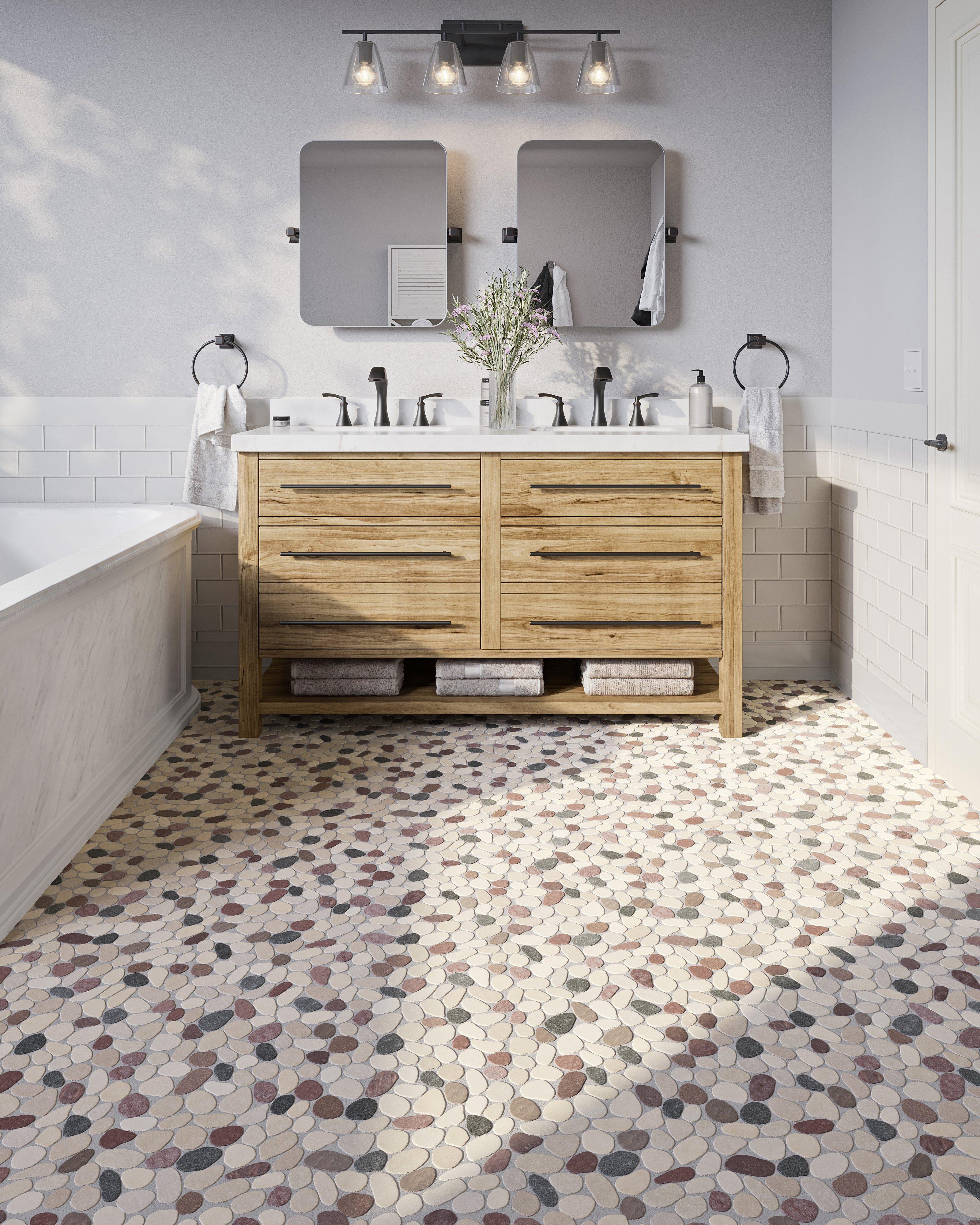 Made from pebble, this multi color River Canyon Tumbled Pebble Mosaic is 11 x 11.