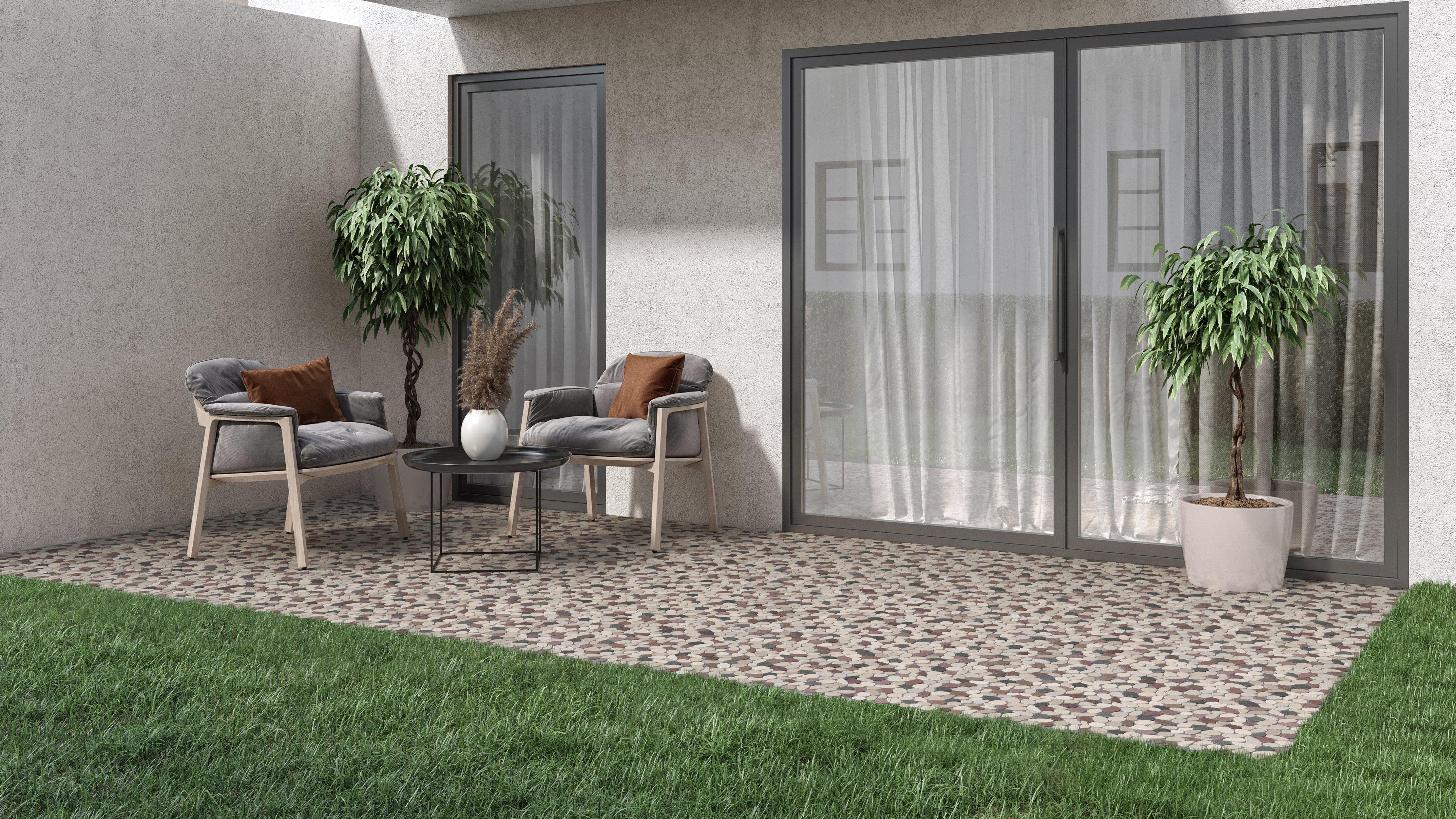 The rustic, natural look of tumbled finish tile has character, complete with rounded, worn edges to give an aged appearance.
