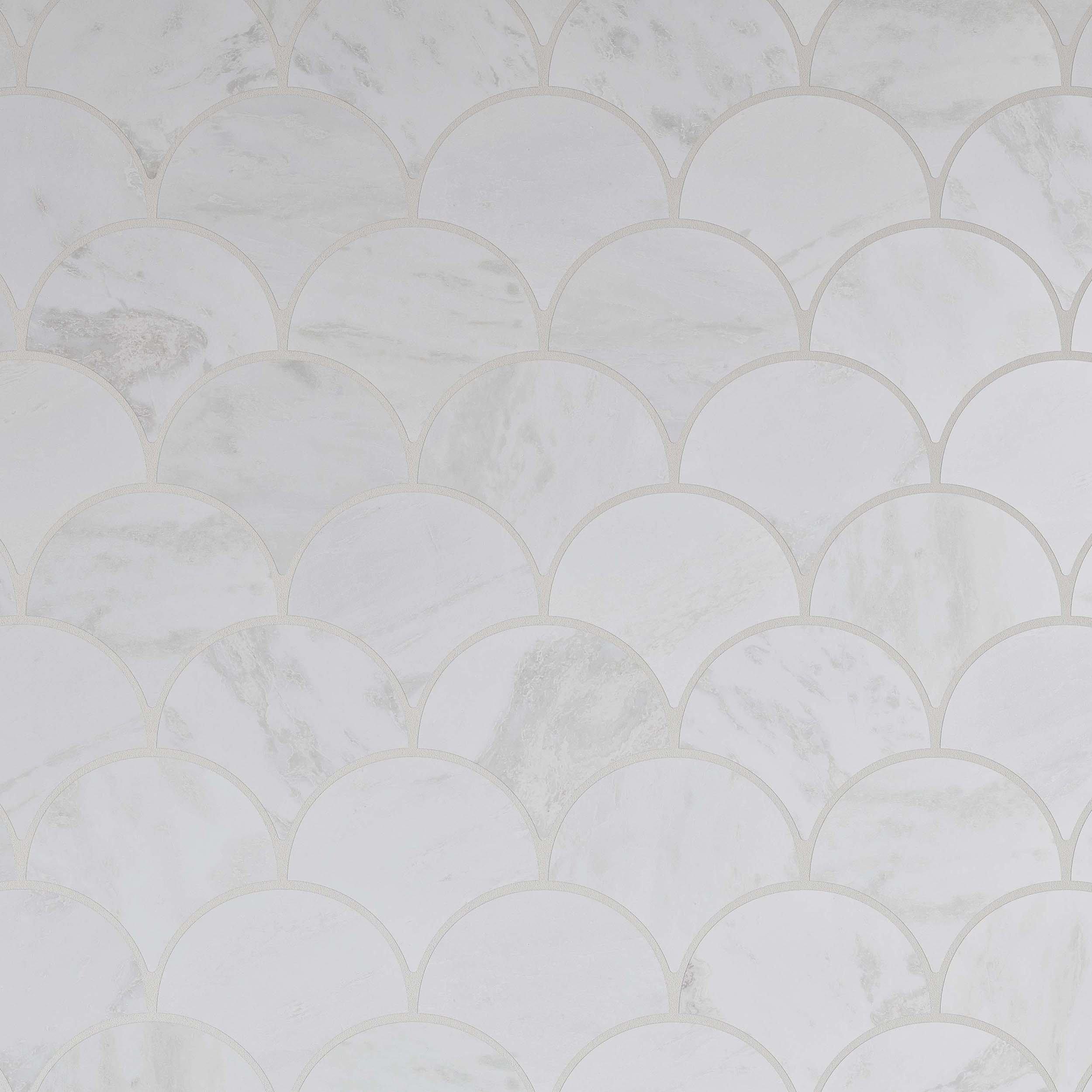 Create a timeless statement with this gorgeous Sahara Carrara Fan Honed Marble Mosaic. It is easy to clean and makes it an addition to the room that’s both practical and attractive. This 9 1/2 x 9 2/3 decorative tile comes in white and has a honed finish, giving a refined elegance to interior spaces and providing endless design possibilities.