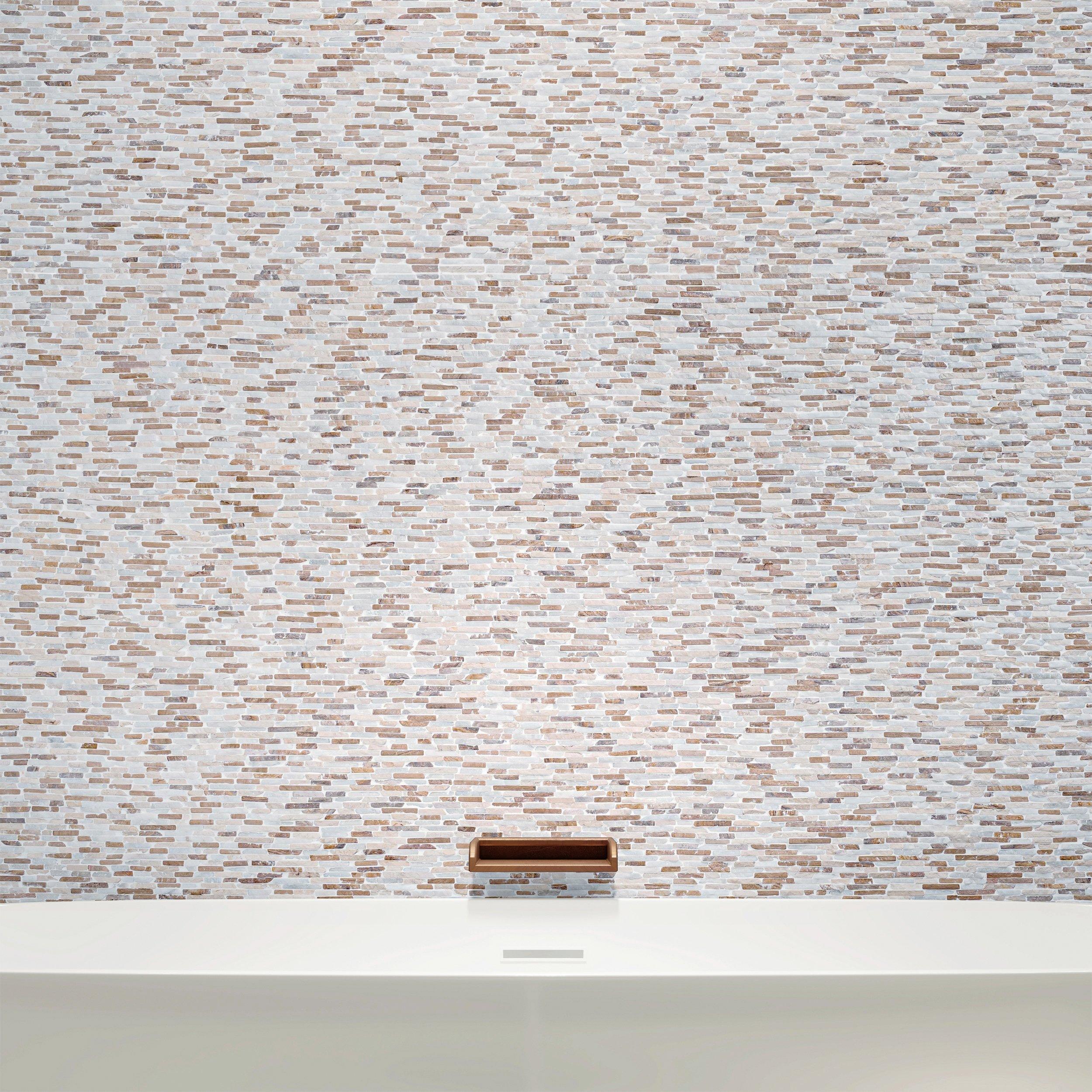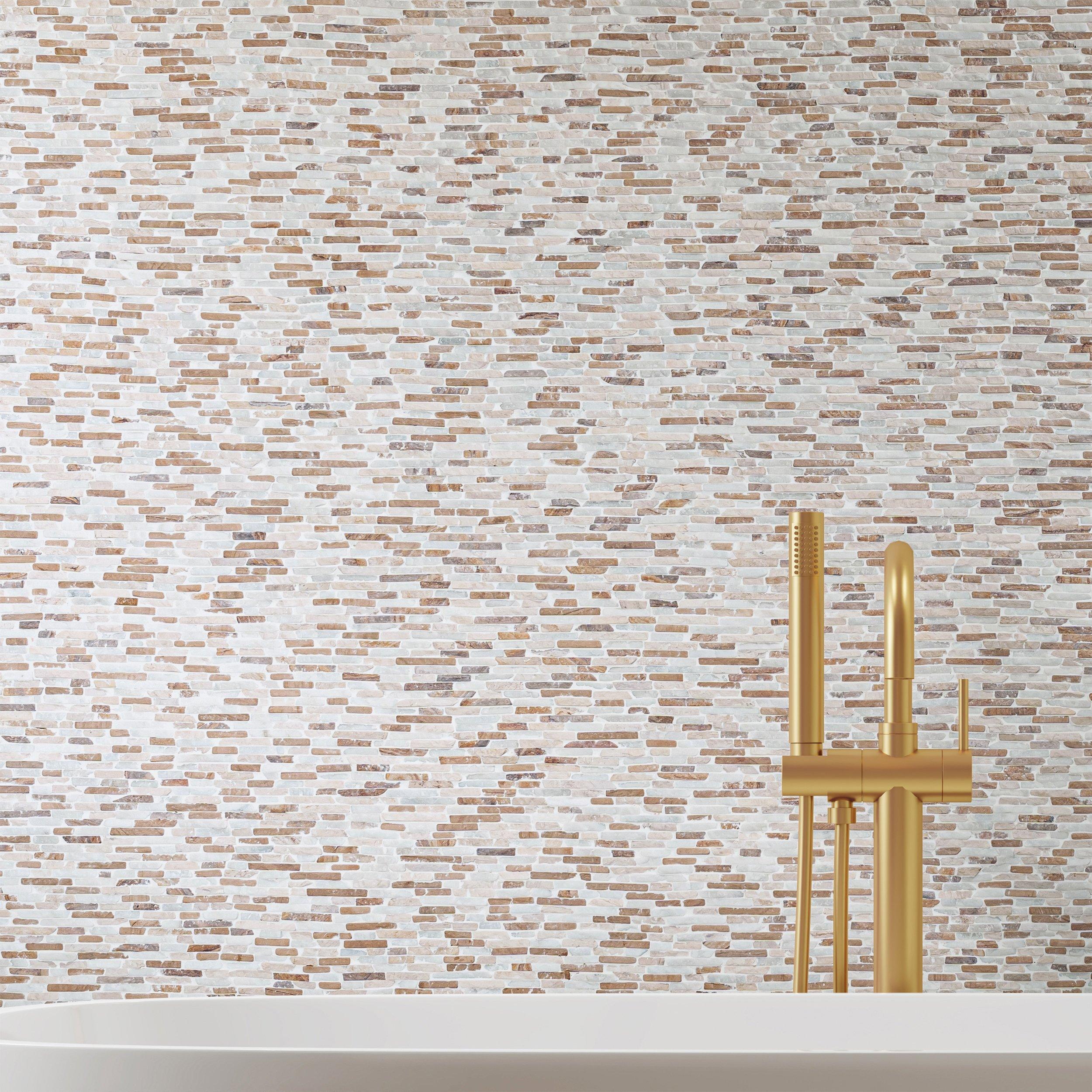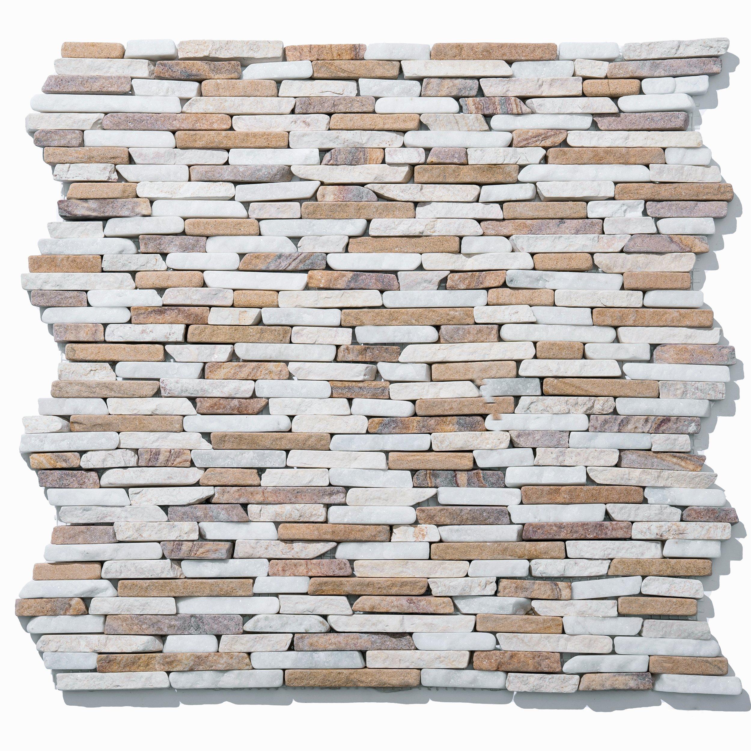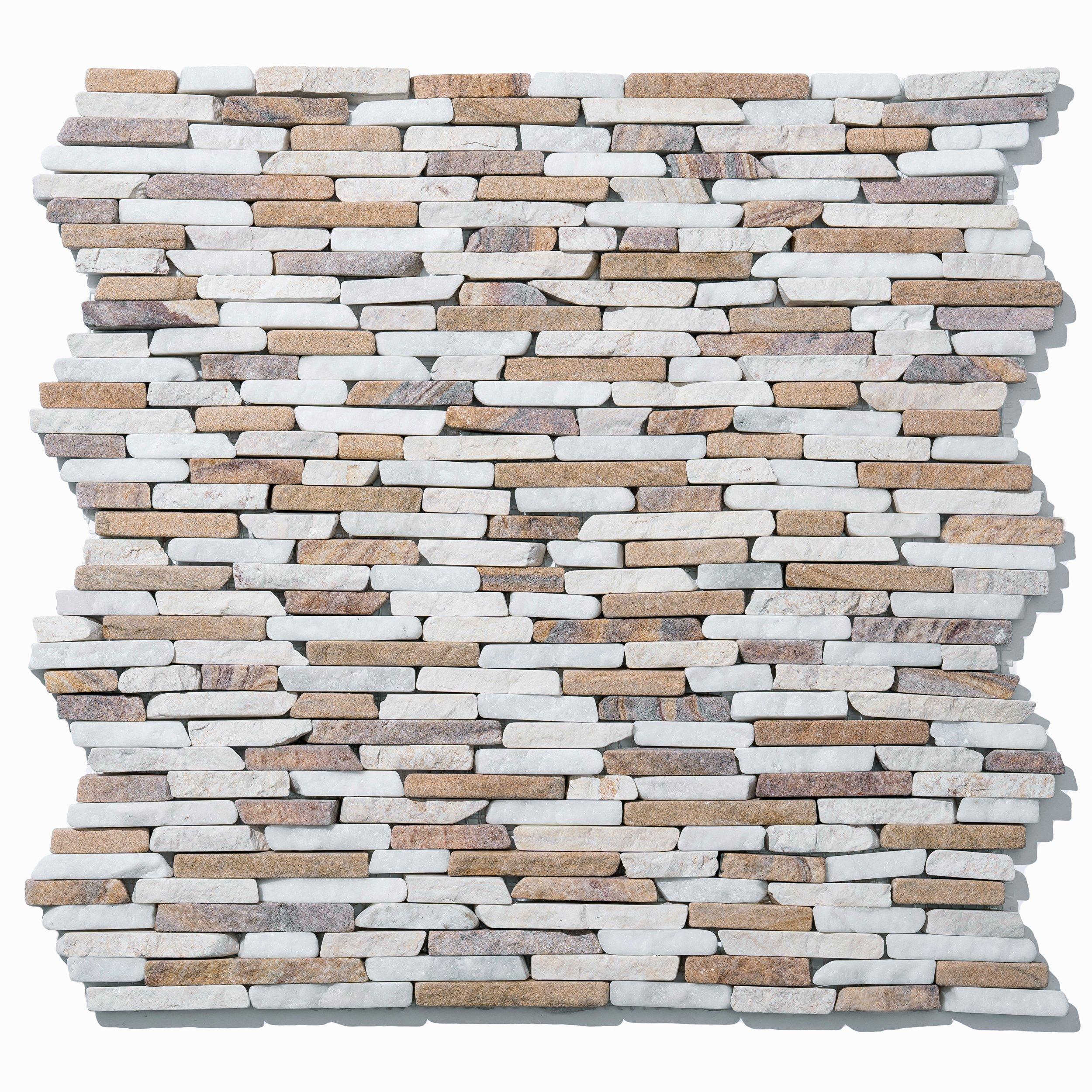 Sandstone Copper Canyon Tumbled Mini Ledger is a beautifully crafted stack-shaped mosaic tile from Rock Ridge. Perfect for adding elegance to any bathroom or kitchen backsplash, this tile offers both aesthetic appeal and durability. Pair with a stone sealer for added protection and easier routine maintenance.