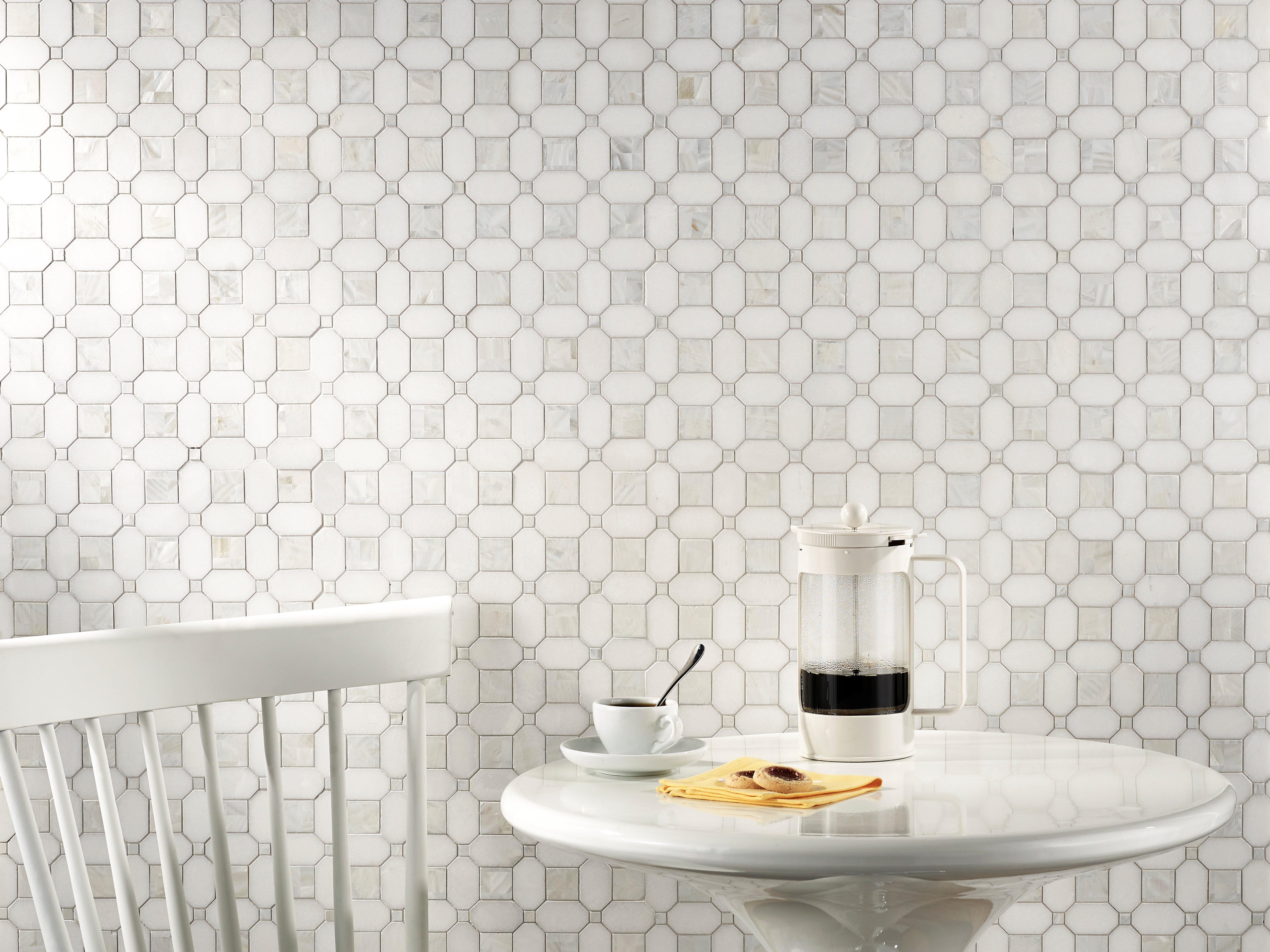 The Thassos Mother of Pearl Basketweave Polished Marble Mosaic in white is as timeless as it is versatile. Its durability and easy maintenance make it a practical and attractive addition to almost any room, and you’ll have an effortlessly elegant aesthetic.