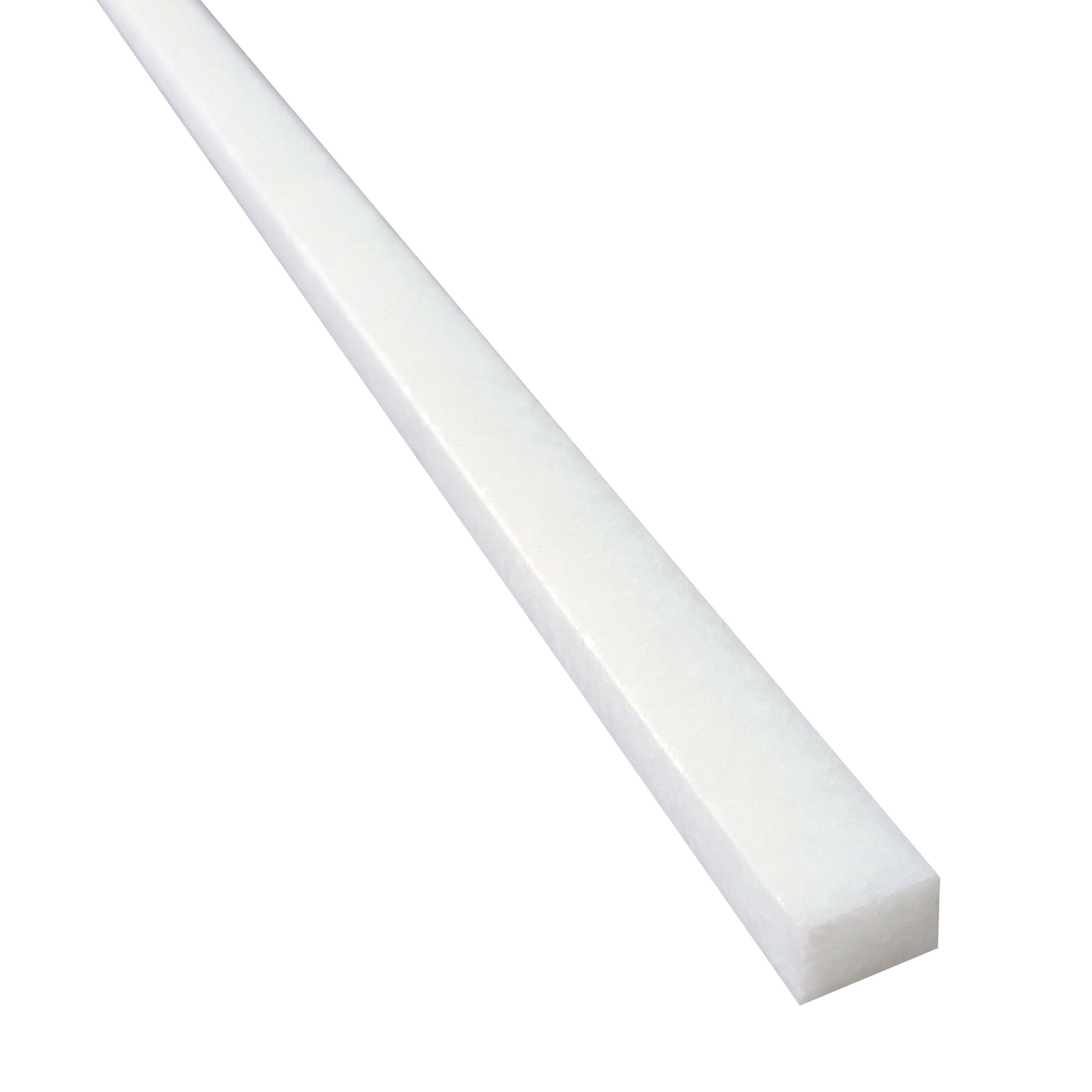 This 1/2 x 12 Thassos Premium Polished Marble Liner in white reflects light and adds depth, and has a polished finish.