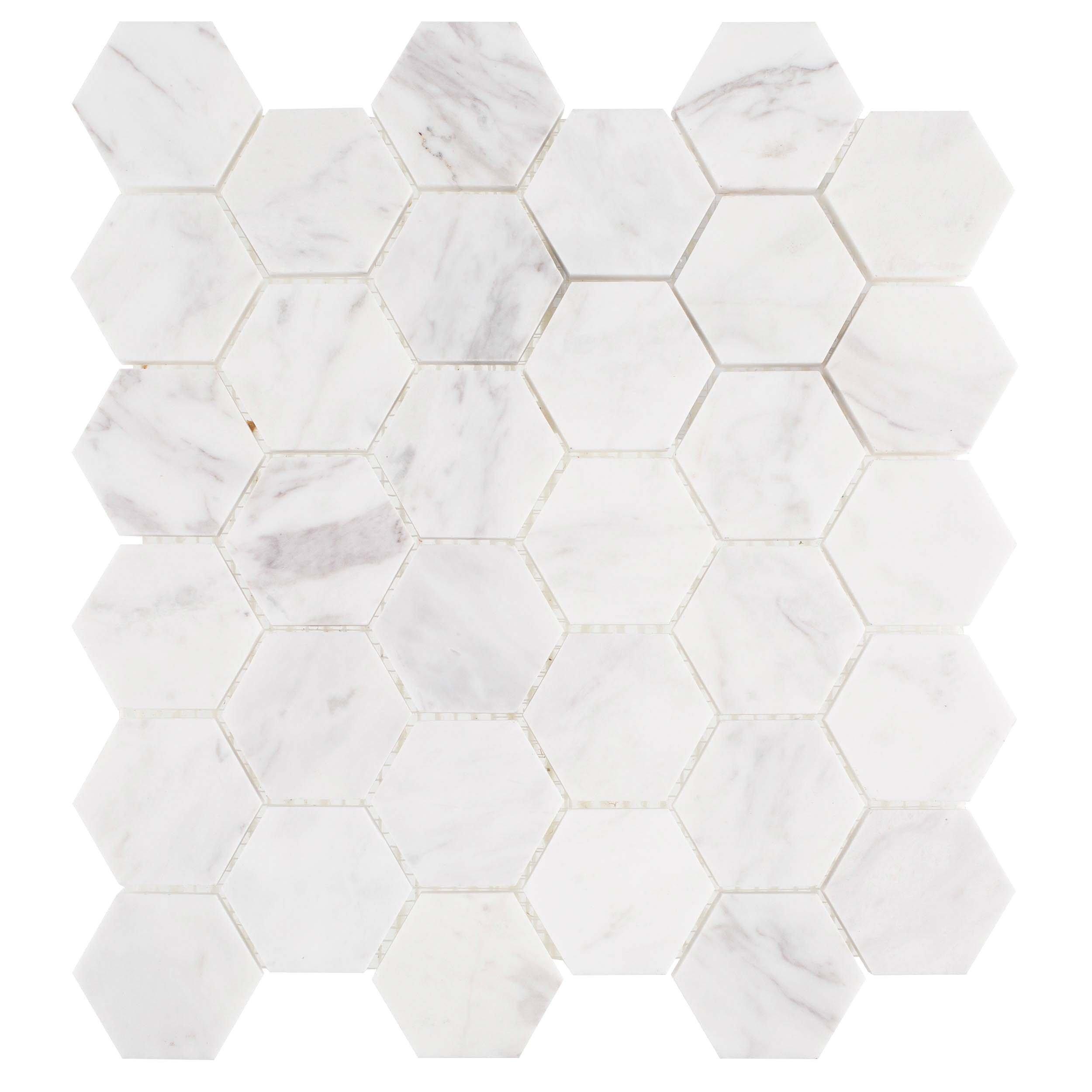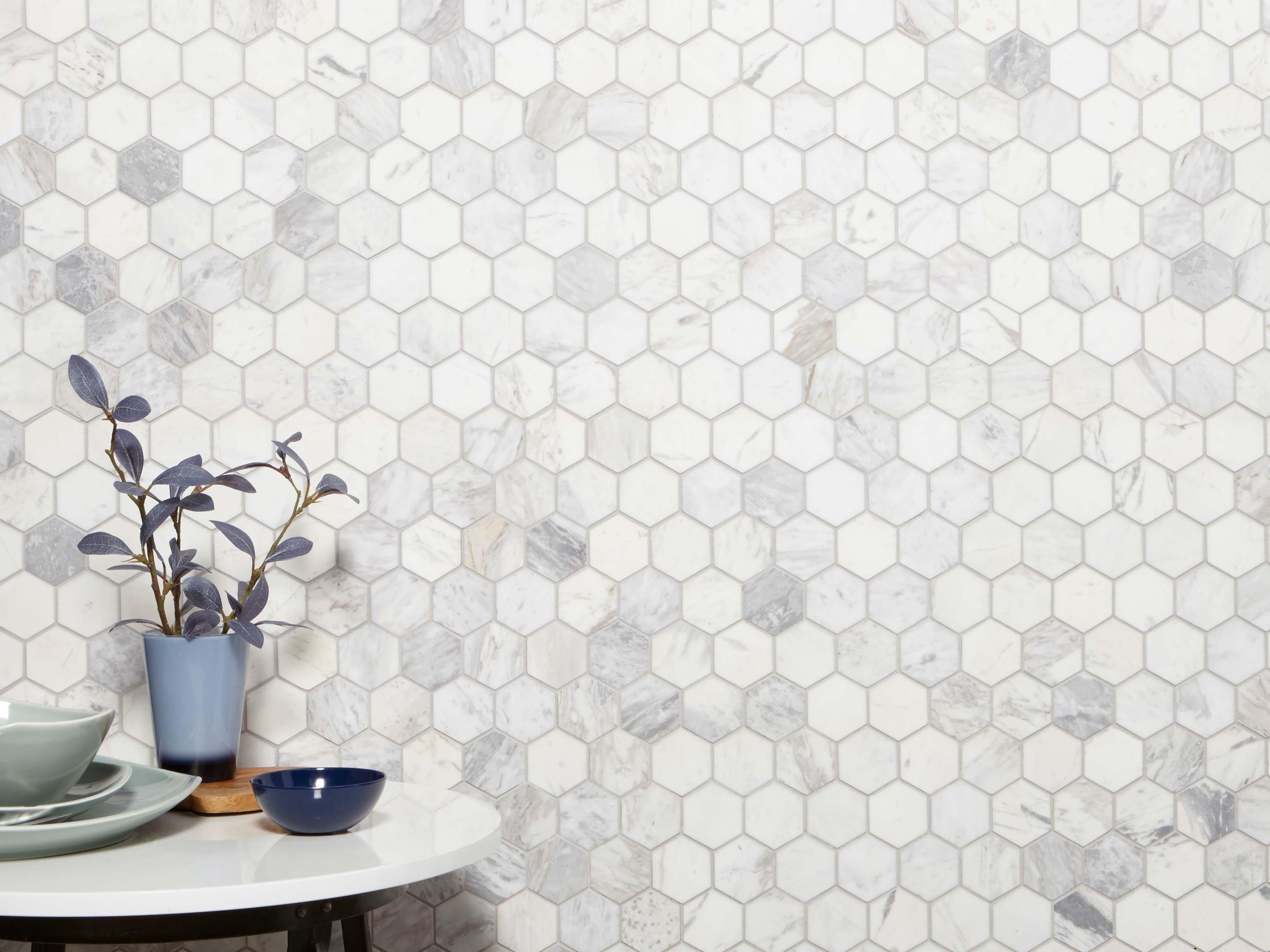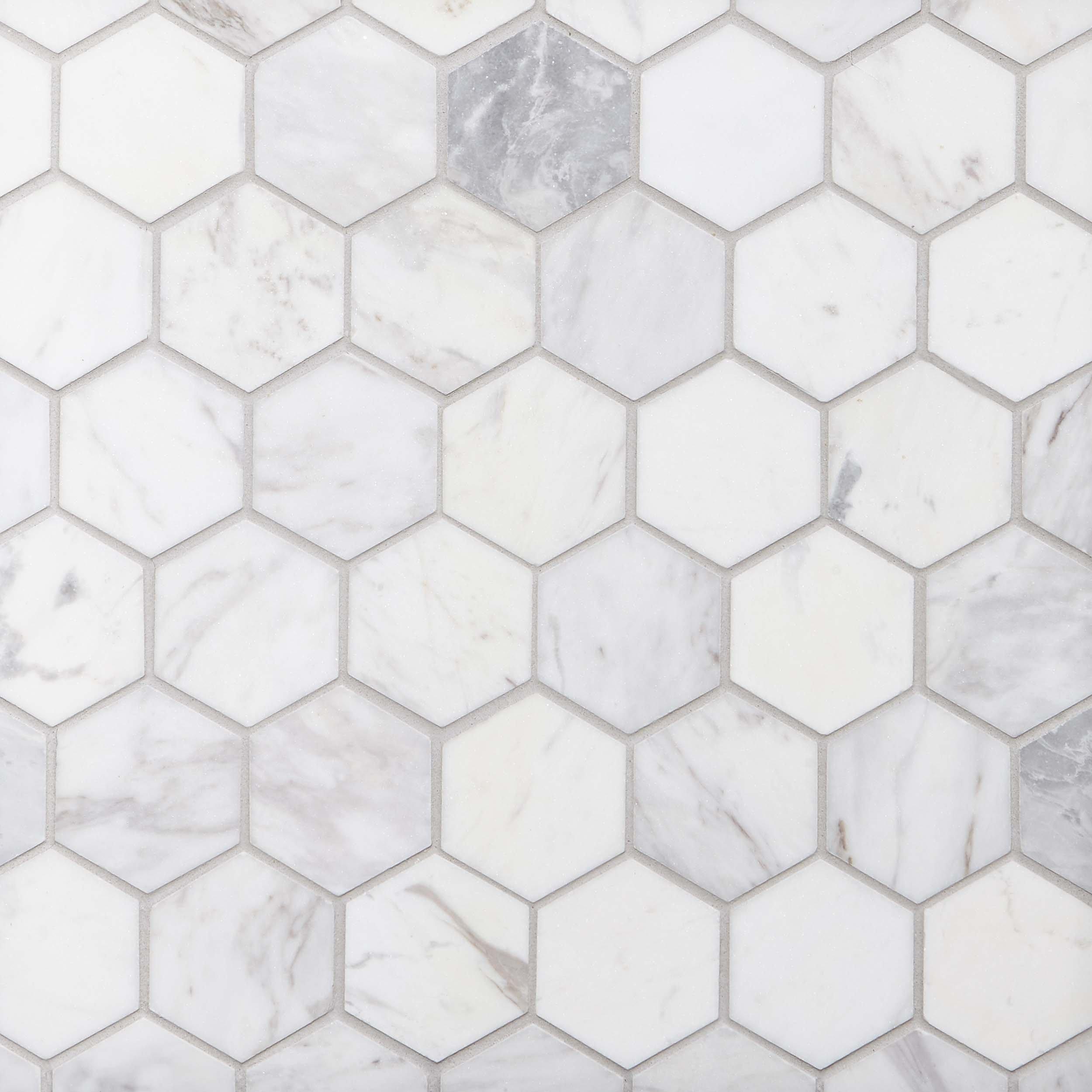 Volakas Hexagon Honed Marble Mosaic from Viviano is a stunning choice for any interior space. The hexagon and octagon shapes bring a unique touch to your design, making it perfect for kitchens, bathrooms, and backsplashes. Part of marbles natural beauty is the uniqueness of each individual piece; like a snowflake, no two pieces are exactly alike. Checking the material and blending the tiles to taste prior to installation is highly recommended.