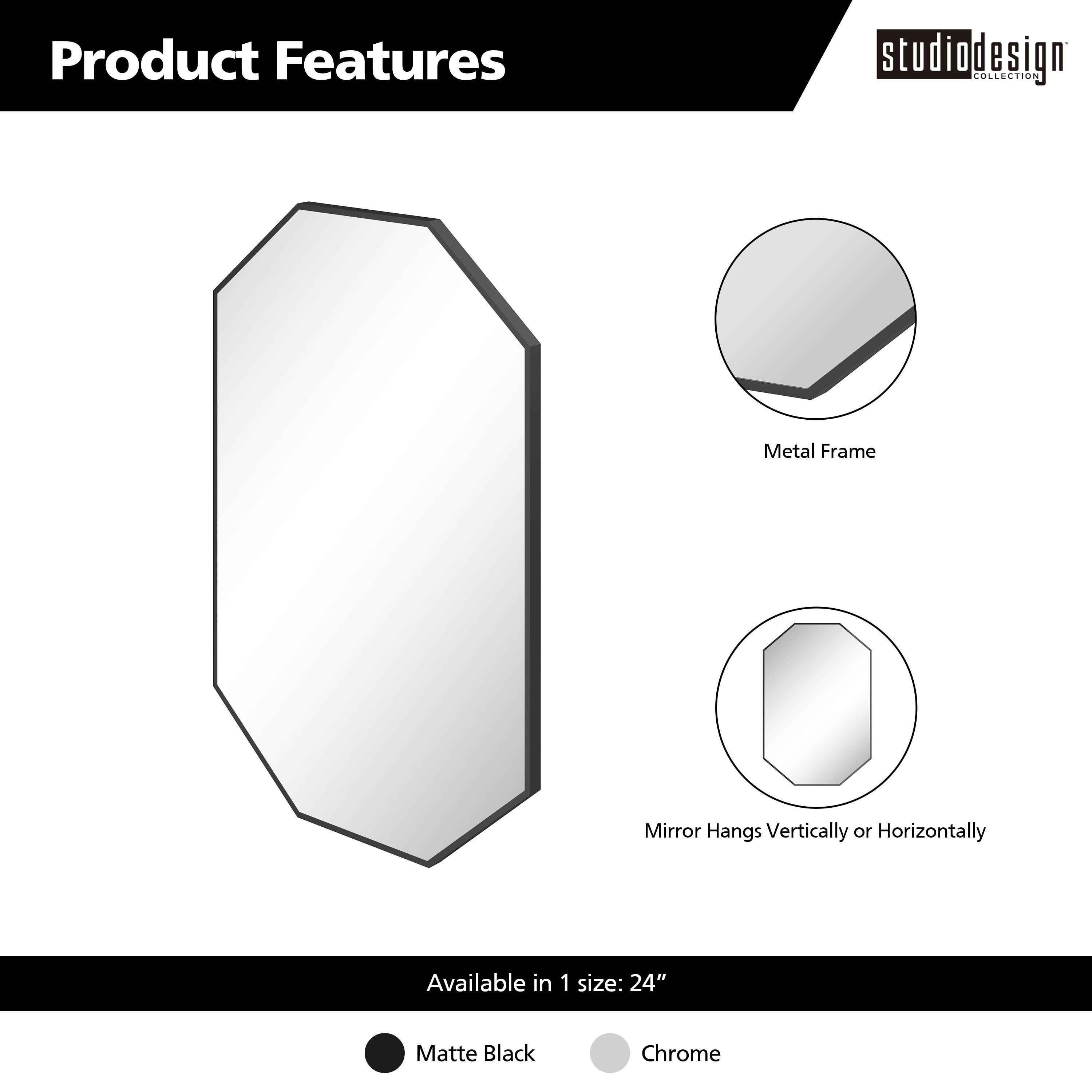 1 Year LimitedIntroducing the Meriel 24 in. Matte Black Mirror from the Studio Design Collection, a stunning addition to any residential or light commercial space. This octagon-shaped mirror offers both style and functionality, enhancing any room with its sleek design.