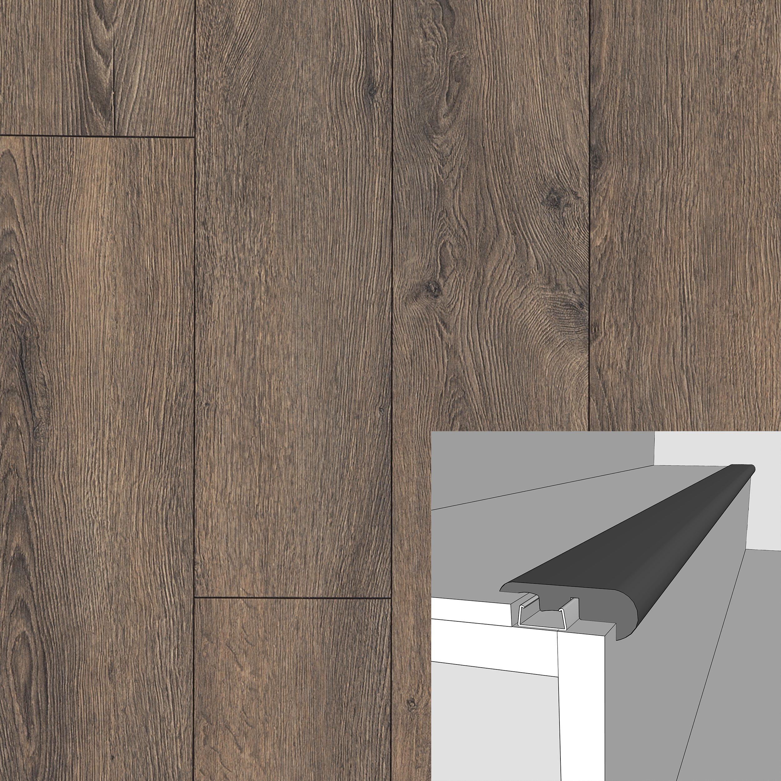 USAFloor moldings, such as Bentley Manor 94in. Laminate Overlapping Stair Nose, are a necessity to complete any flooring project. Whether you are transitioning between two rooms, or between two different types of flooring, floor moldings are key to finishing your floor with a great look!